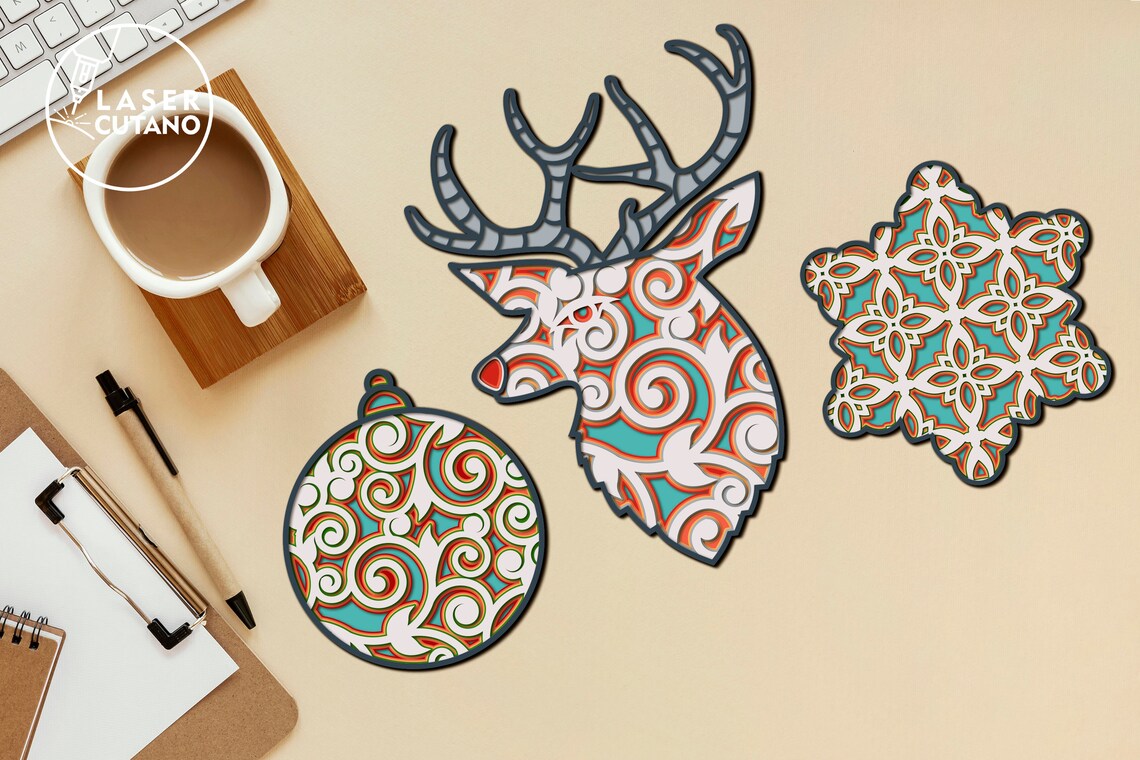 3D-Weihnachtsbaumschmuck aus Holz, 6 Bündel, SVG-Datei