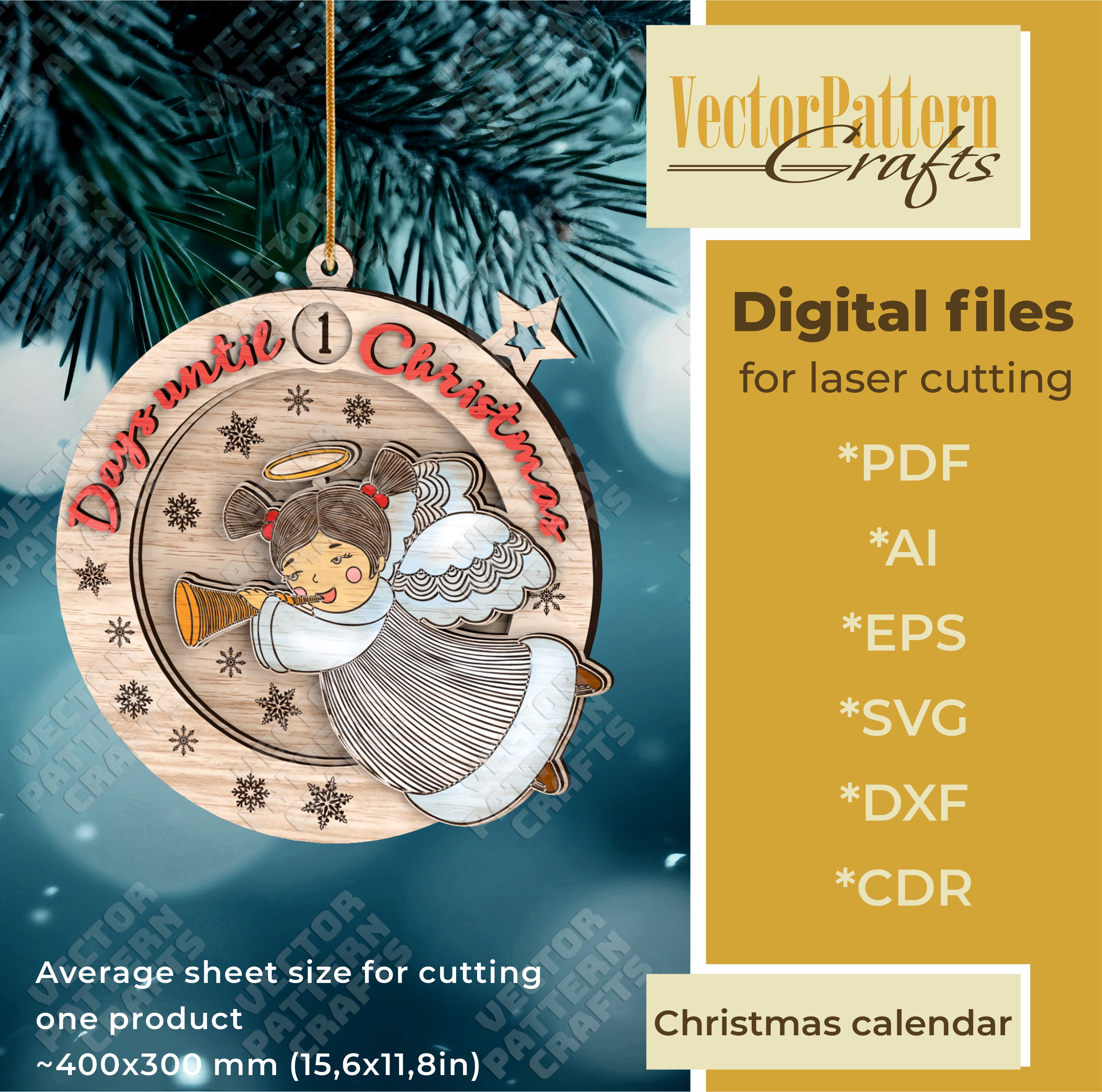 Weihnachten Аngel Countdown Kalender Ornament lasergeschnittene SVG-Datei