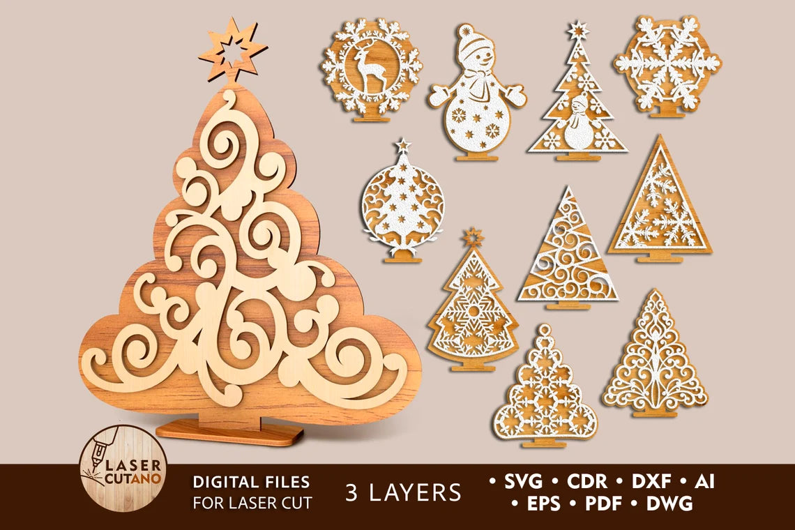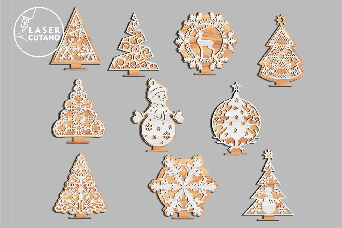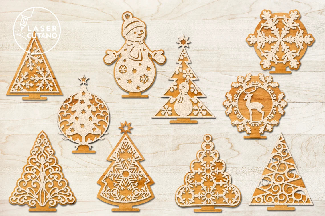 Weihnachts-Laserdatei, Ornamente und Ständer, 11 Bündel, SVG-Datei