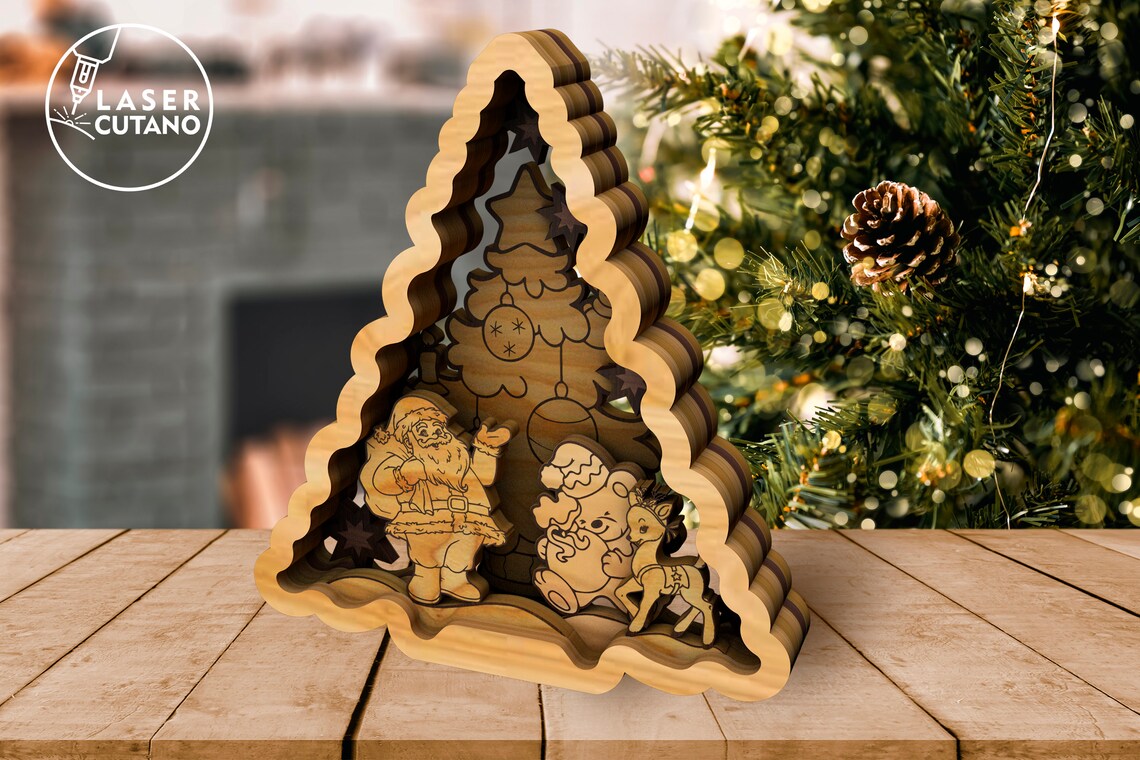 Lasergeschnittenes mehrschichtiges Weihnachtsornament 9 Bündel SVG-Datei