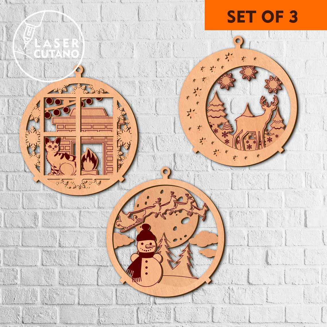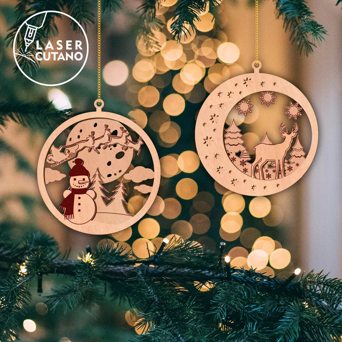 3D Christmas Ornaments 3 bundle Laser Cut Svg File