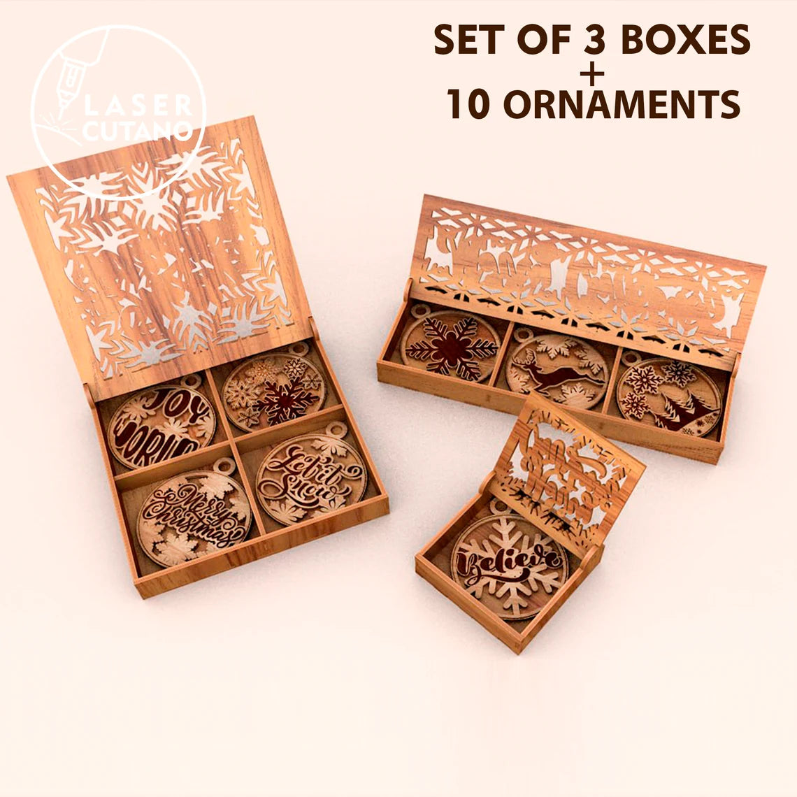 Christmas Ornament 10 Bundle and 3 Boxes Laser Cut Svg File