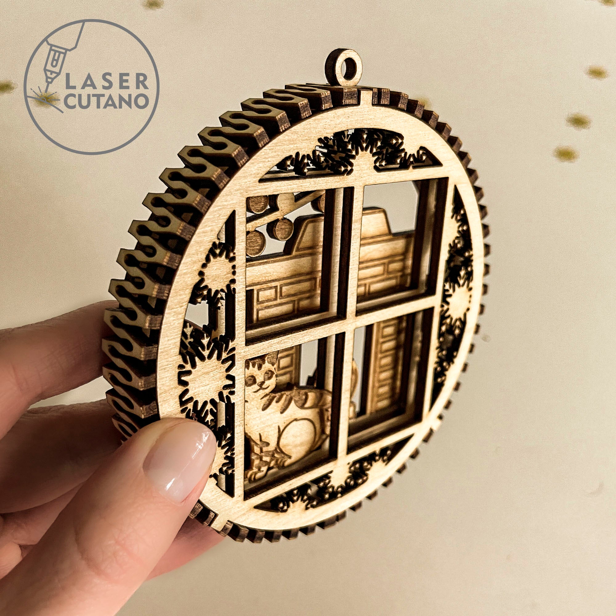 3D Christmas Ornaments with Cat Laser Cut Svg File