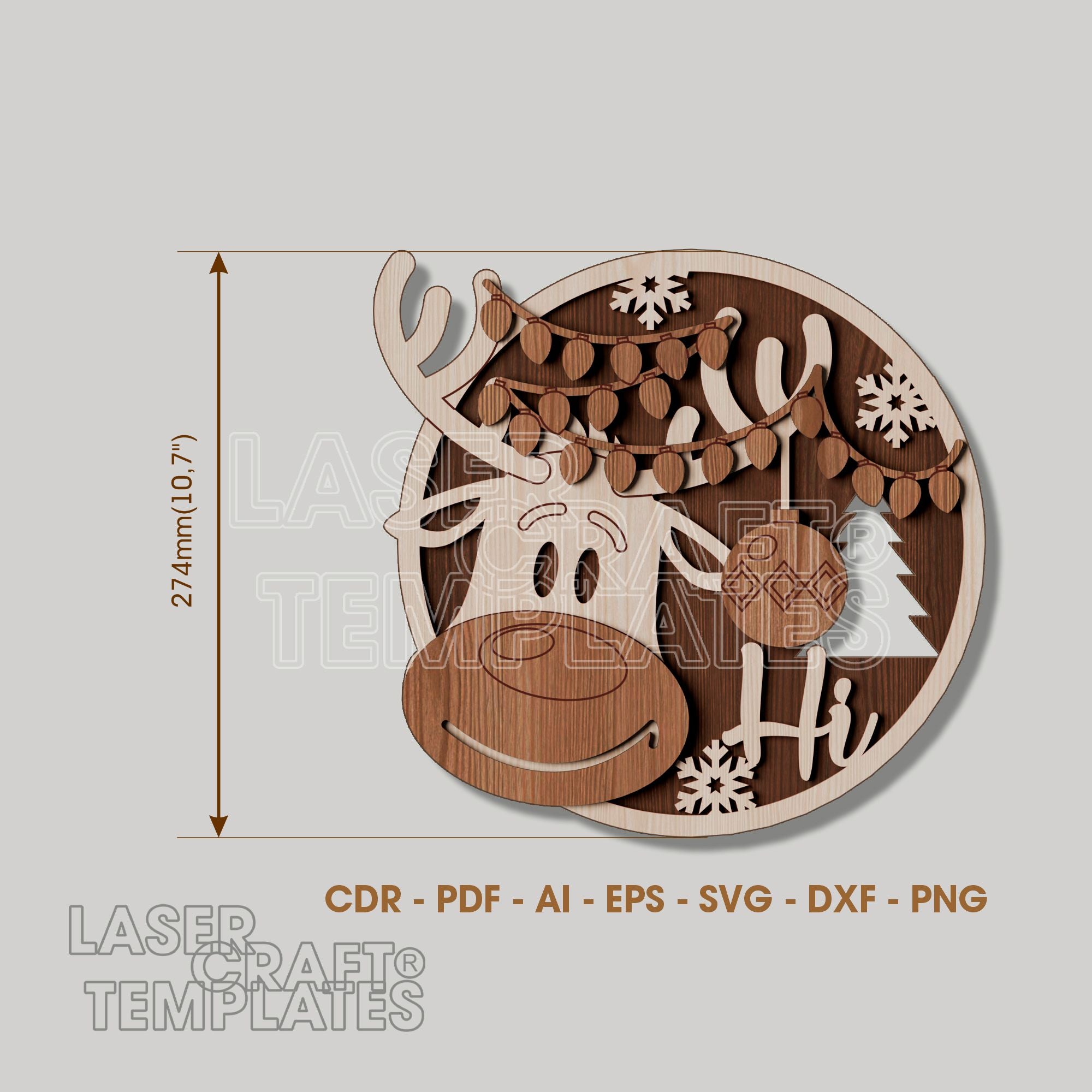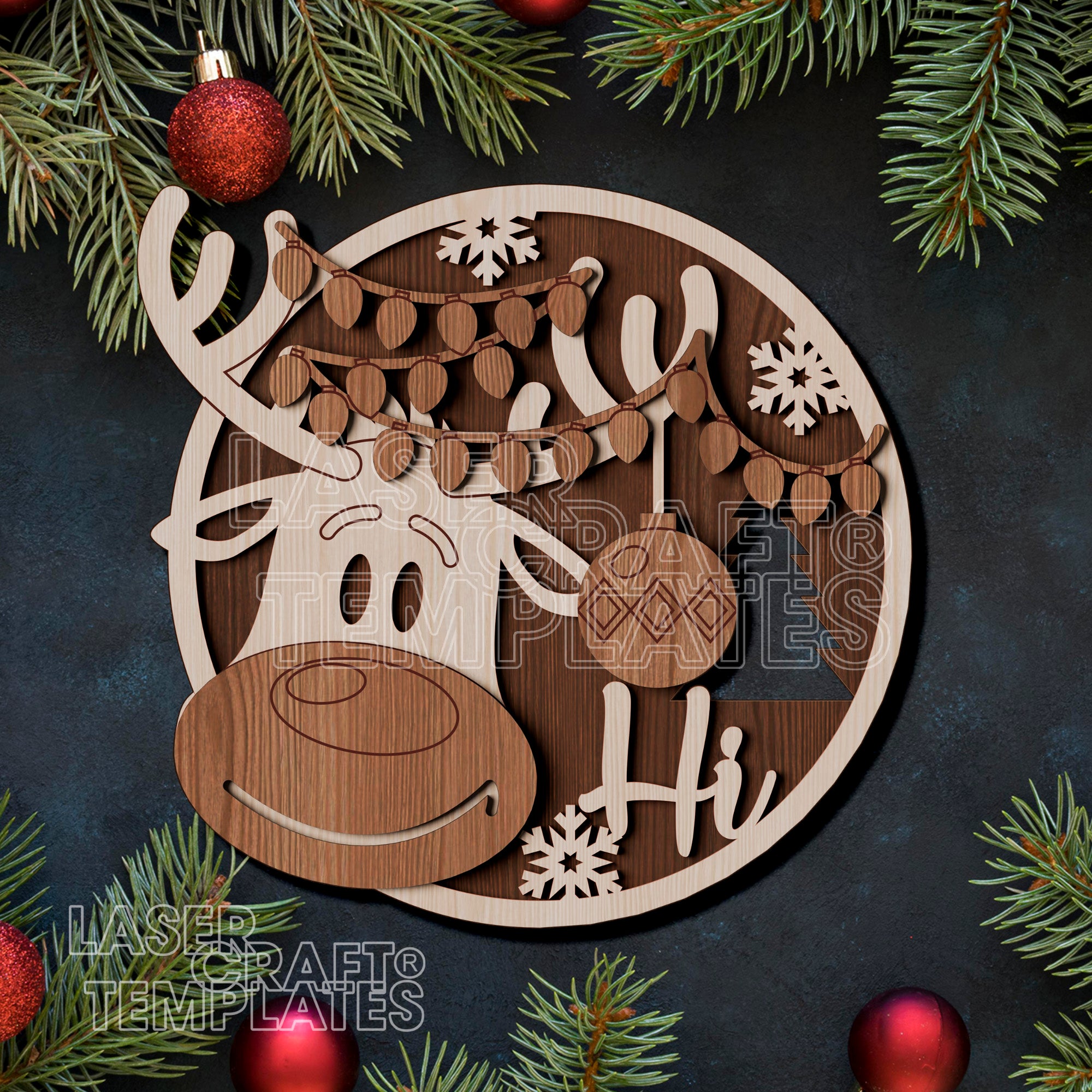 🔹 Christmas Reindeer Round Door Hanger laser cut svg file
