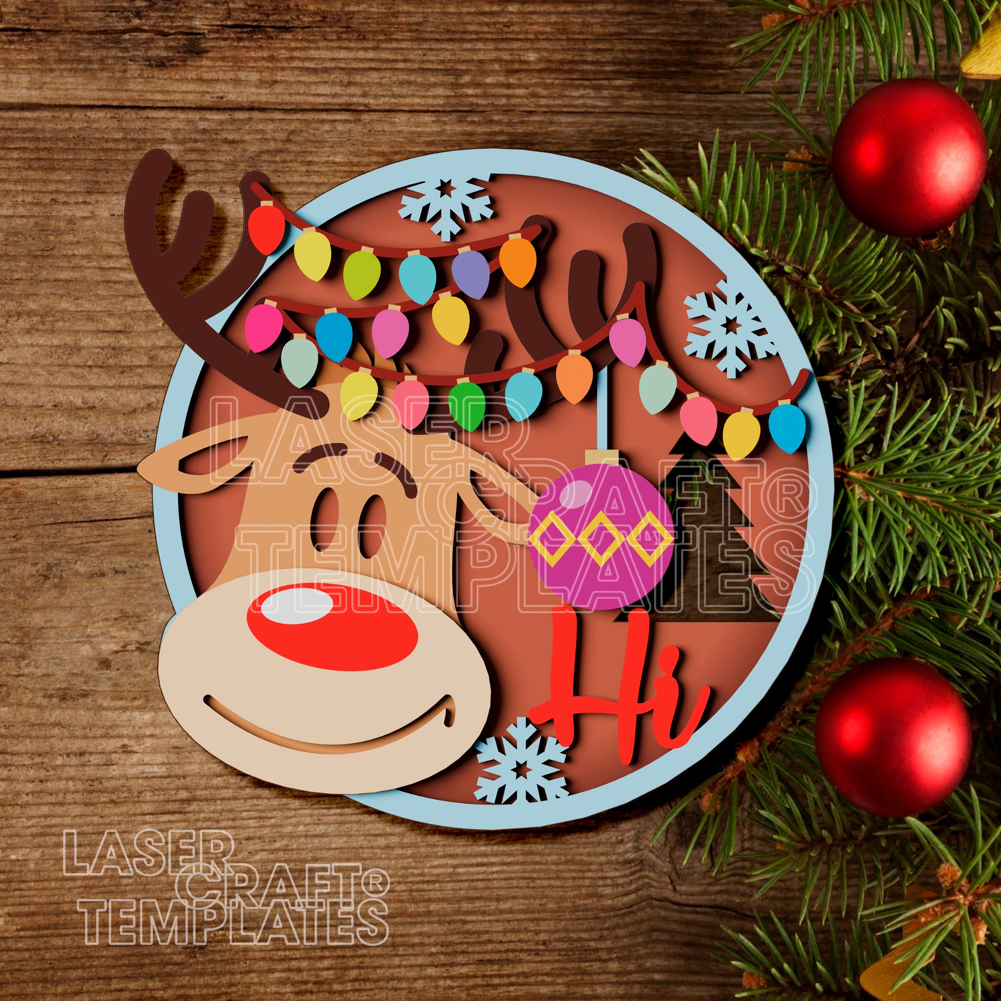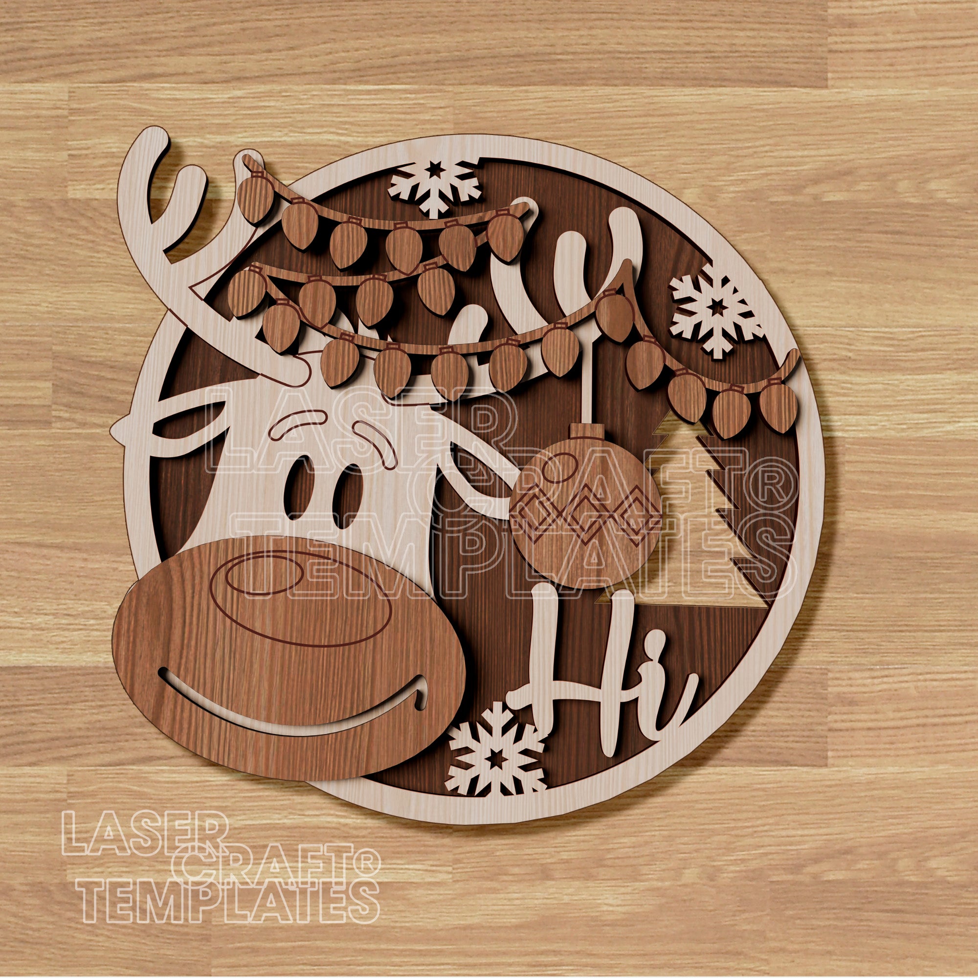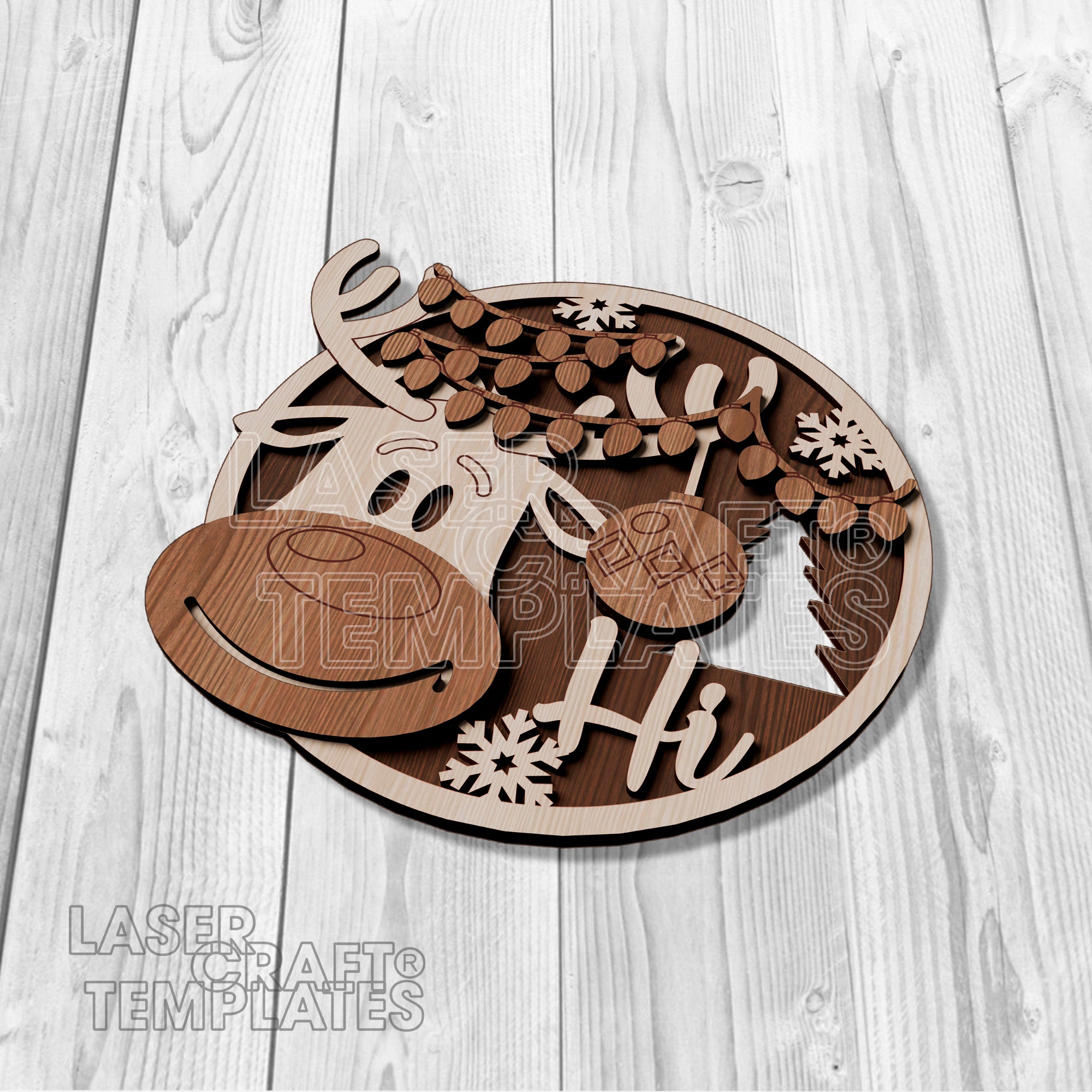 Christmas Reindeer Round Door Hanger laser cut svg file