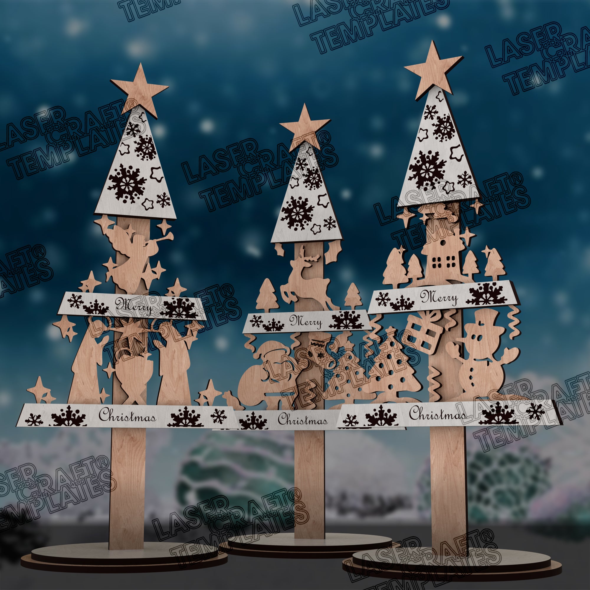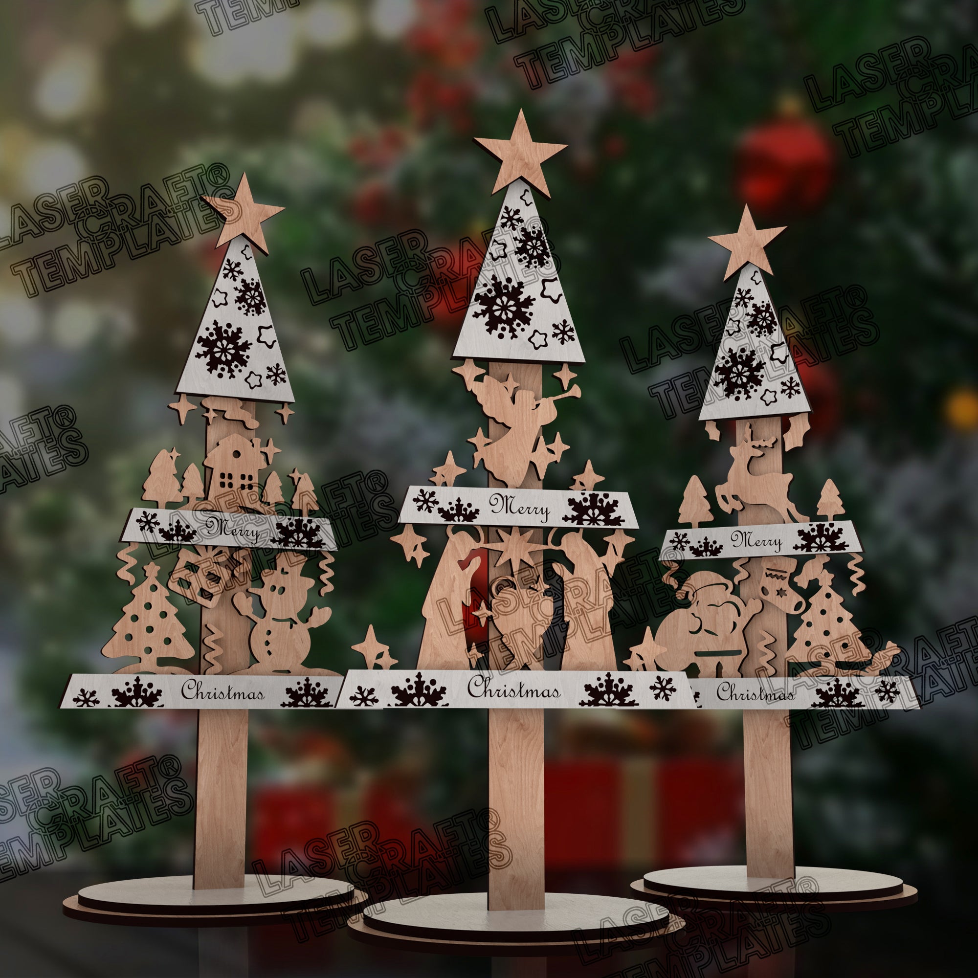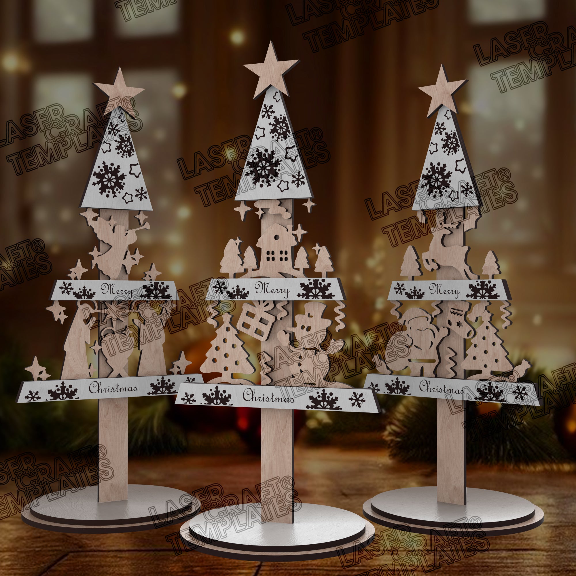🔹 Christmas tree table decor 3 bundle laser cut svg file