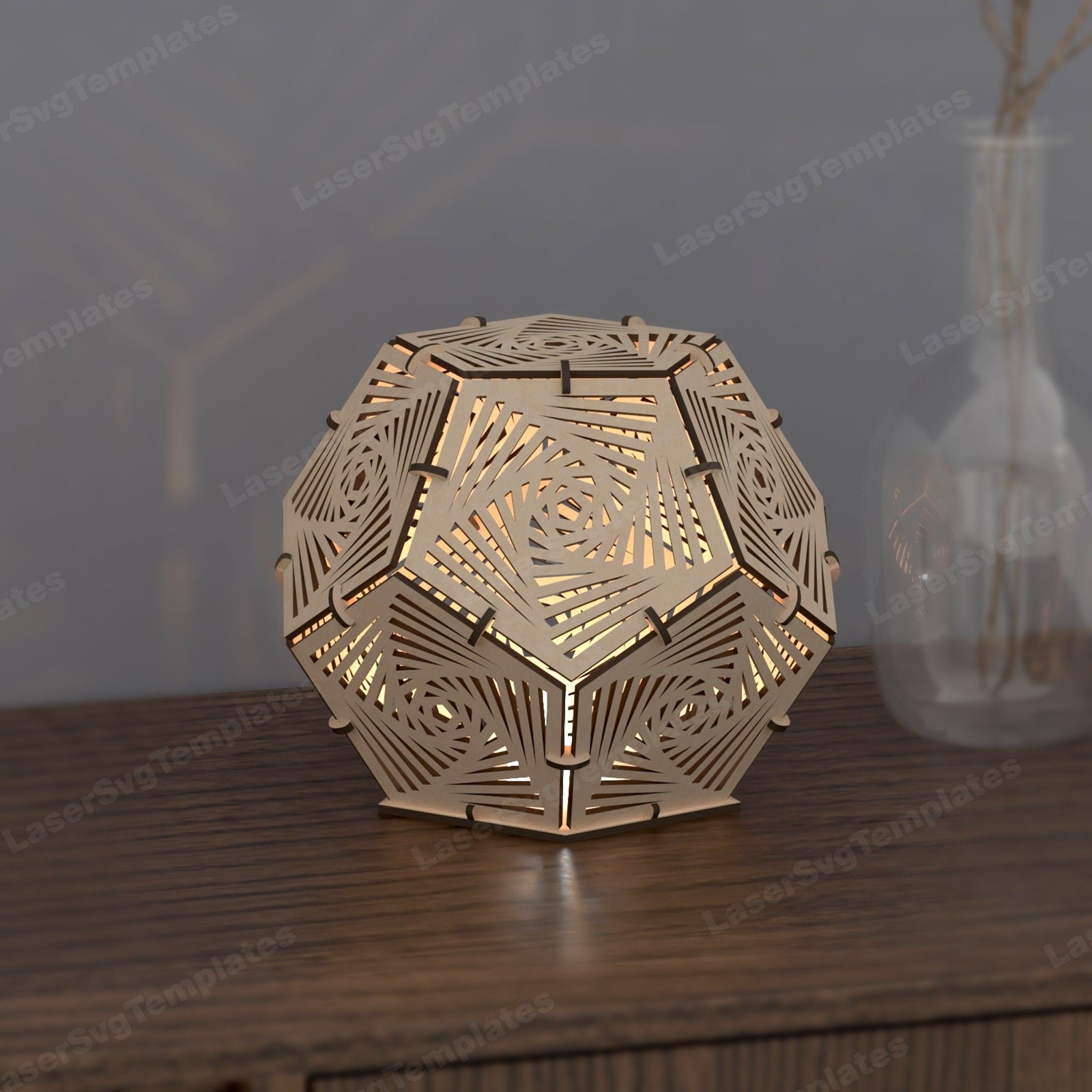 - Lasergeschnitten Dodecaeder Tisch Night Lamp SVG -Vorlage