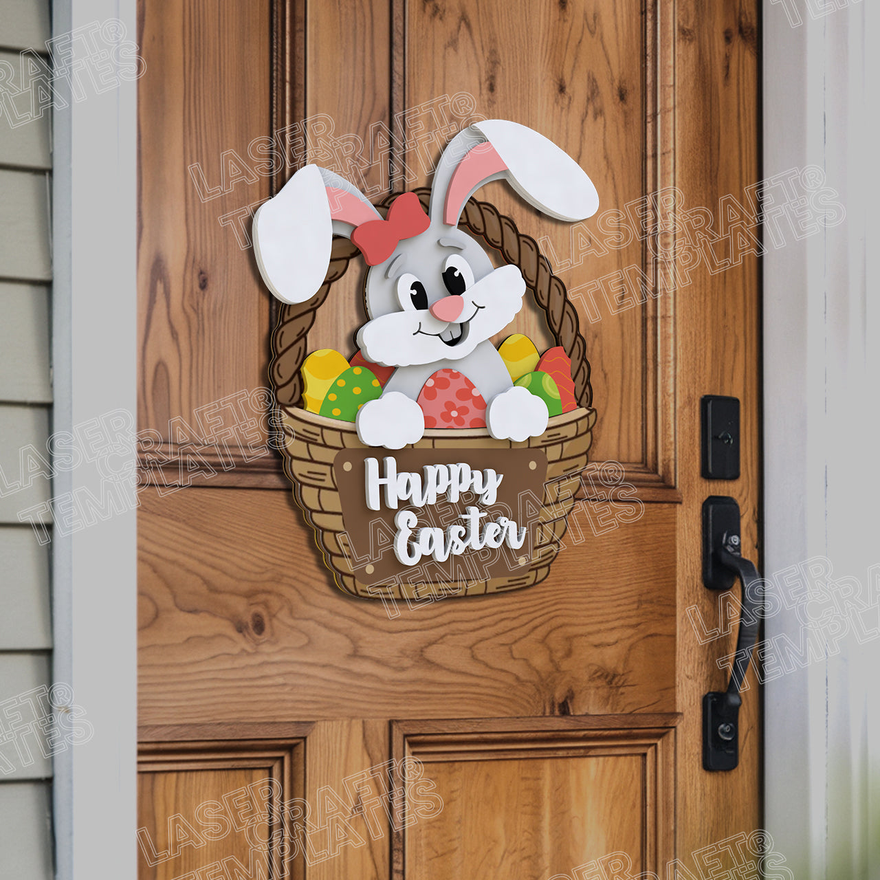 Easter Bunny Basket Welcome Sign laser cut svg file