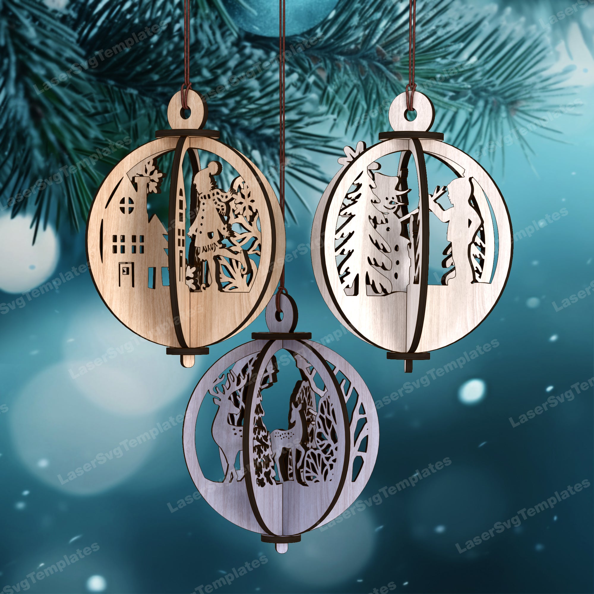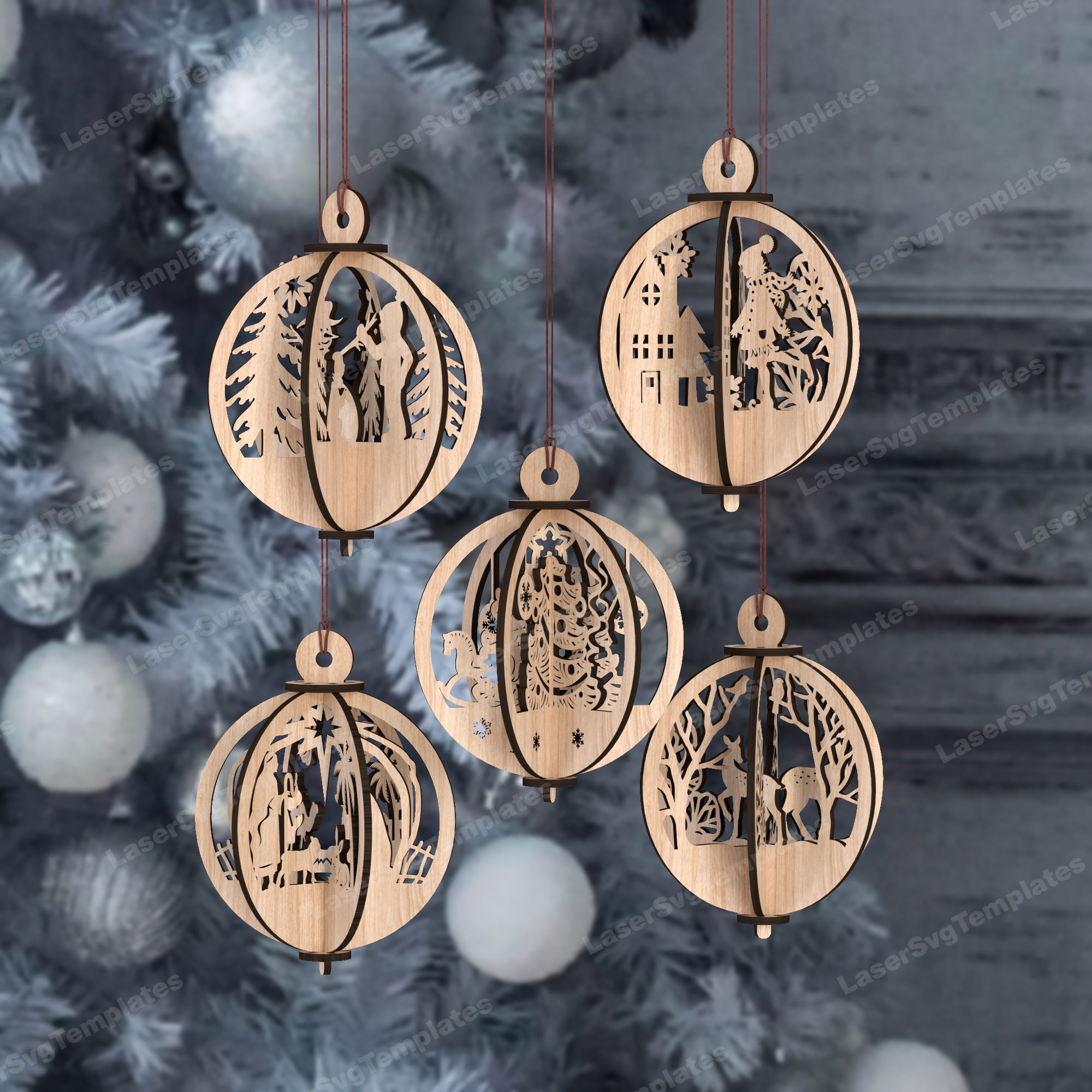 3D-Weihnachtsbaumkugel-Ornamente, 5 Bündel, lasergeschnittene SVG-Datei