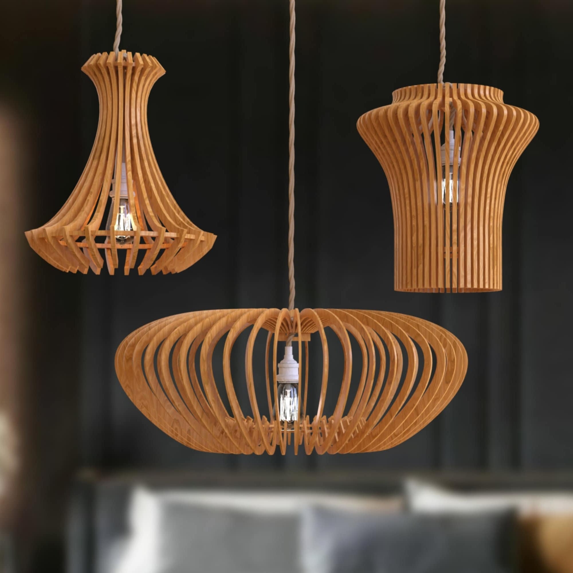 Hölzerne Kronleuchter 3 Bundle Laser Cut SVG -Datei