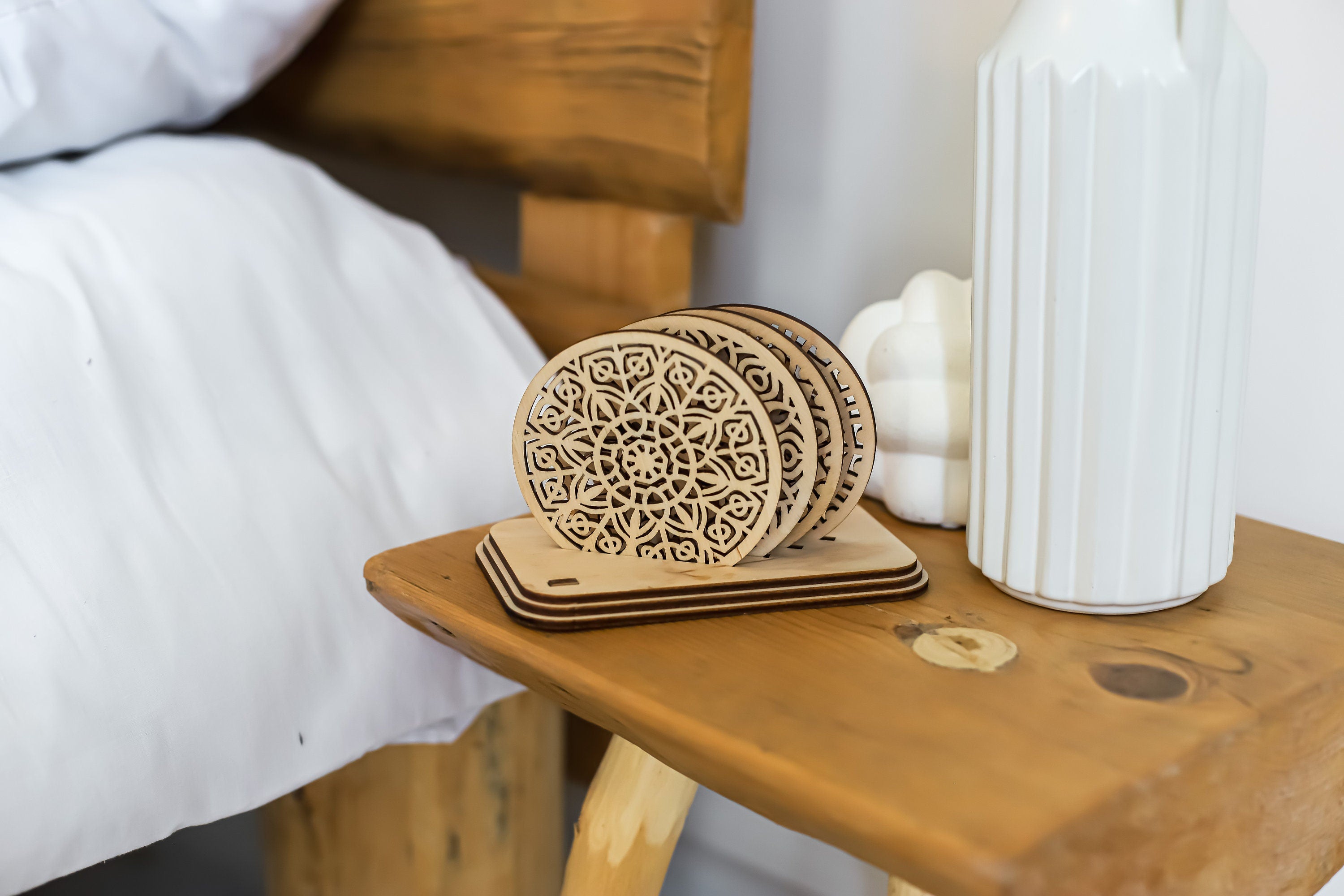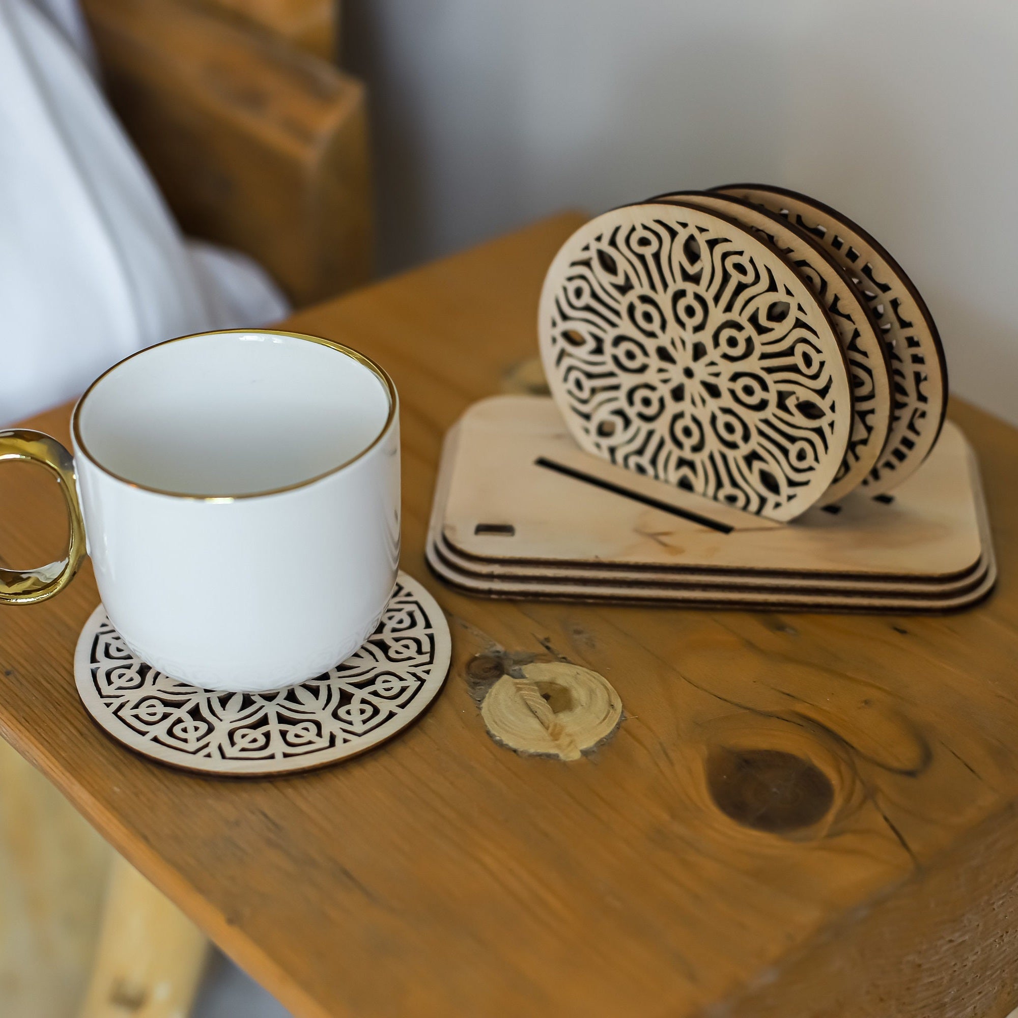- Laser -Cut -Mandala -Untersetzer mit Halter -SVG -Vorlage festgelegt