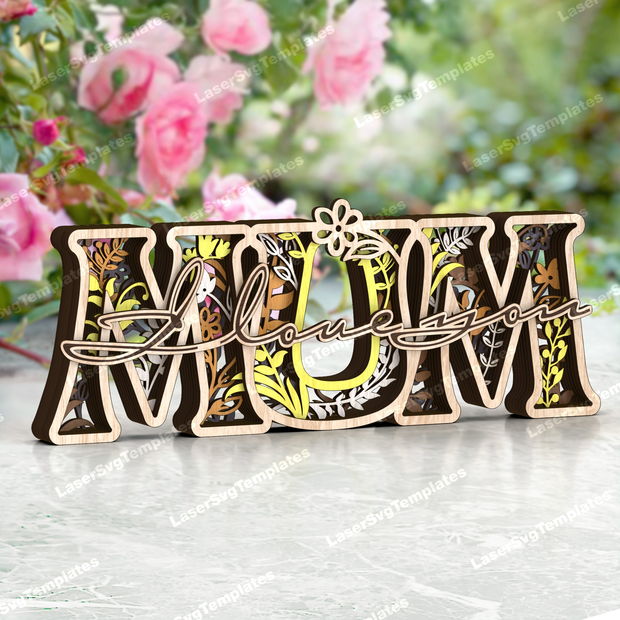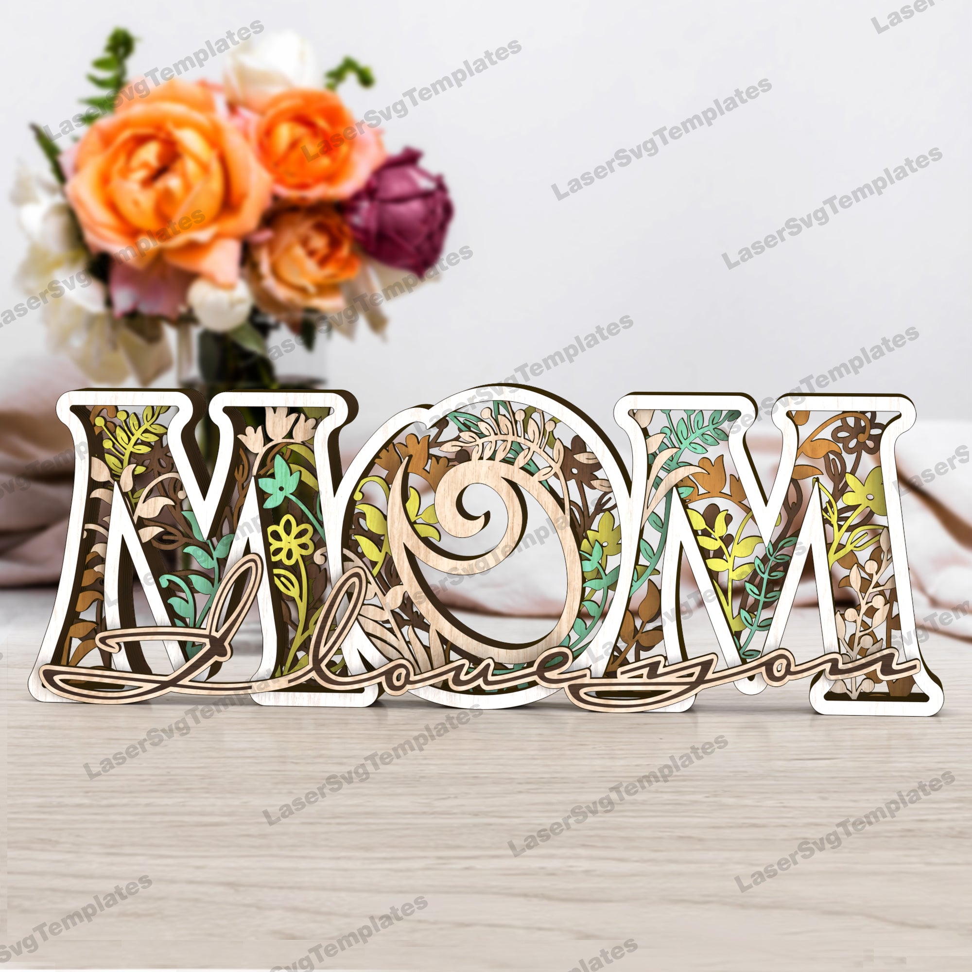 Laser cut Multilayer Mom standing sign 3 bundle svg file