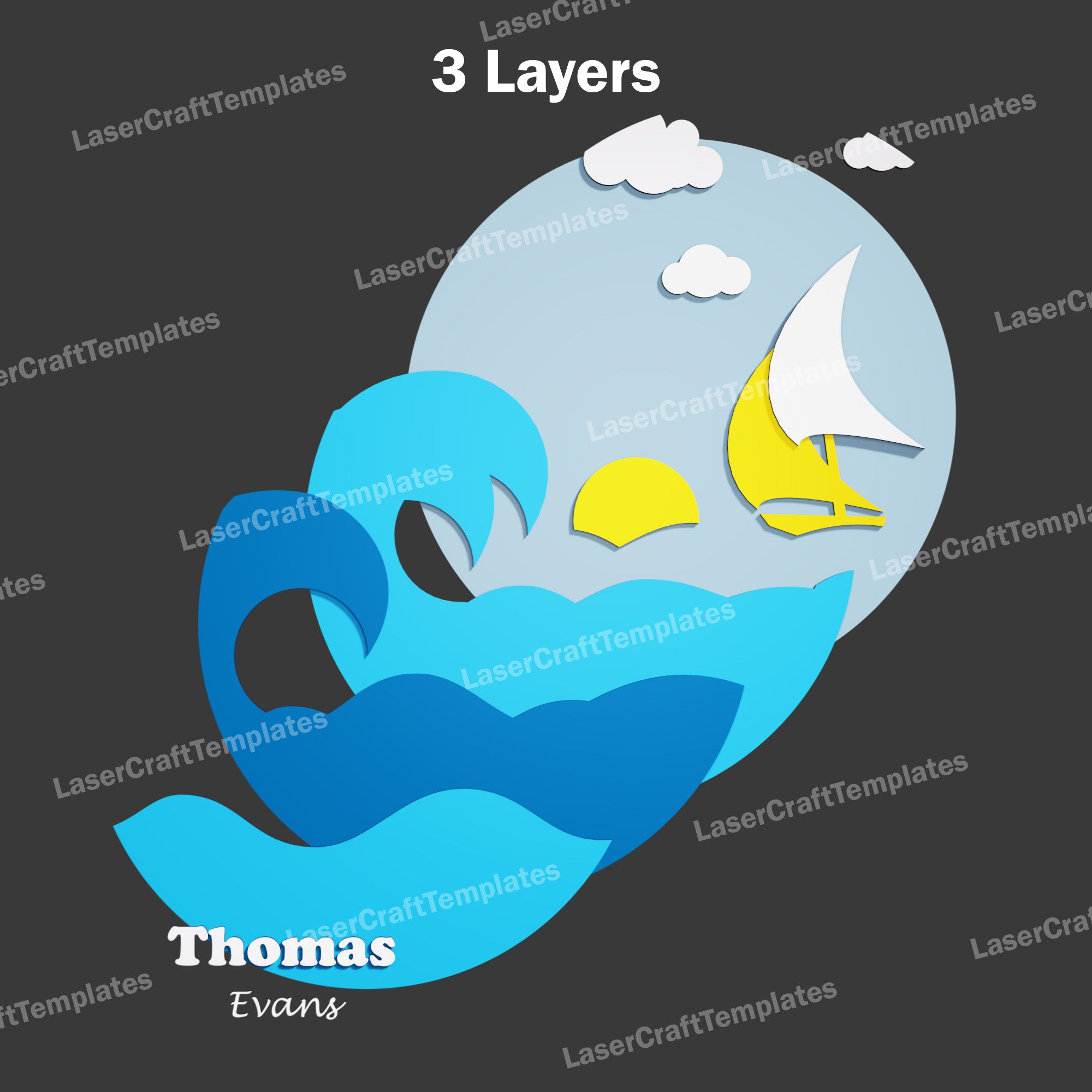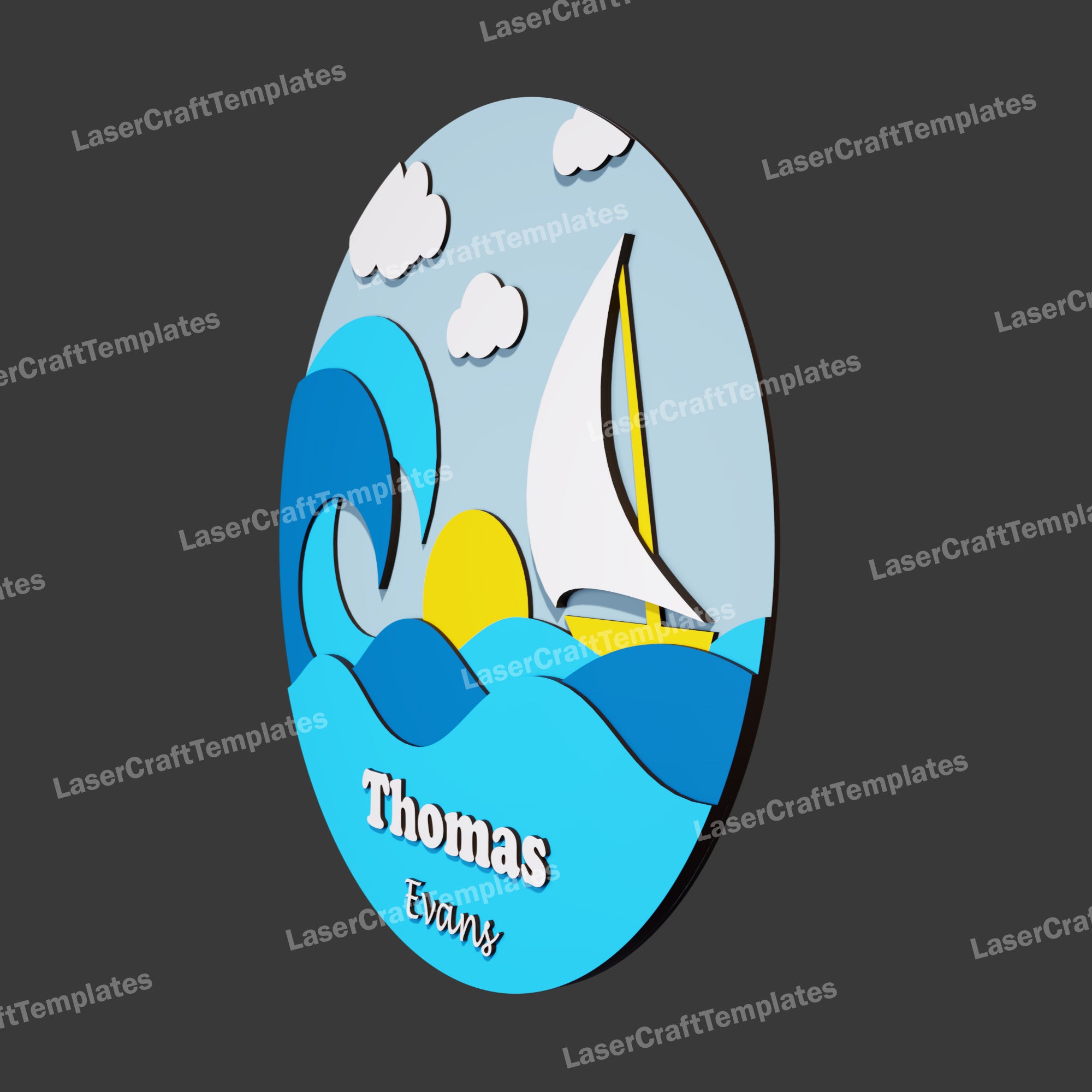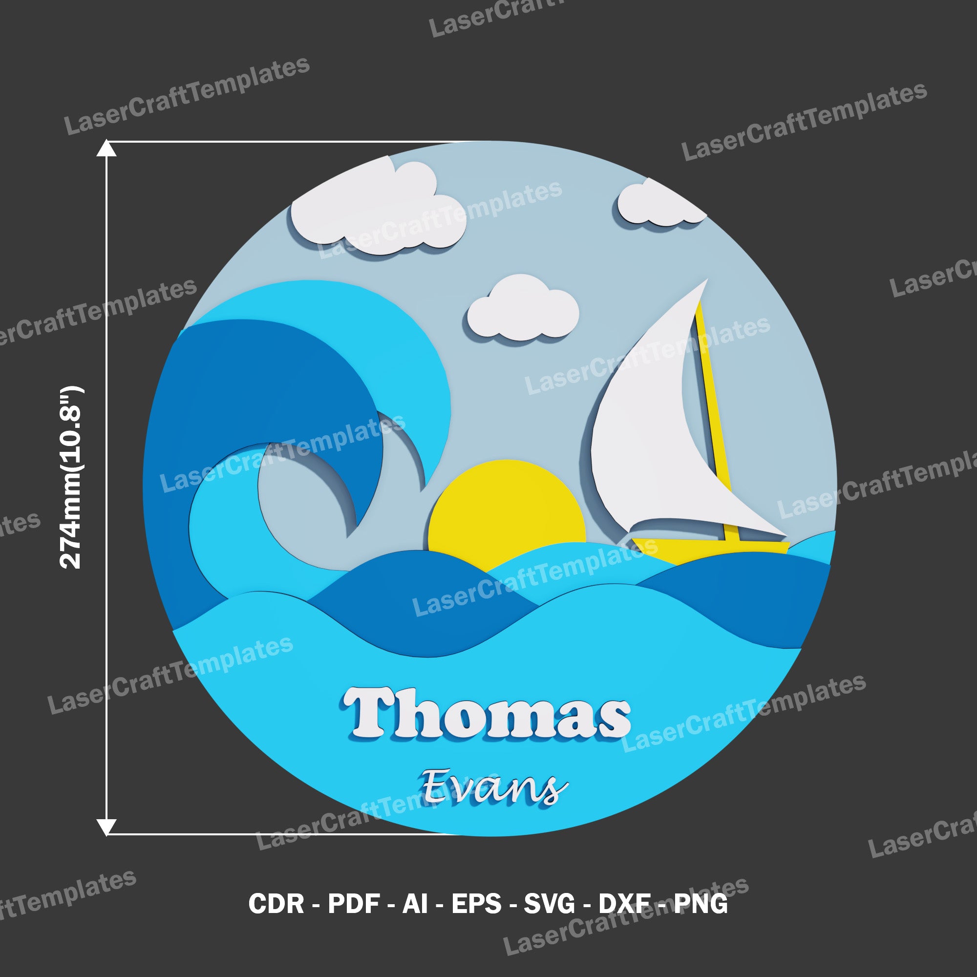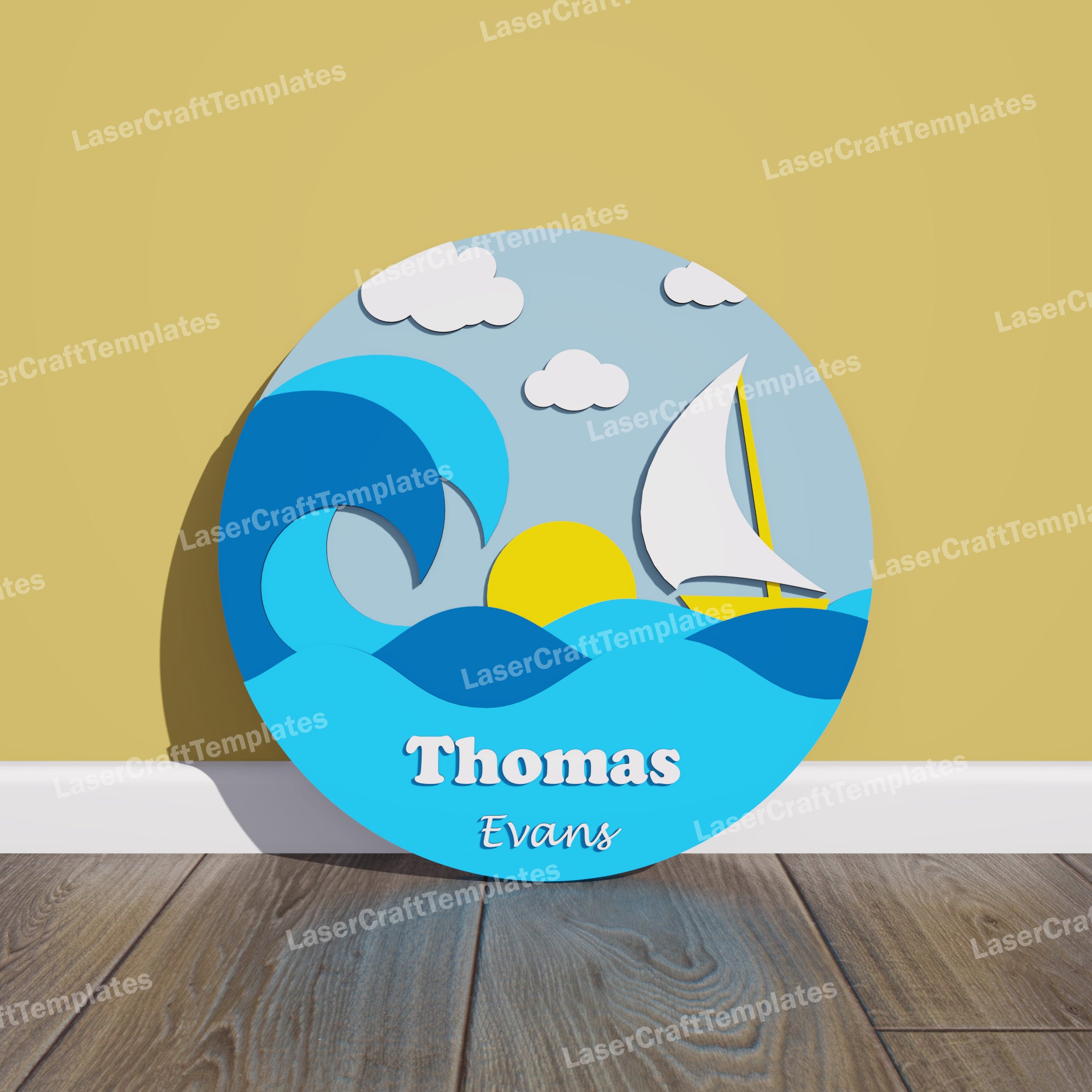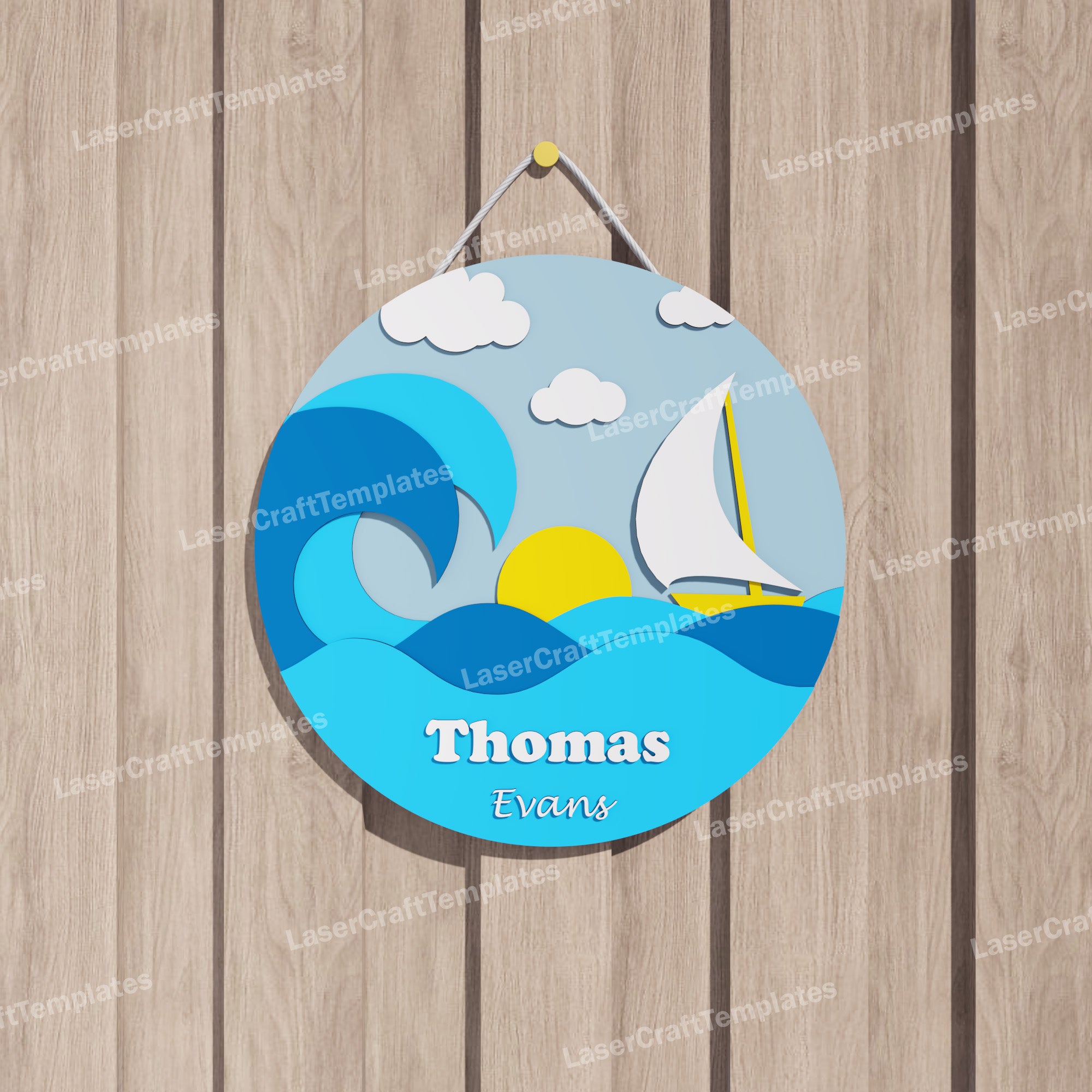 Wooden Sea Baby Name Sign Door hanger laser cut svg file