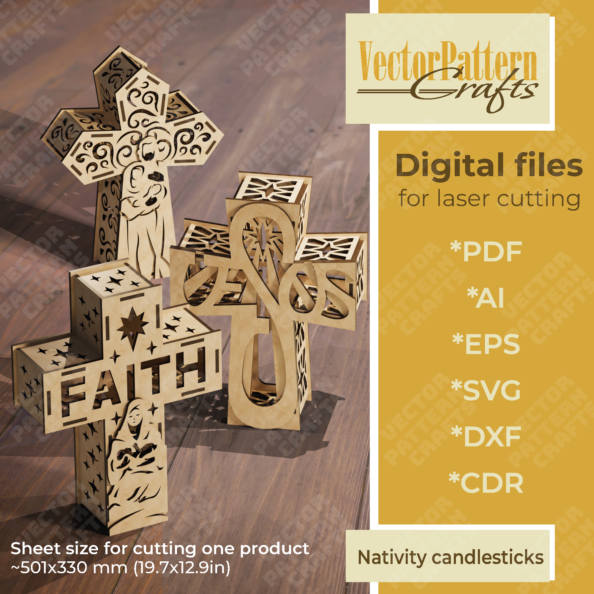 3 bewertungenHölzerne Kerzenhalter Laser Cut SVG -Datei