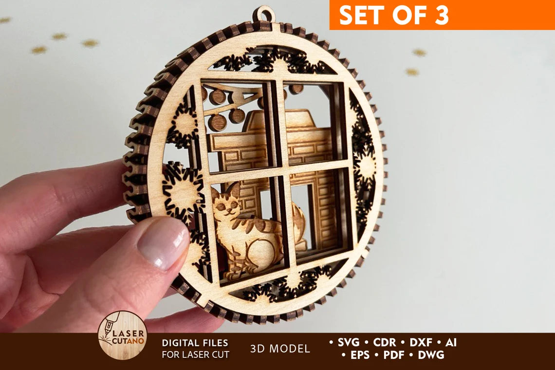 Ornements de Noël 3D avec fichier SVG découpé au laser pour chat