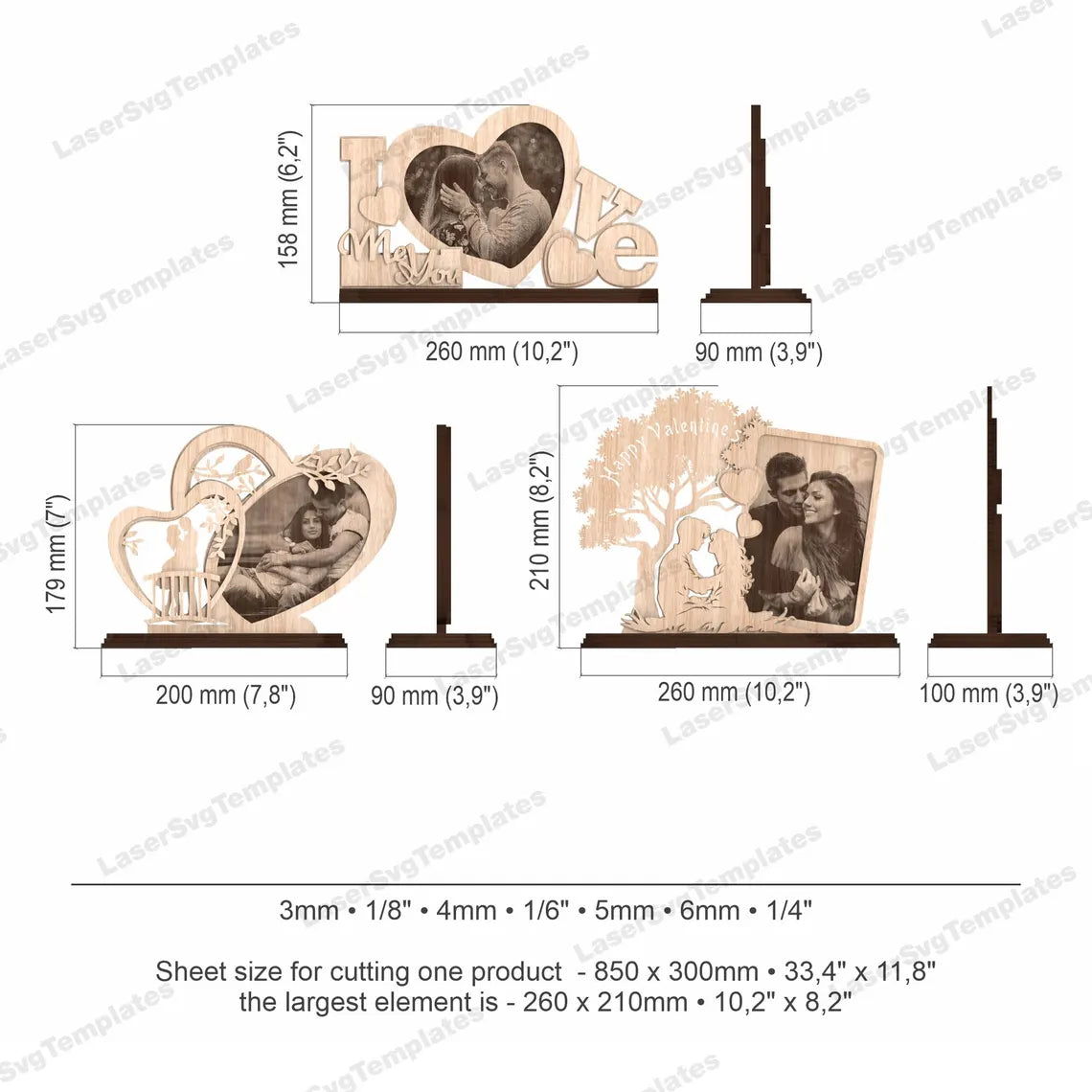 Valentines love heart photo frame 3 bundle laser cut fichier svg