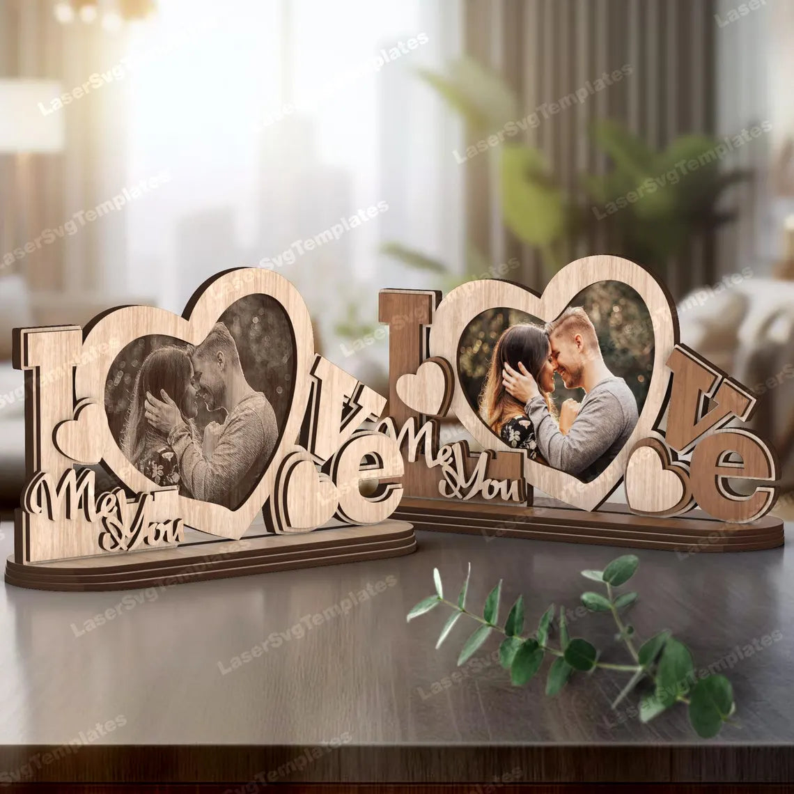Valentines amour coeur photo cadre laser coupé fichier svg