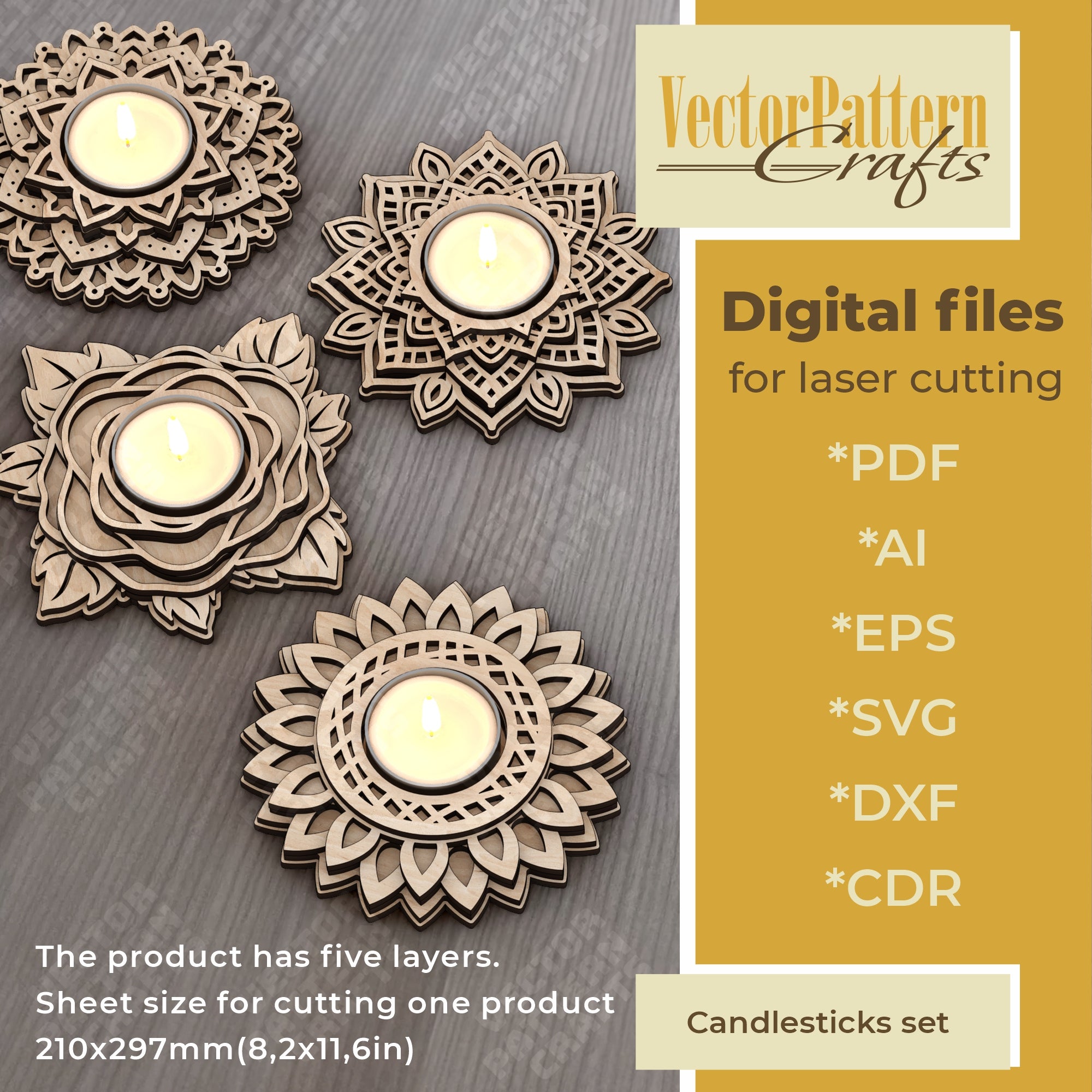 Bougeoir en couches 4 bundle fichier svg découpé au laser
