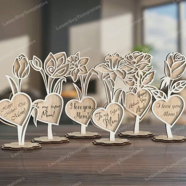 Décoration de table de fleurs de fête des mères 6 bundle fichier svg découpé au laser