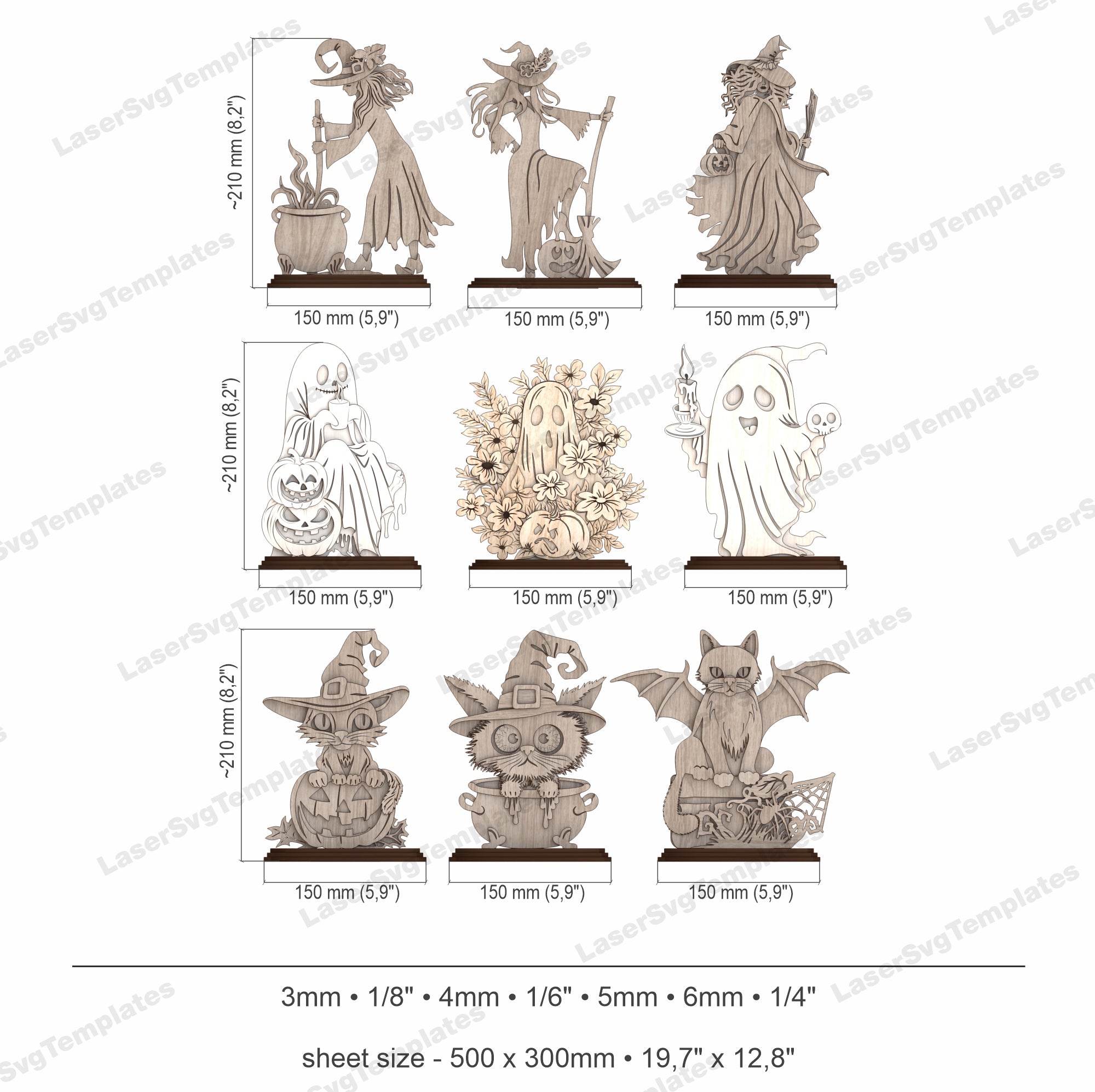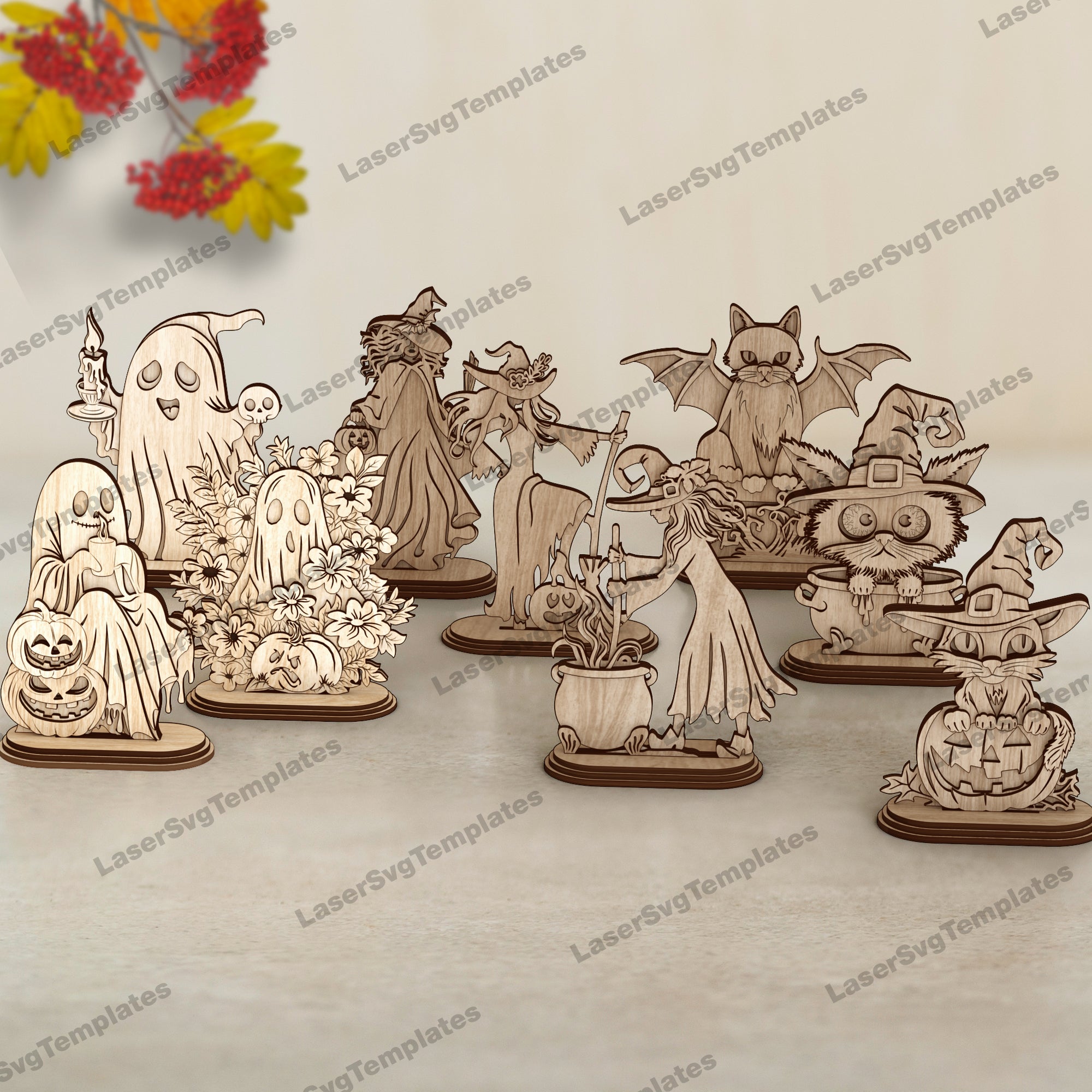 Décoration de table debout d’Halloween 9 bundle fichier svg découpé au laser
