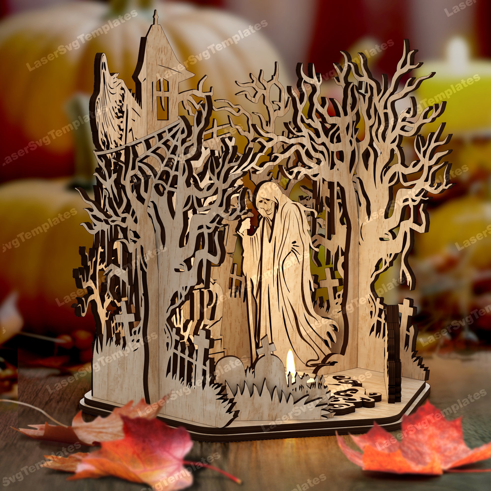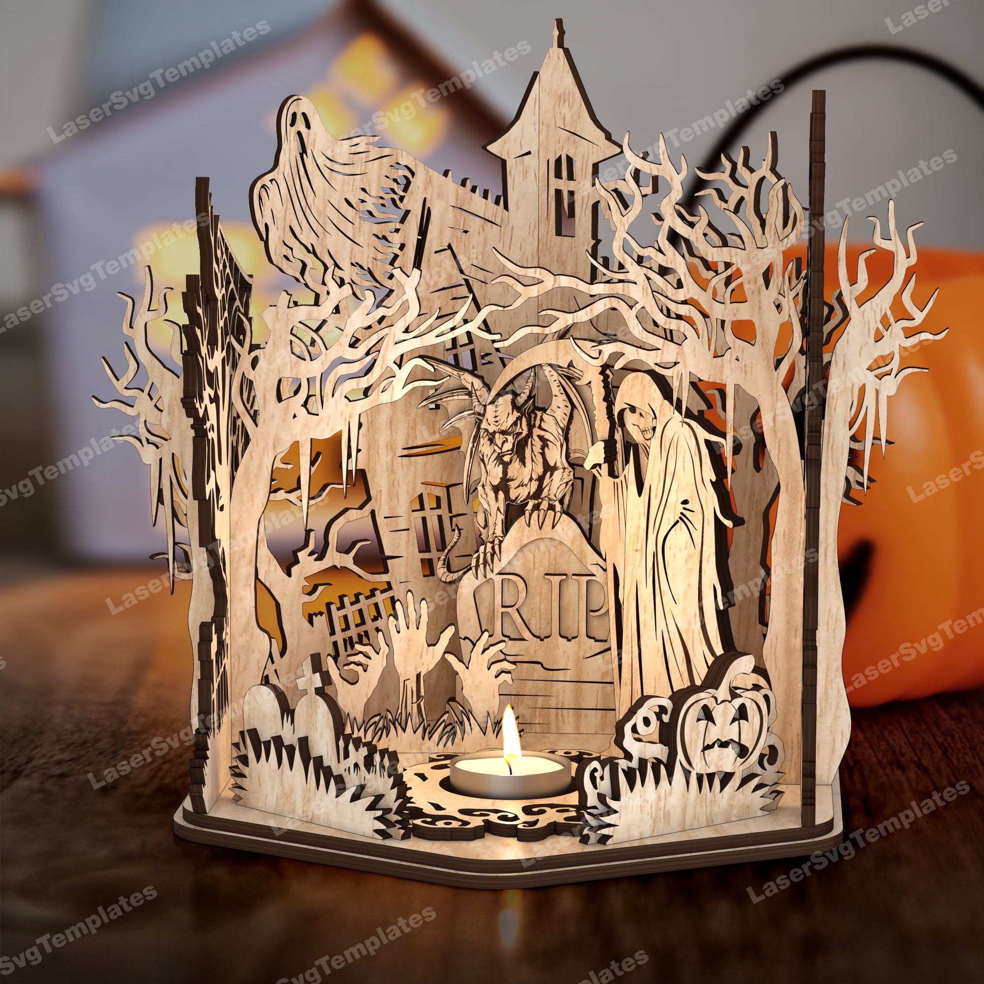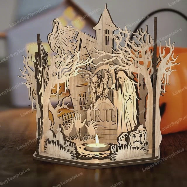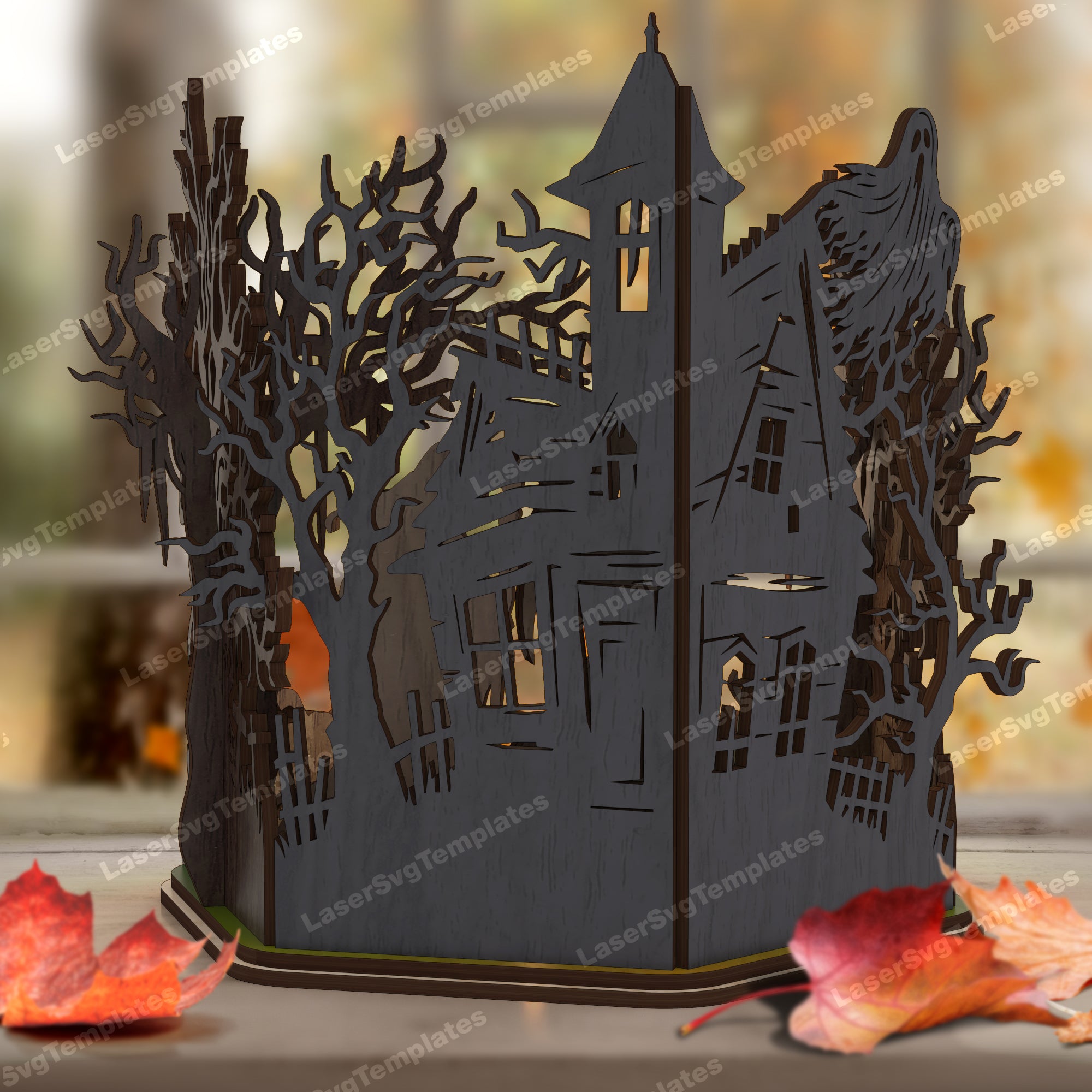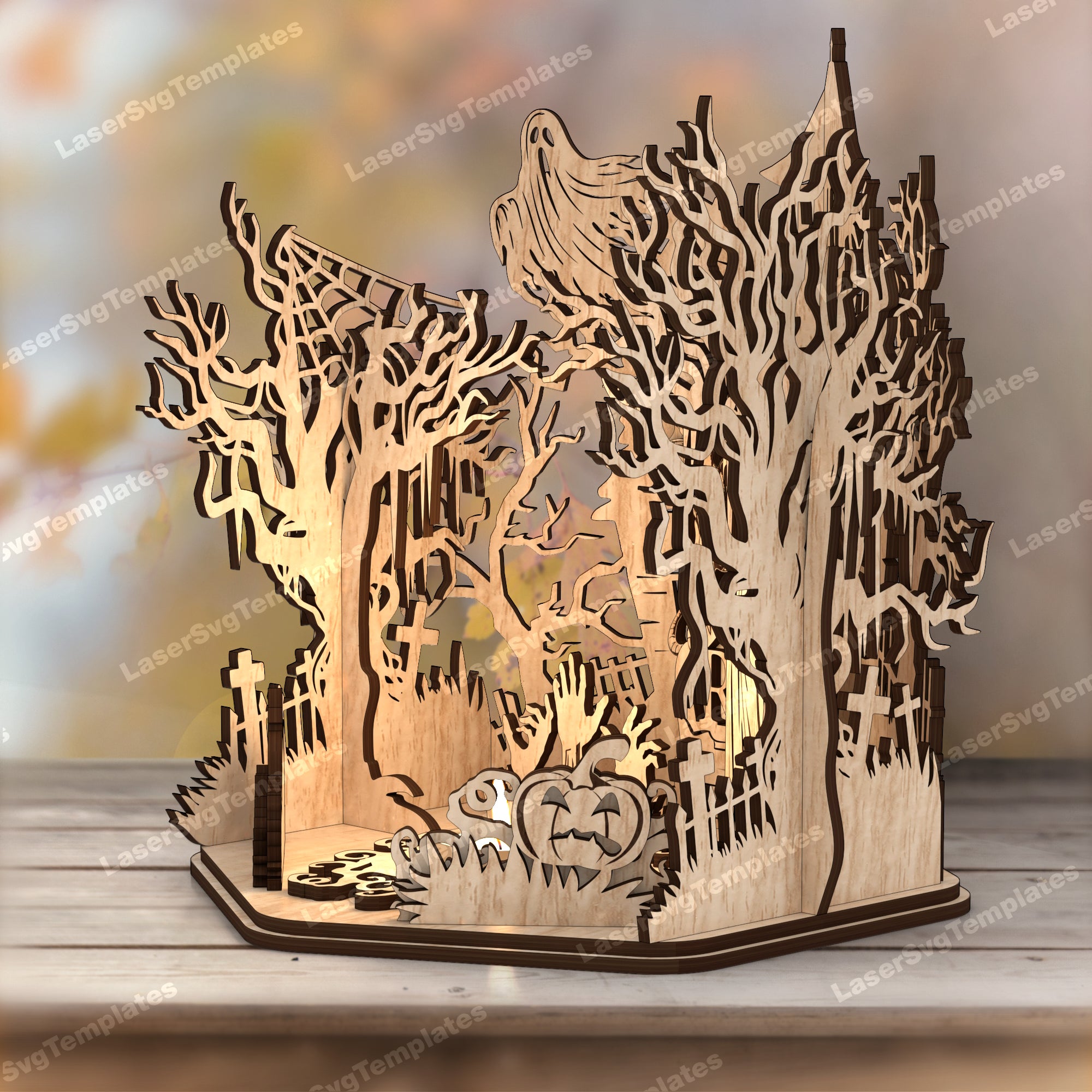 Fichier svg découpé au laser de lampe de table de scène d’Halloween