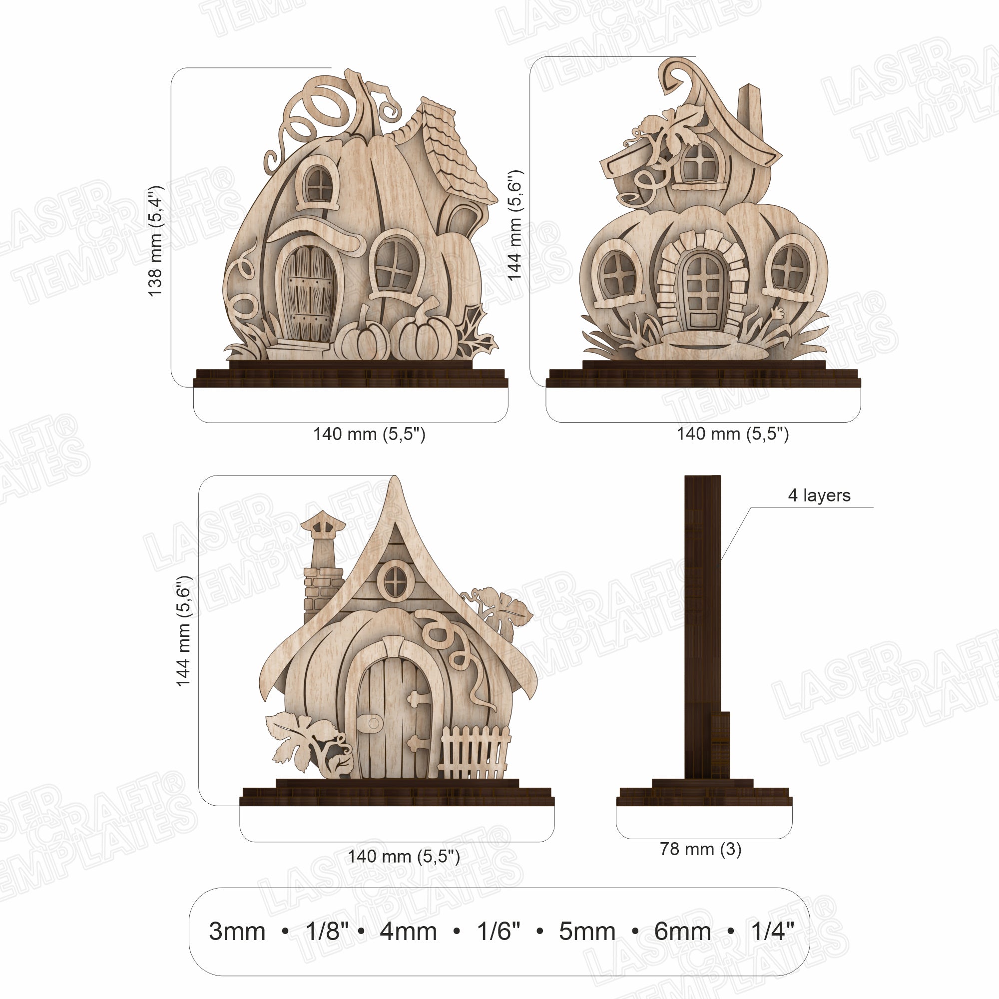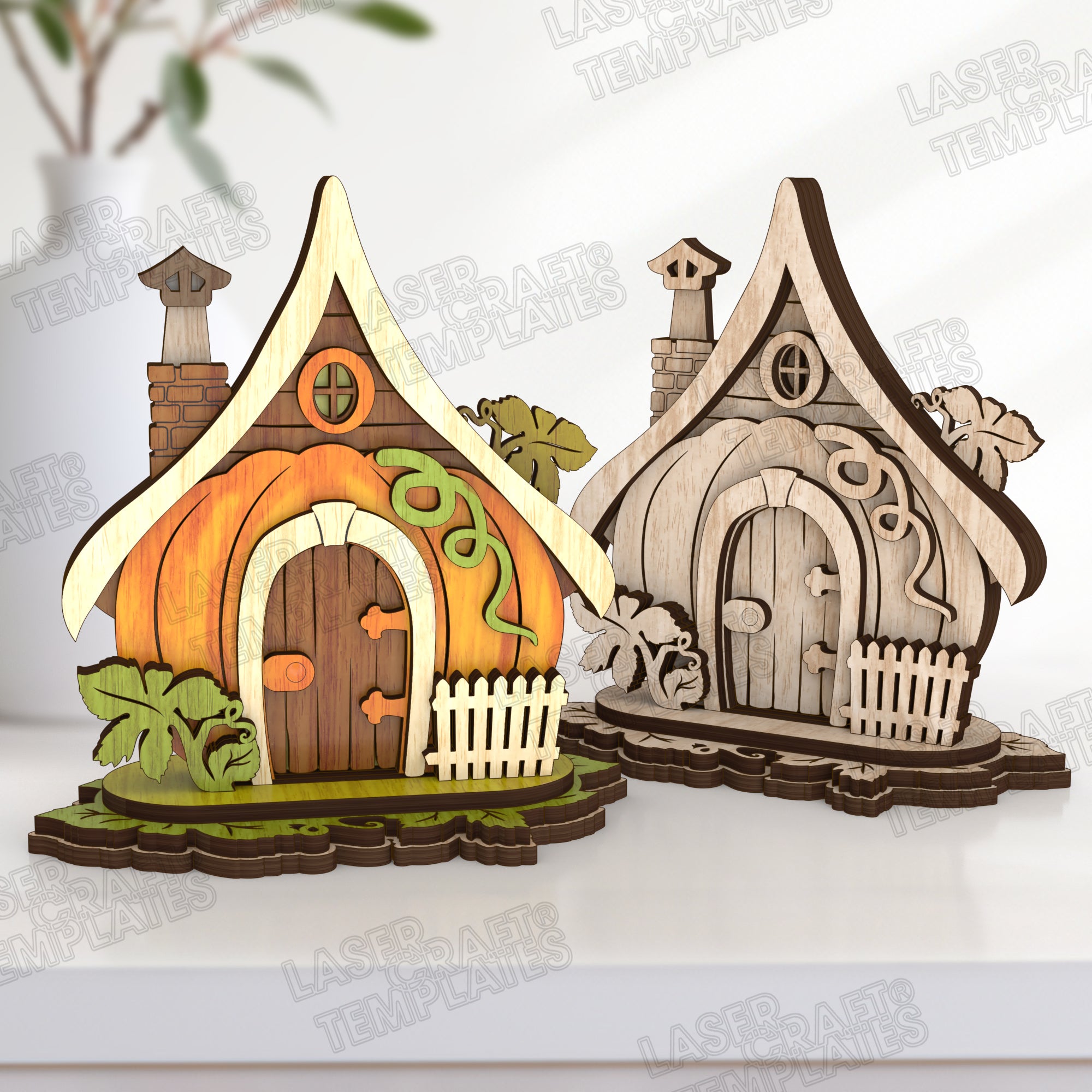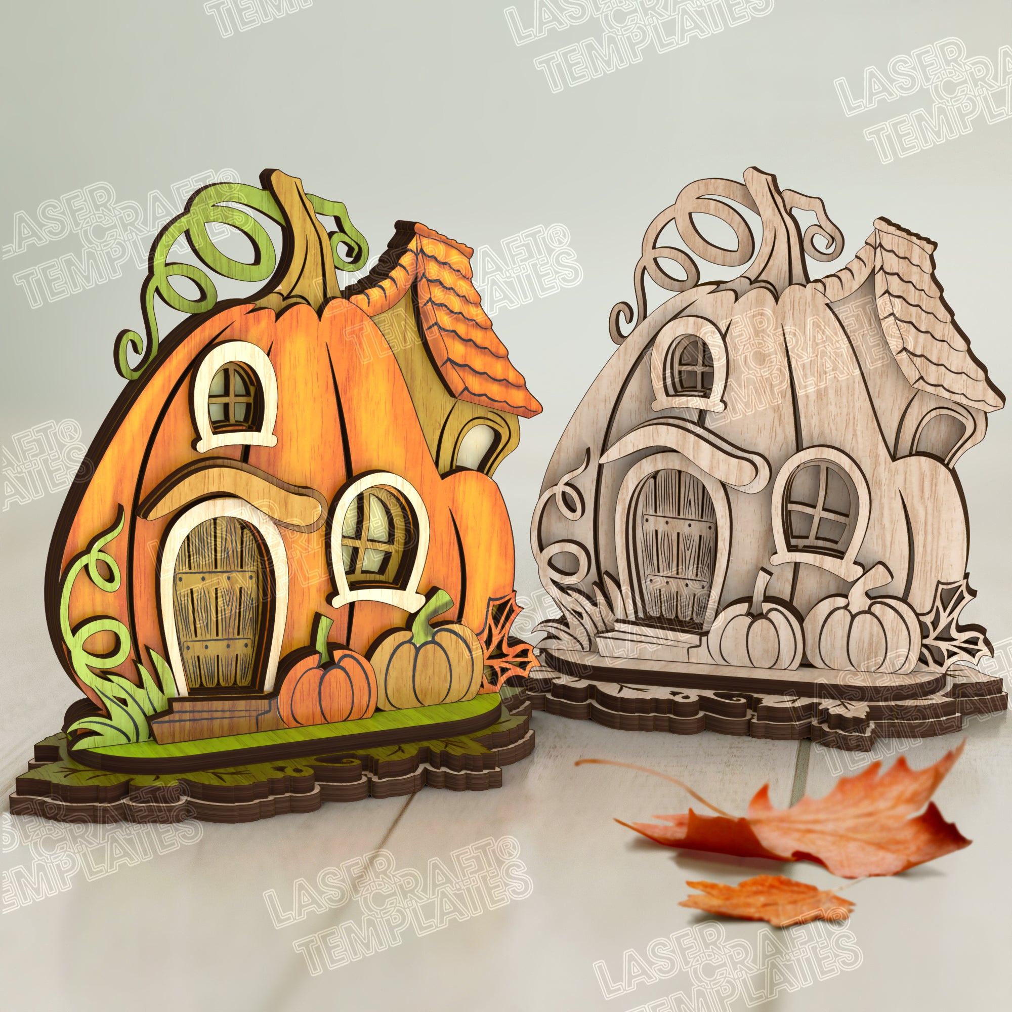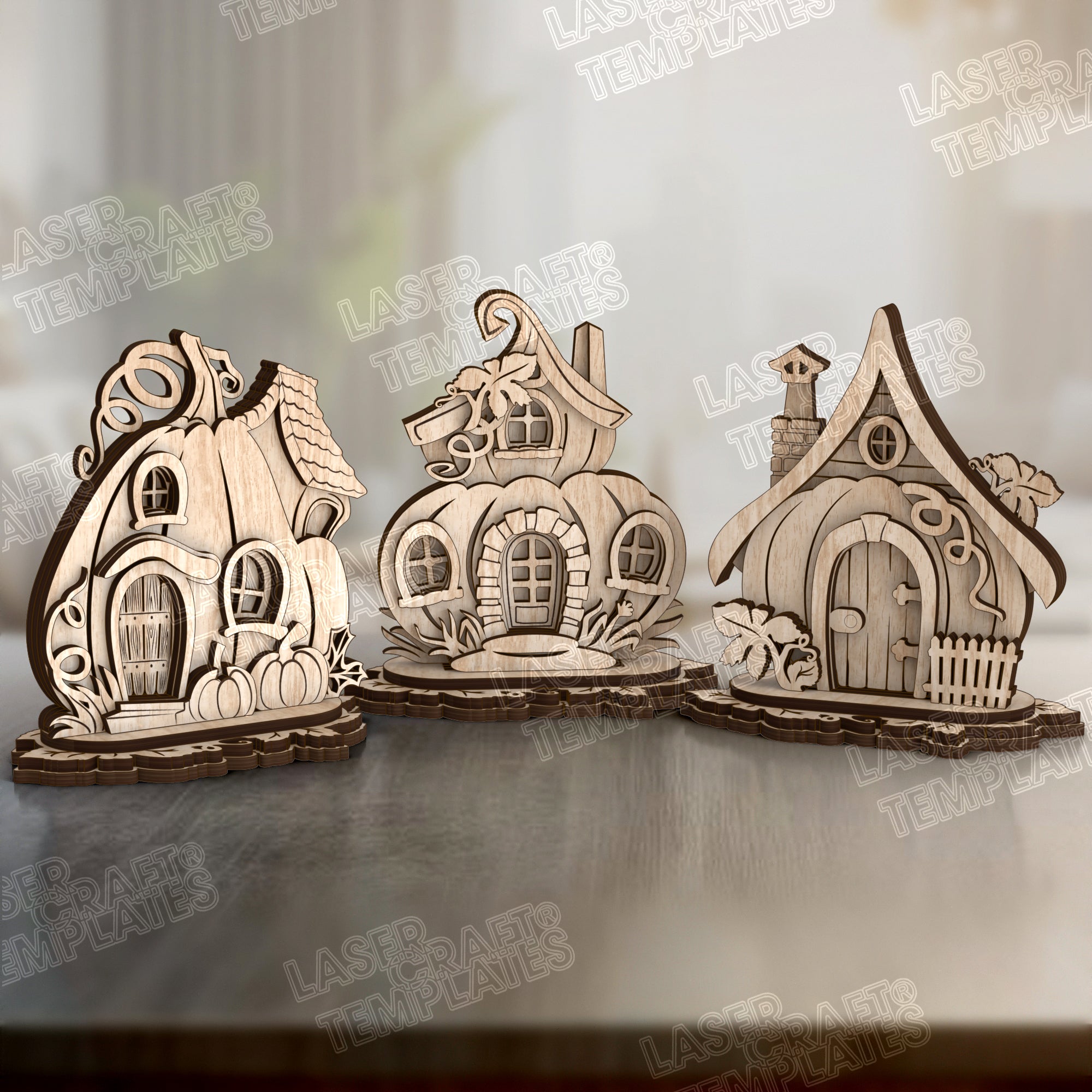 Maison de citrouille découpée au laser Halloween 3 ensemble fichier svg
