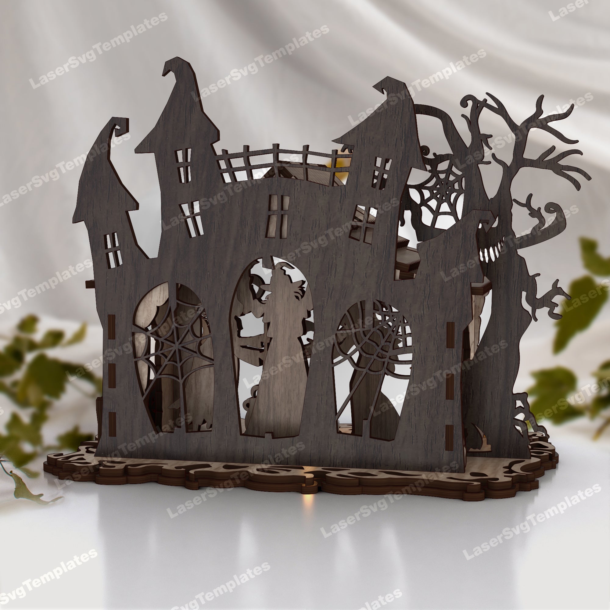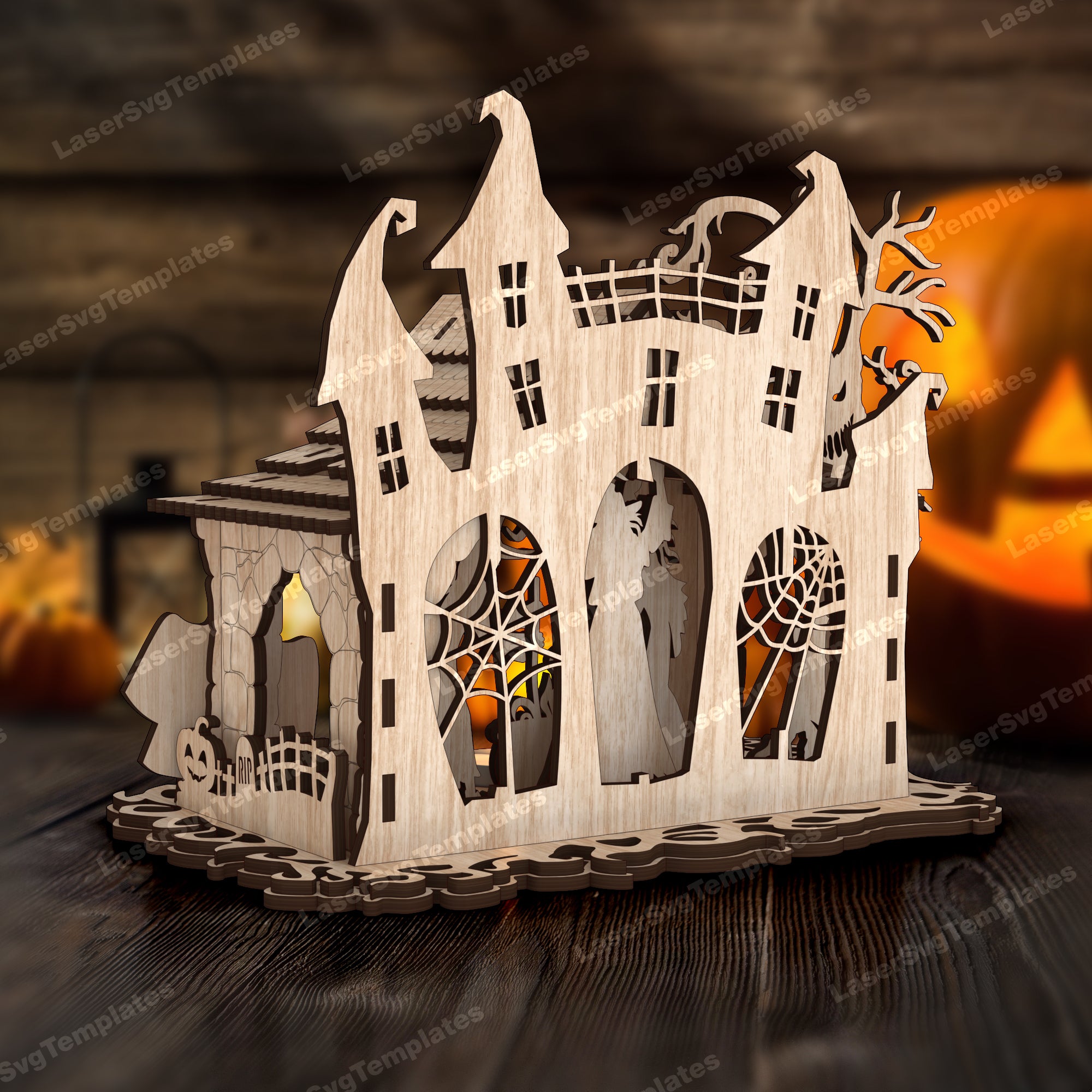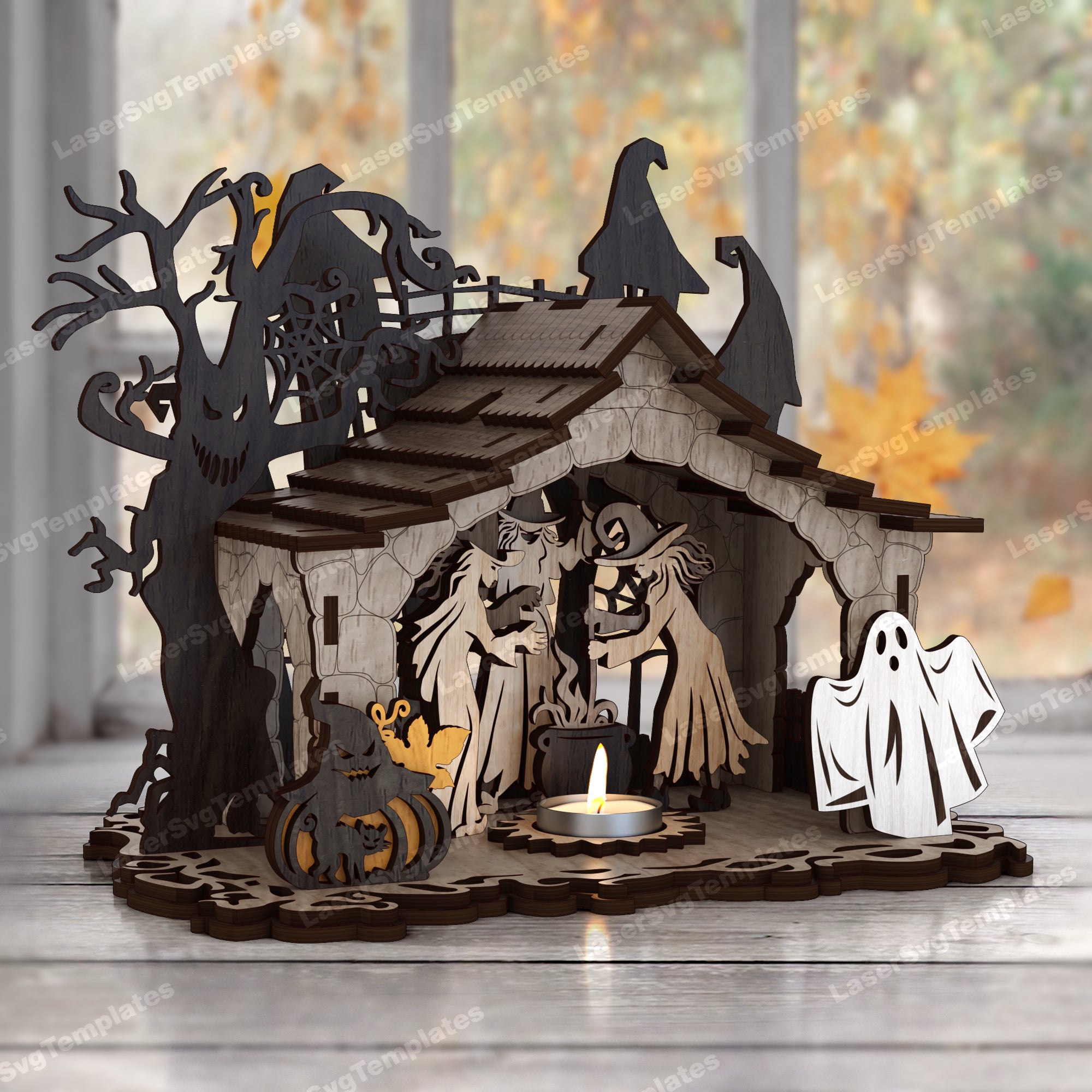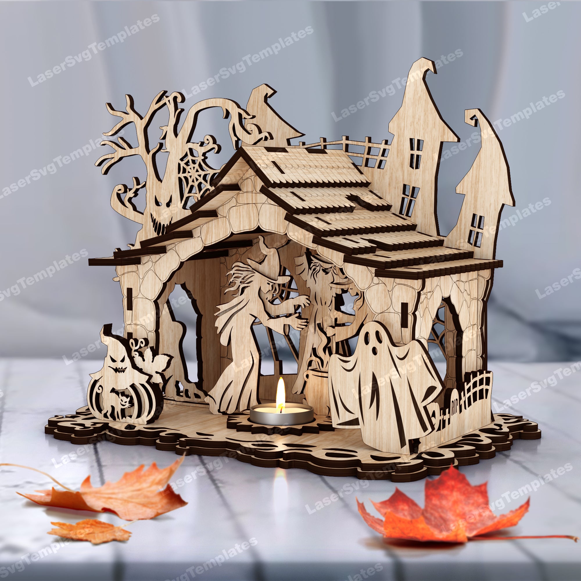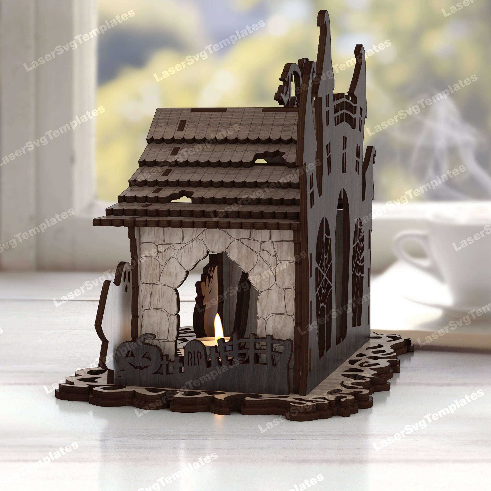 Fichier svg découpé au laser de bougeoir de scène d’Halloween