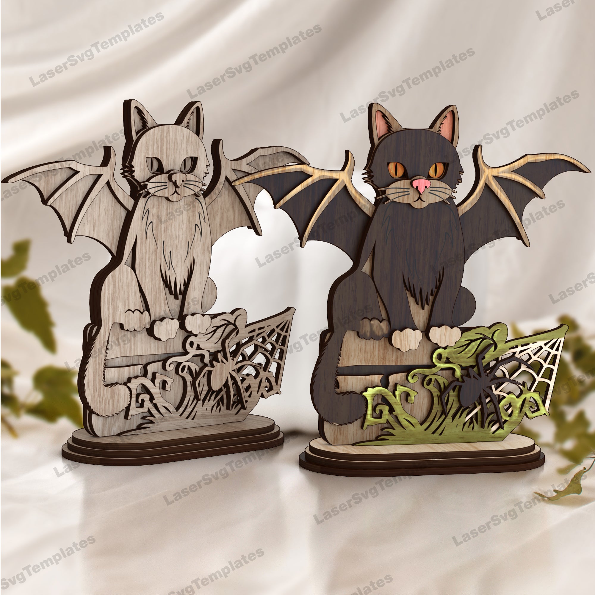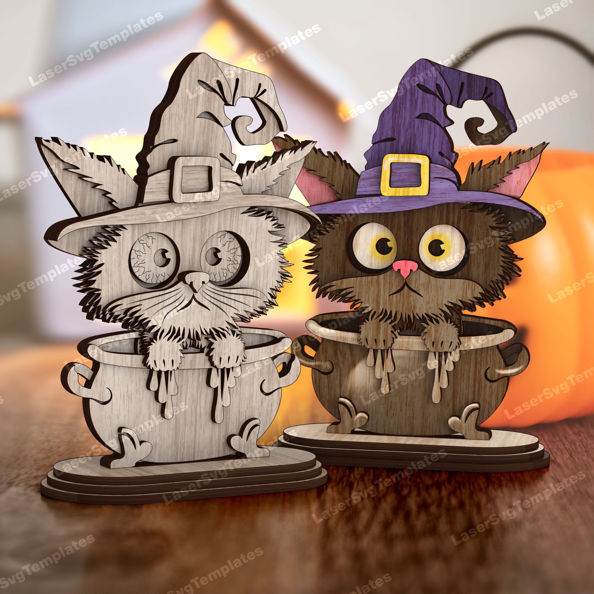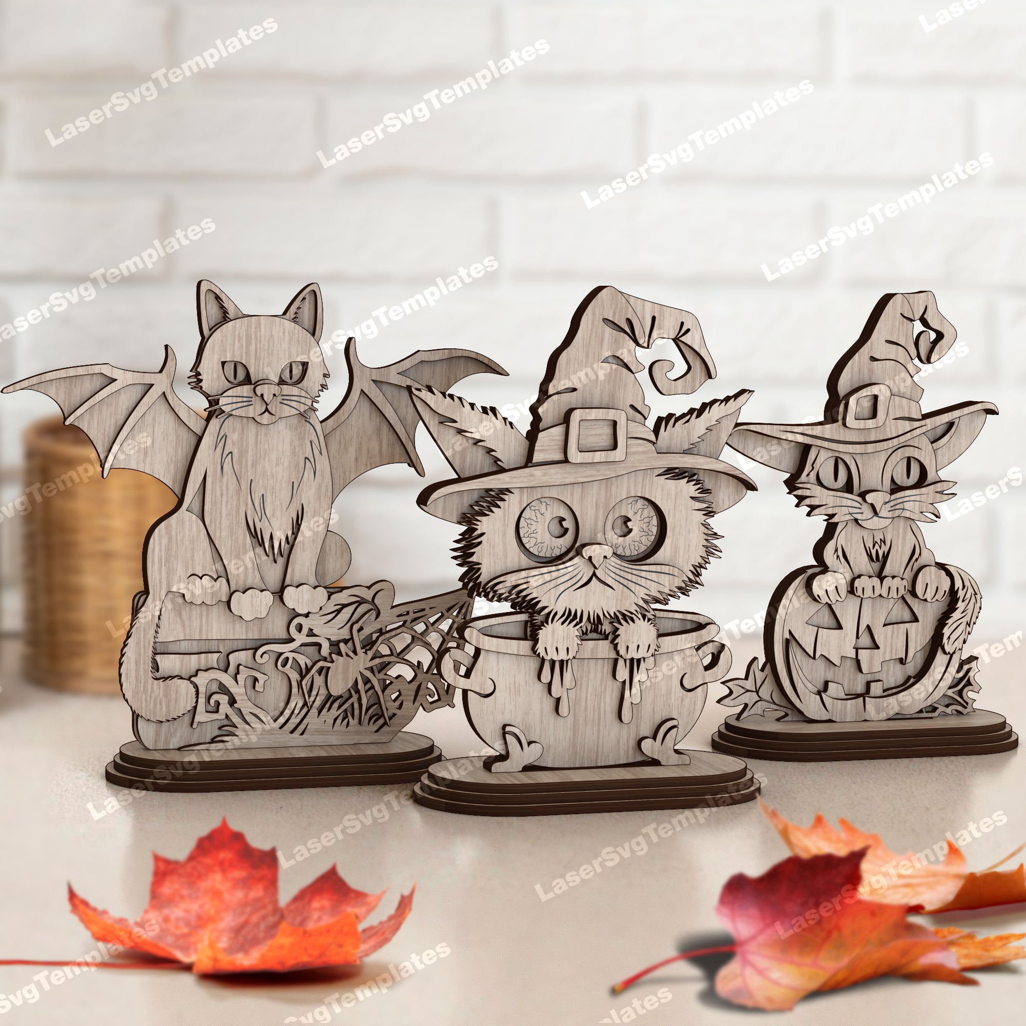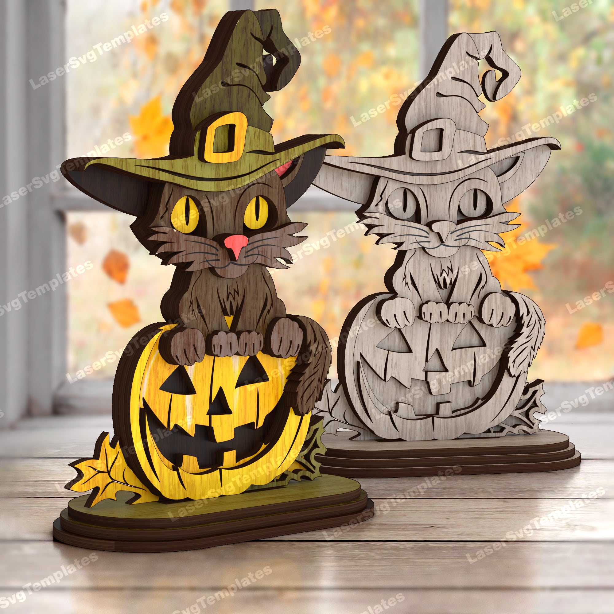 Halloween chats debout citrouille table décor laser coupé fichier svg