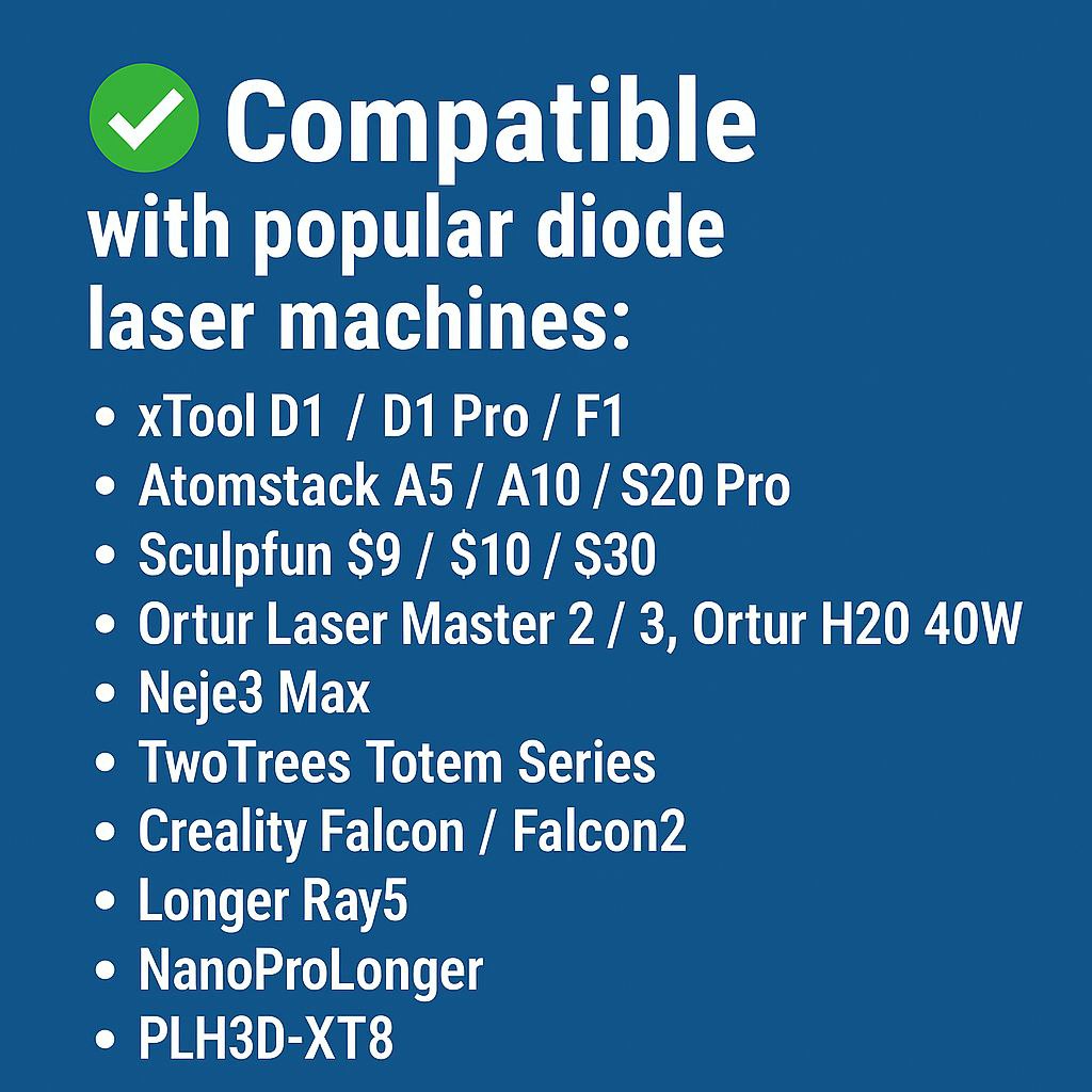 This digital guide includes a curated collection of ready-to-use materials and settings for diode laser machines, fully optimized for LightBurn software. Whether you're engraving wood, acrylic, leather, or metal — this guide helps you get professional results faster.