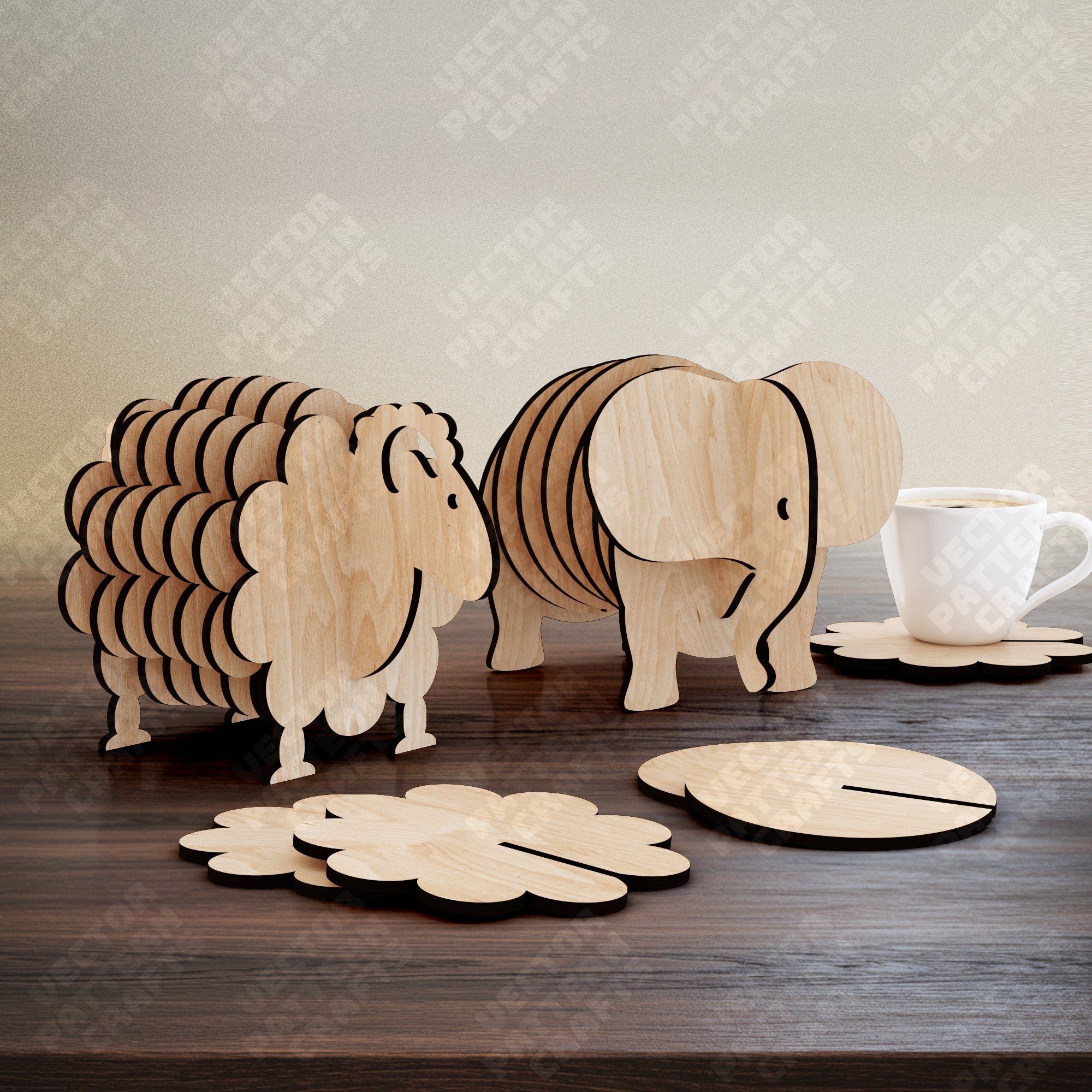 Animaux coasters 4 bundle fichier découpé au laser svg