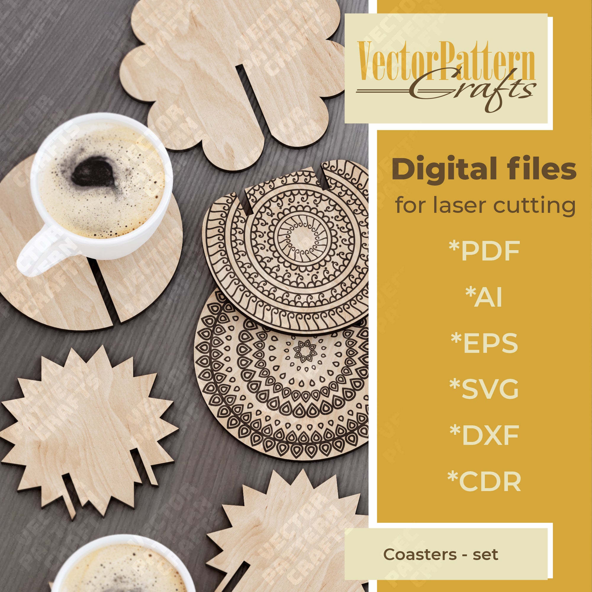 Vous recevrez les formats SVG, DXF, AI, EPS, CDR et PDF, compatibles avec la majorité des logiciels de découpe laser.