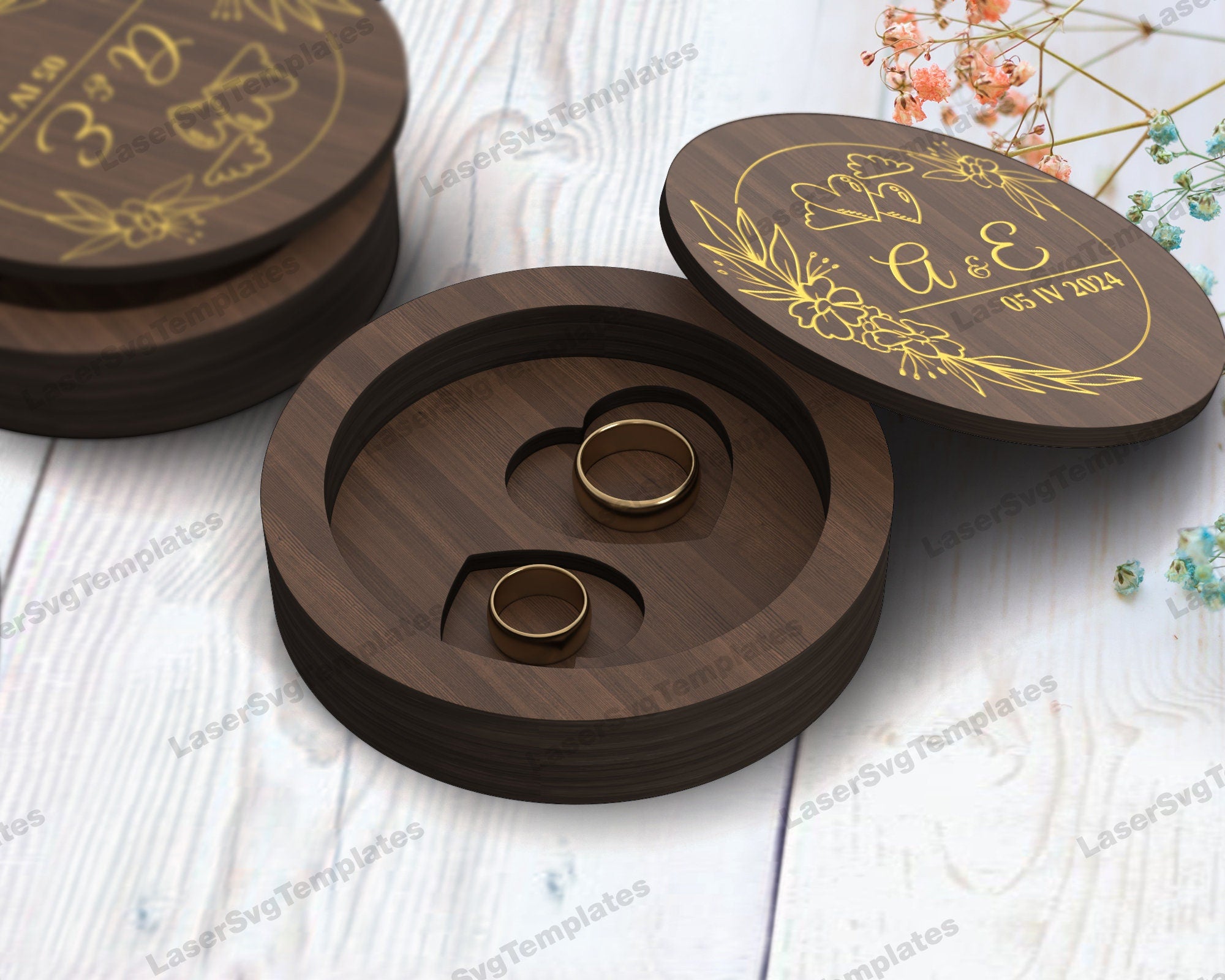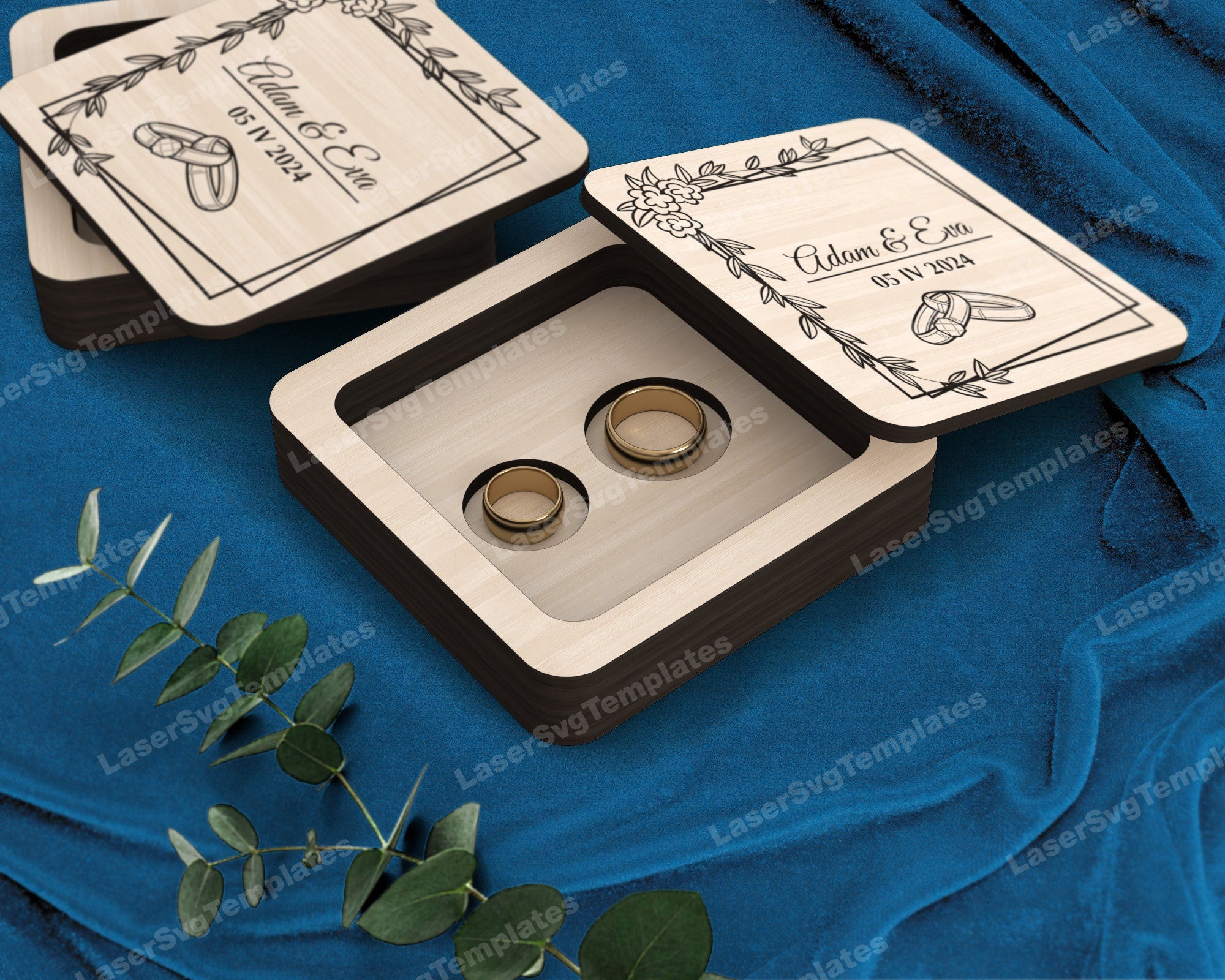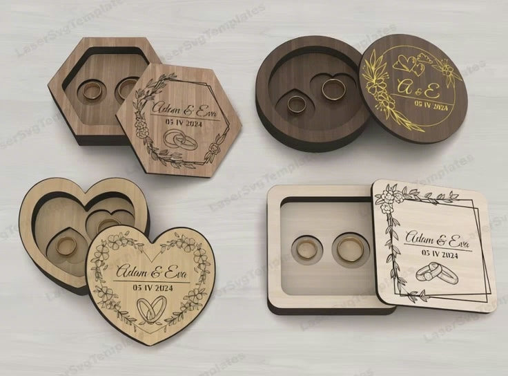Boîte en bois de bijoux en bois 4 packs laser coupé SVG Fichier