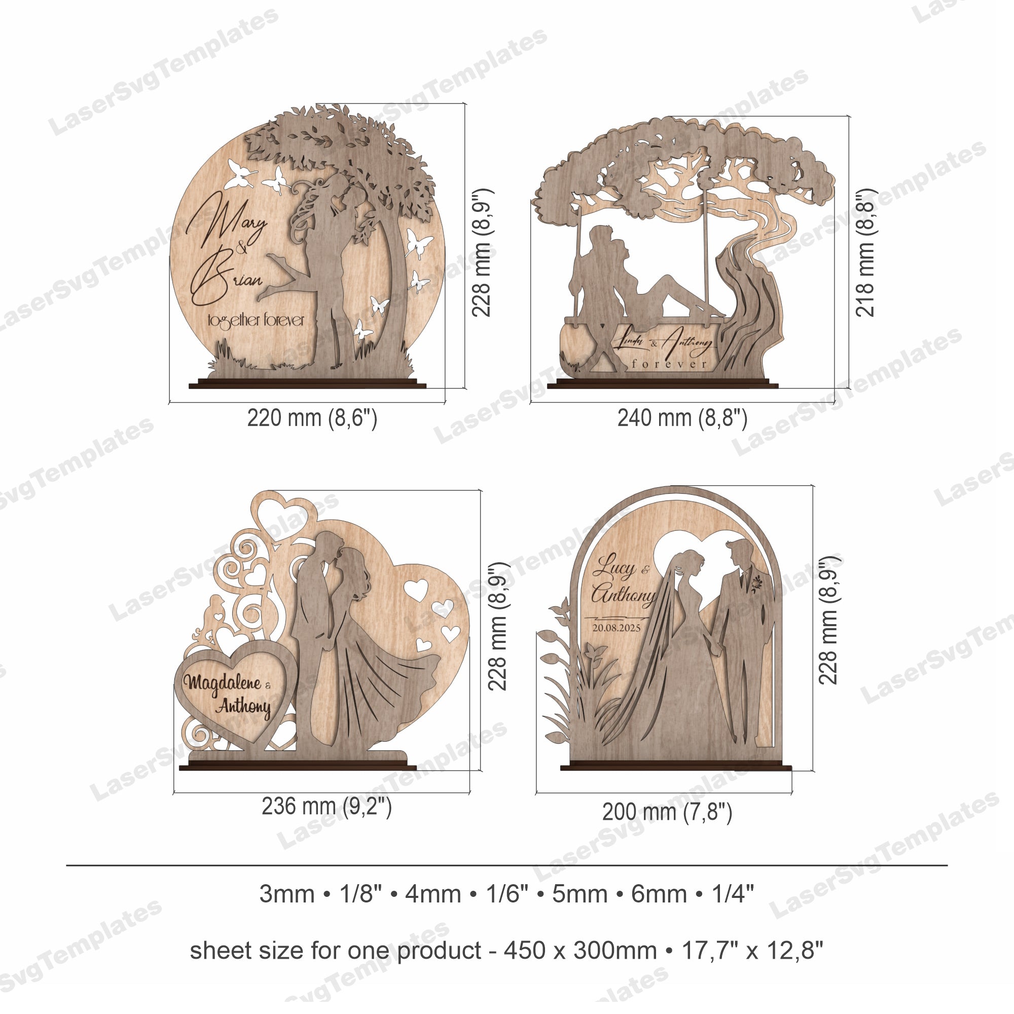Vous recevrez les formats SVG, DXF, AI, EPS, CDR et PDF, compatibles avec la majorité des logiciels de découpe laser.