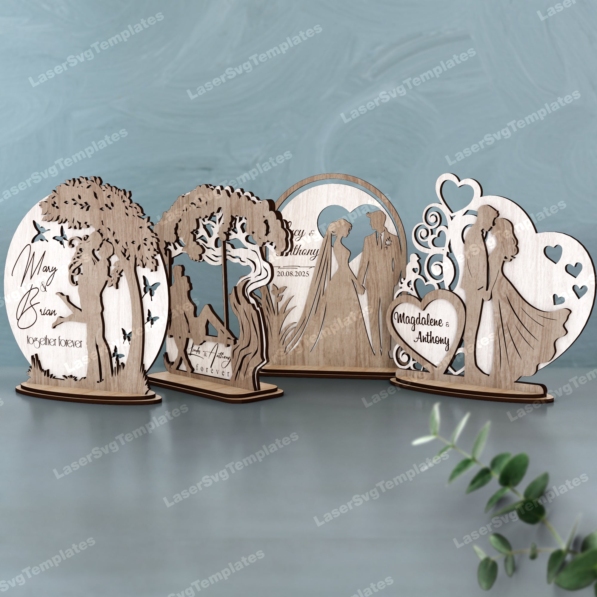 Numéros de table de mariage en bois 5 bundle fichier svg découpé au laser