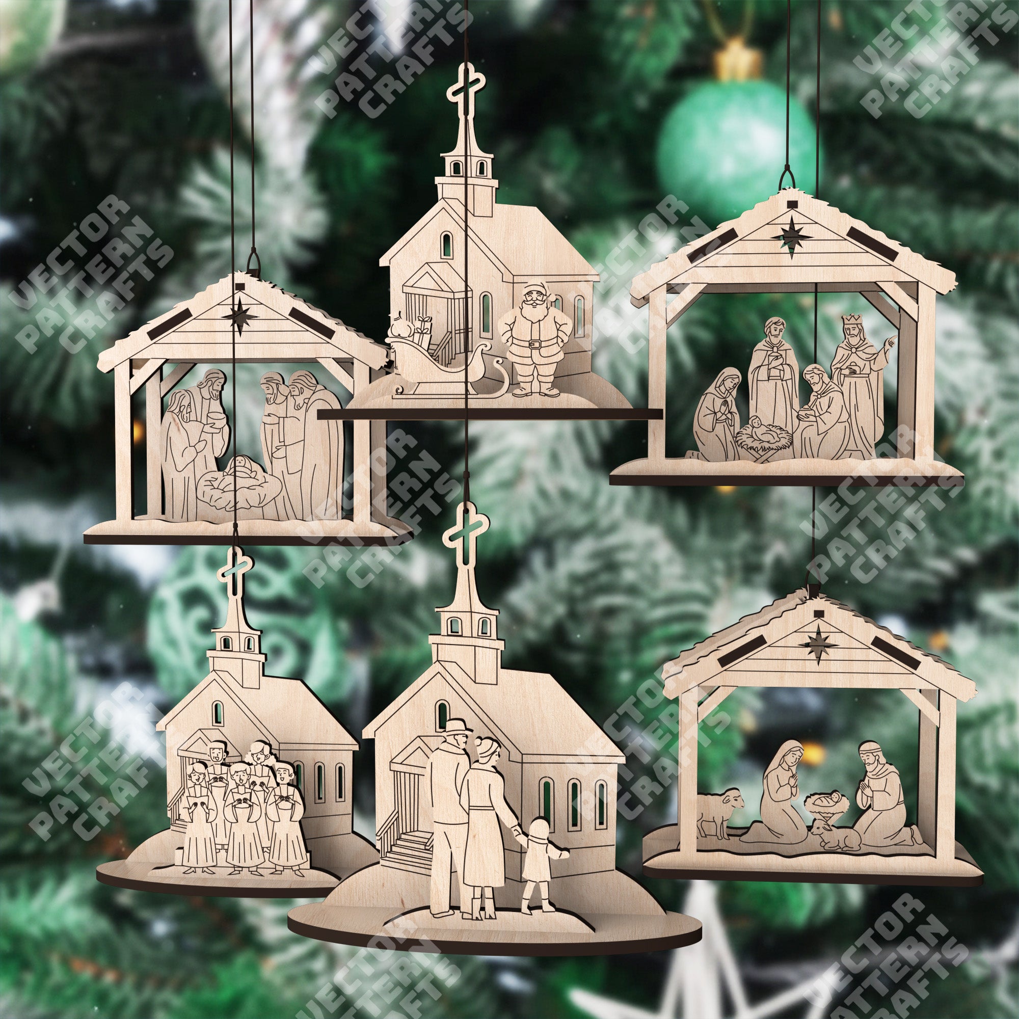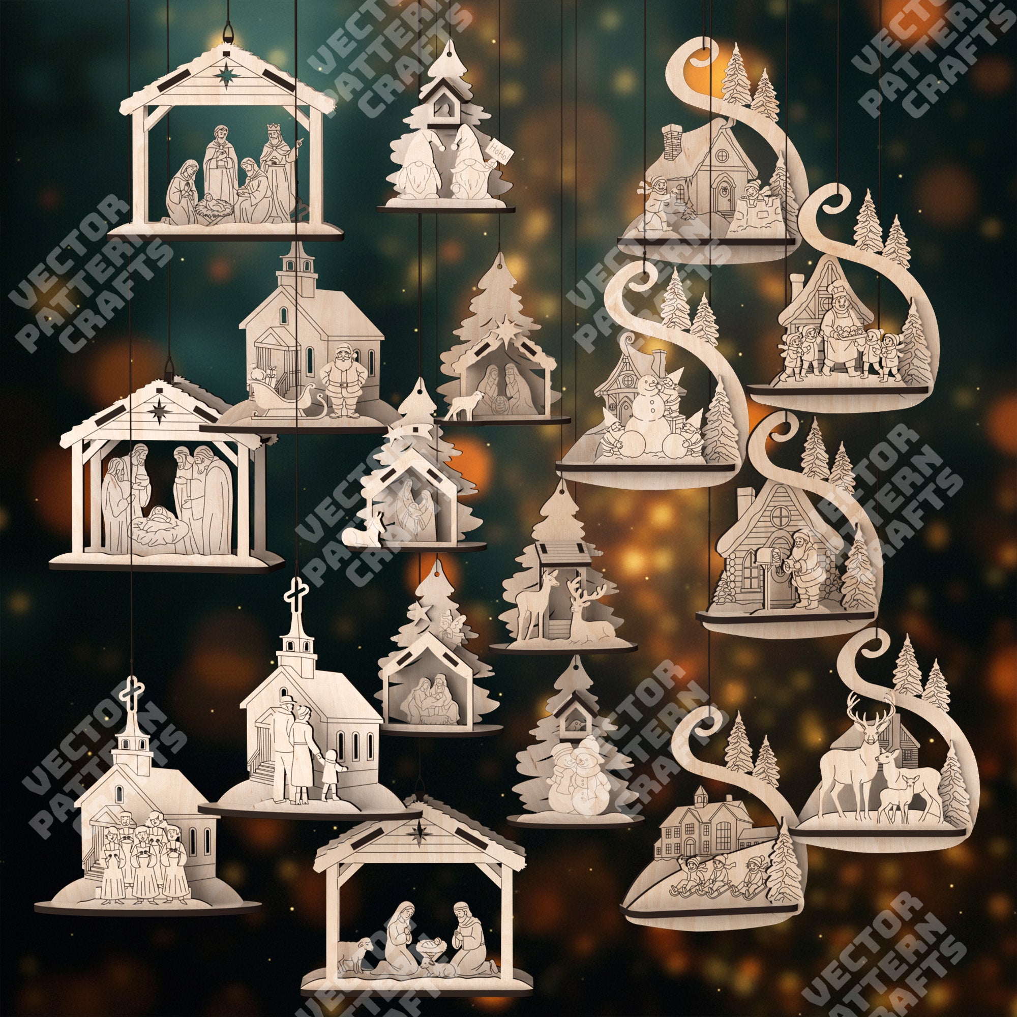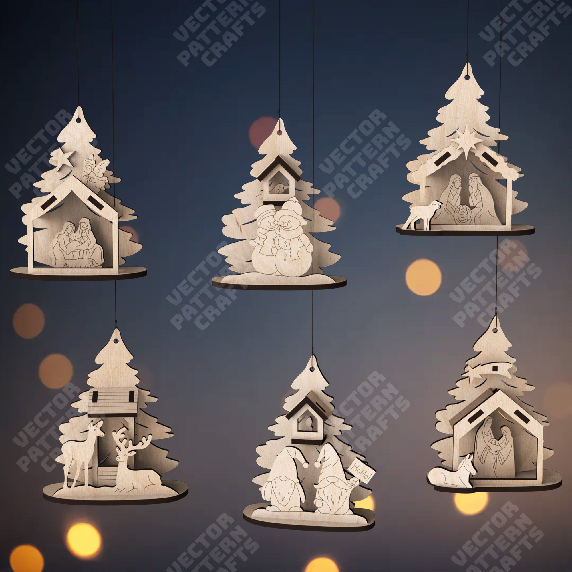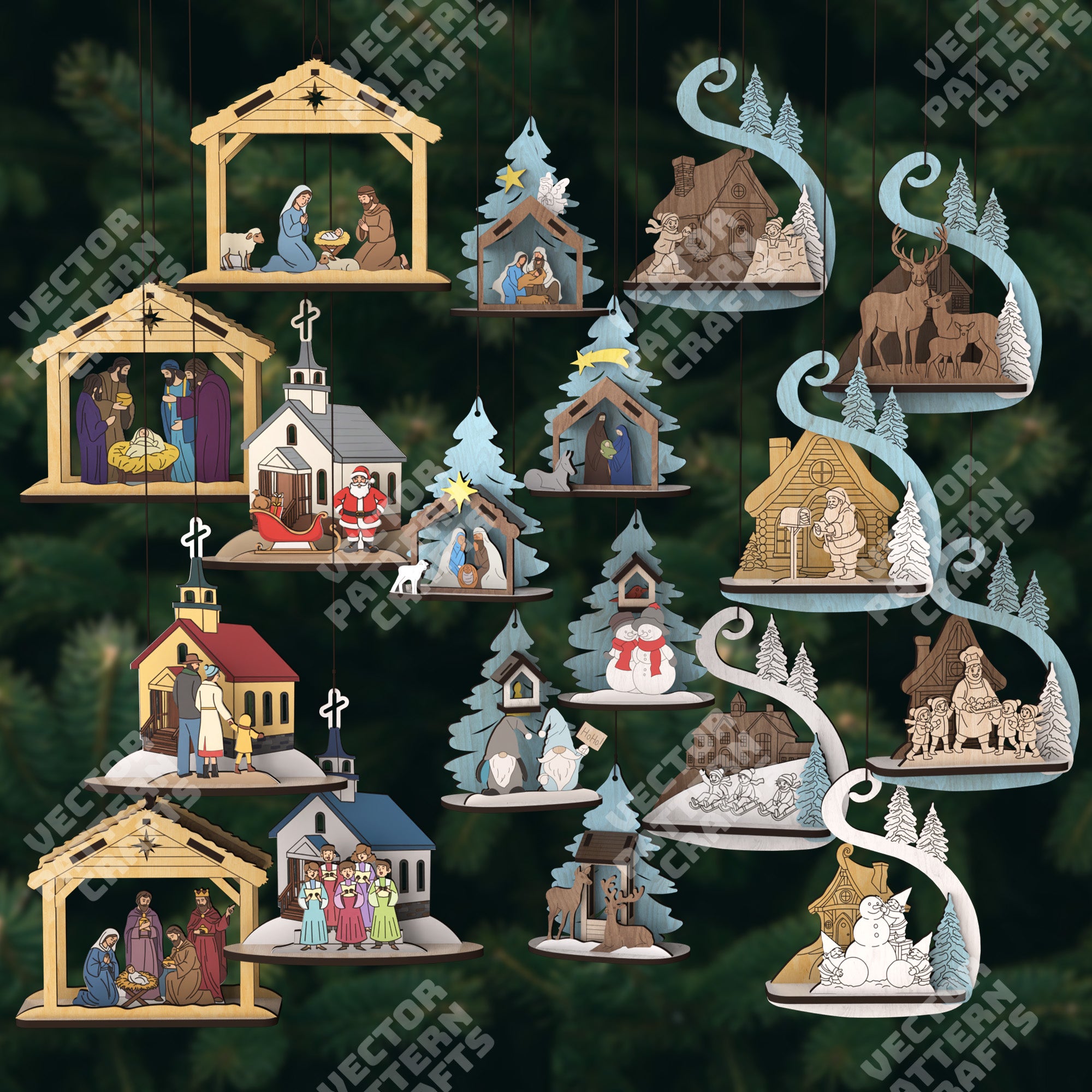 3D Christmas tree ornaments 18 bundle laser cut svg file