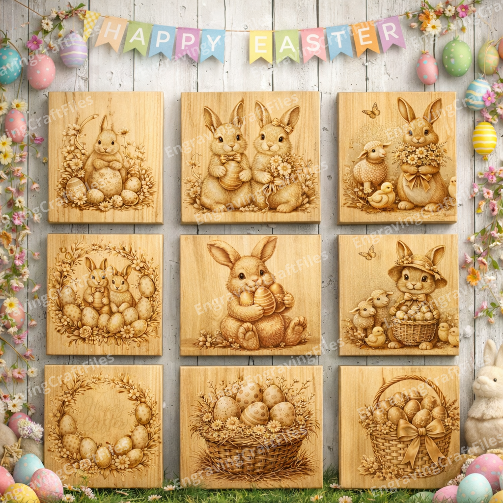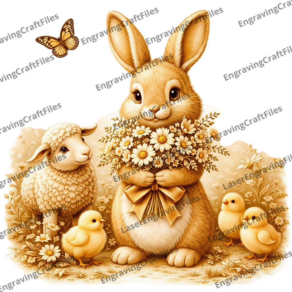 Fichier svg découpé au laser de décor multicouche de lapin de Pâques