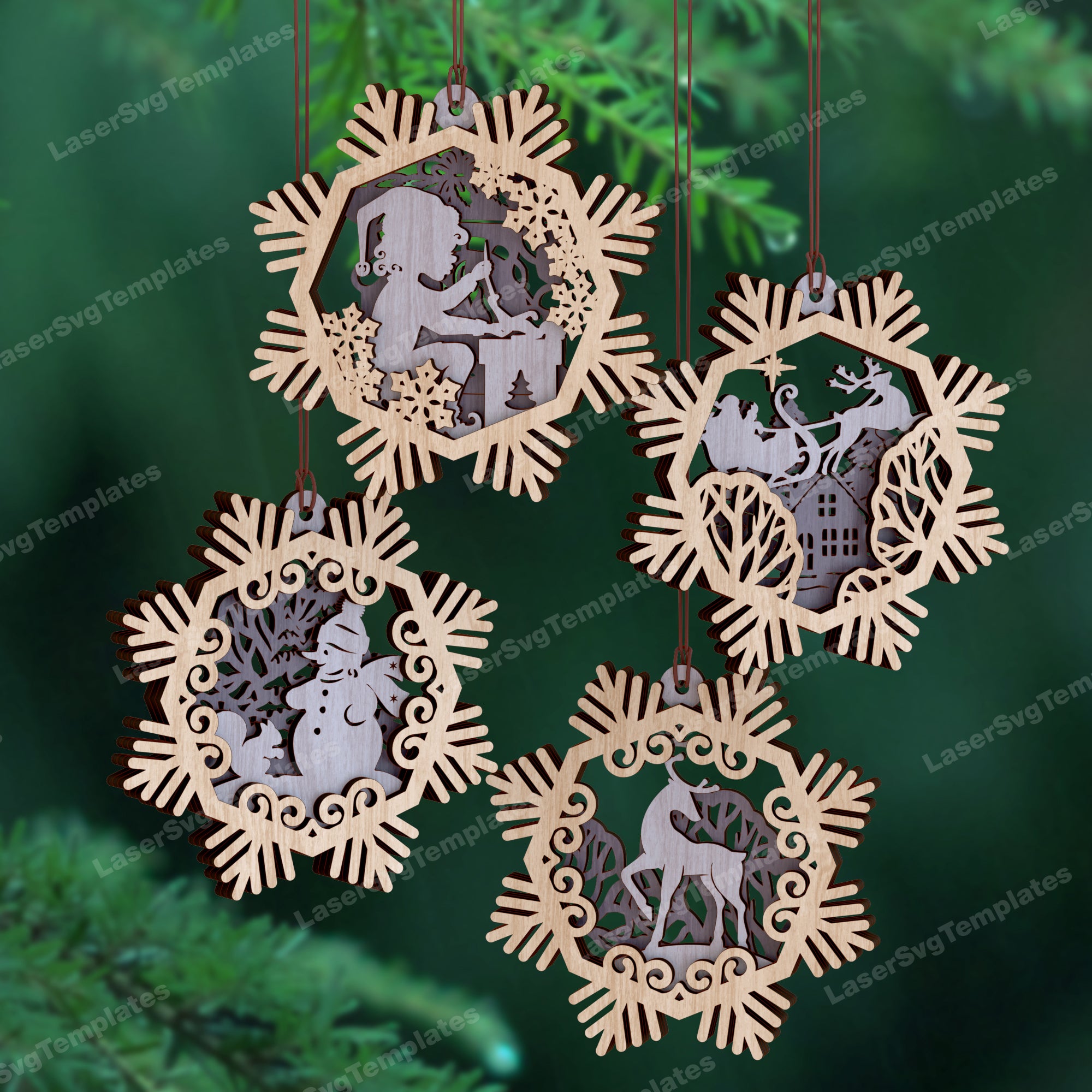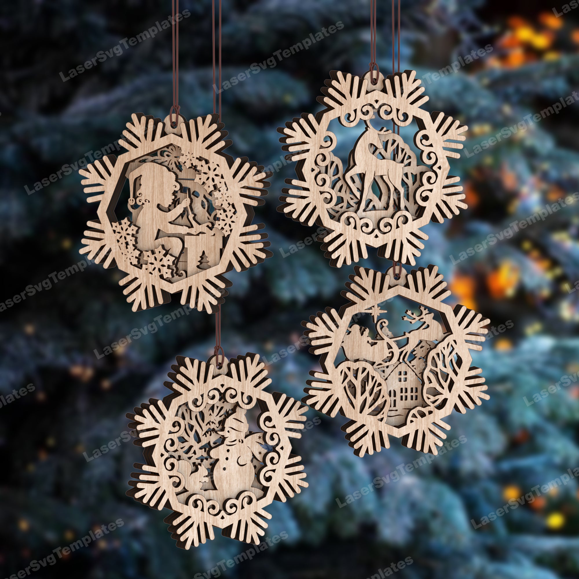- Multilleuse Christmas Snowflakes Balls Ornements SVG Laser Cut Fichier