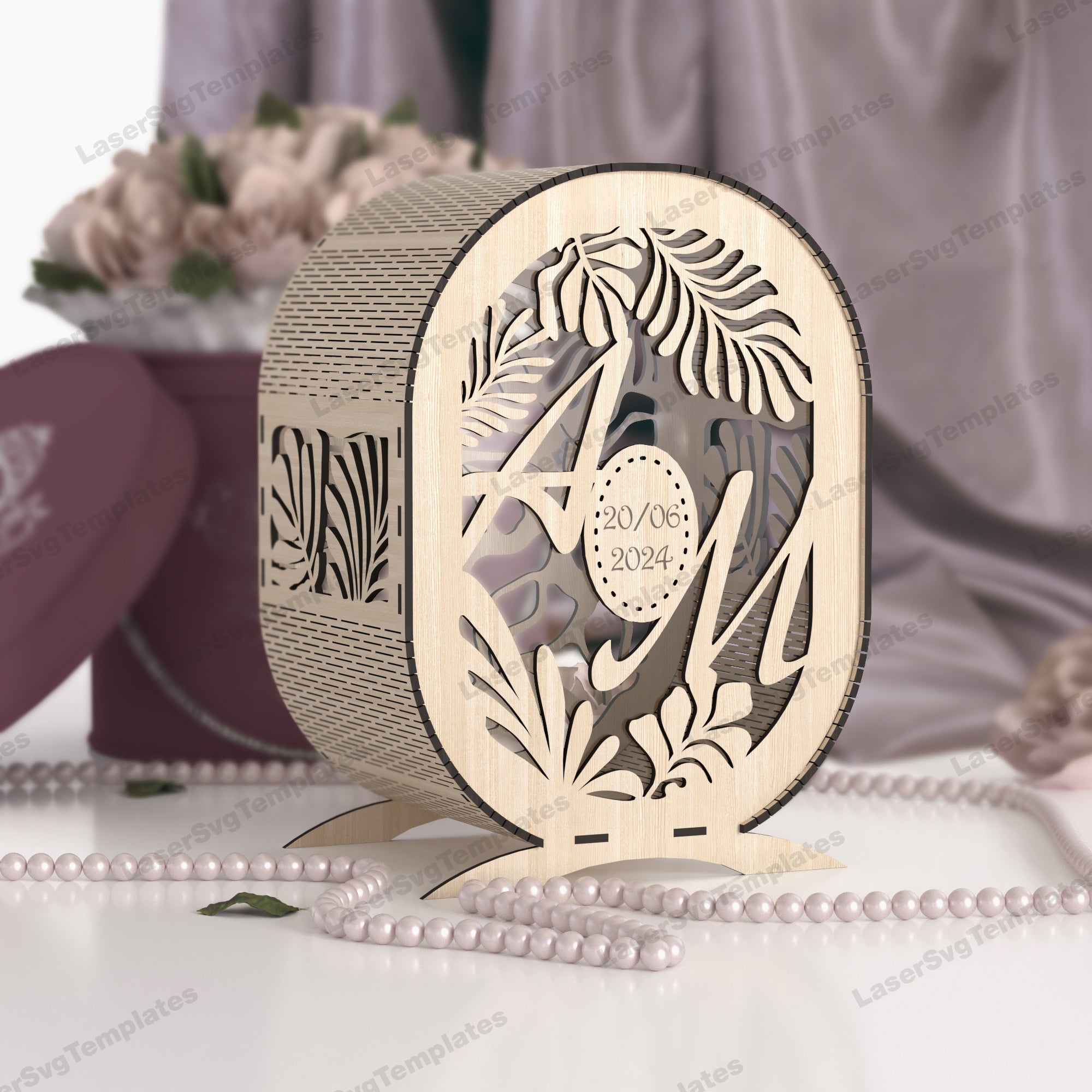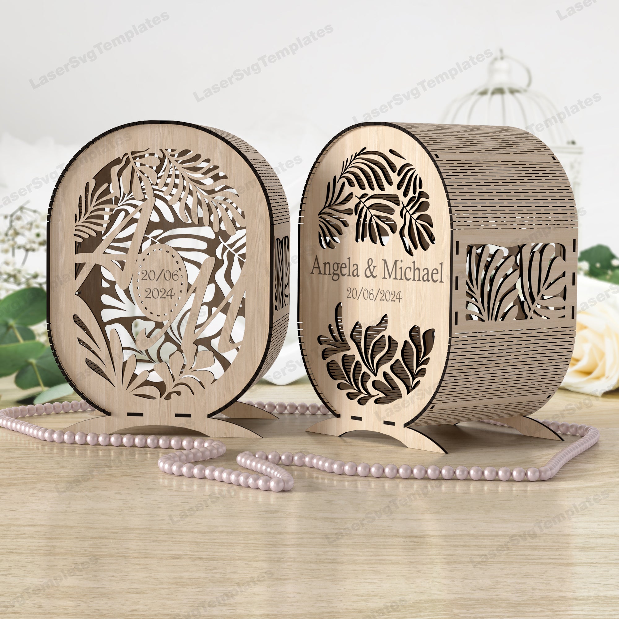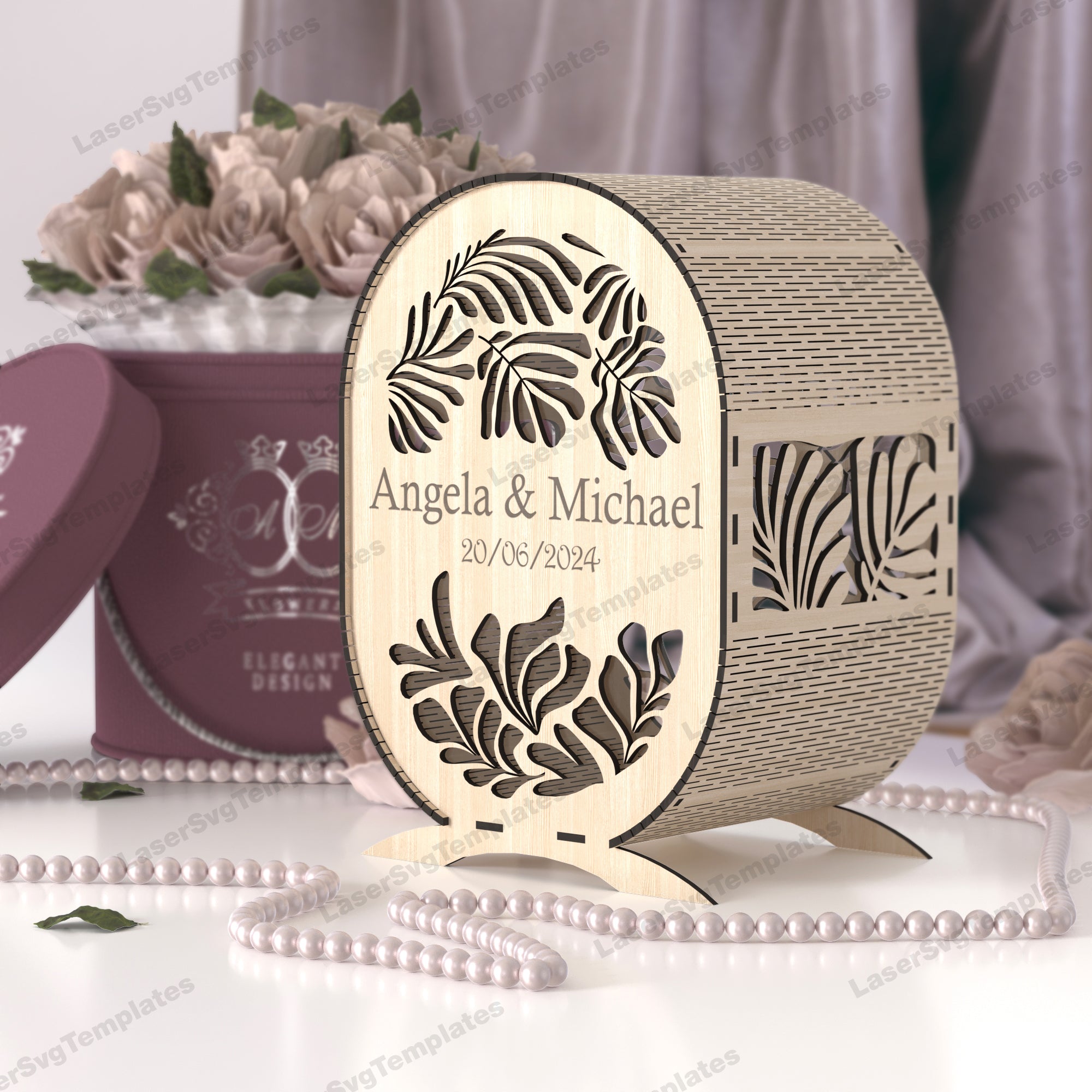 - Boîte à cartes-cadeaux de mariage floral en bois Fichier SVG coupé au laser
