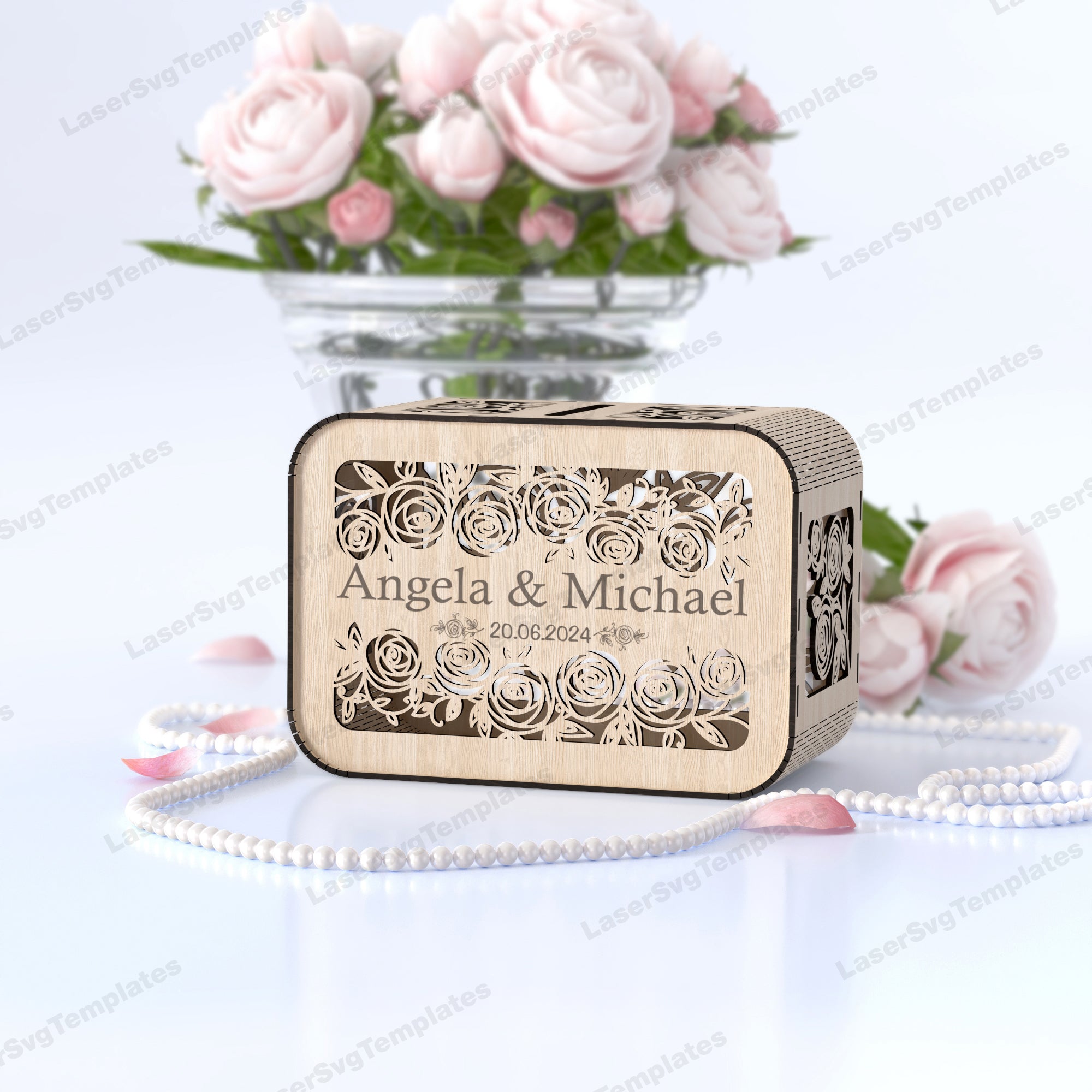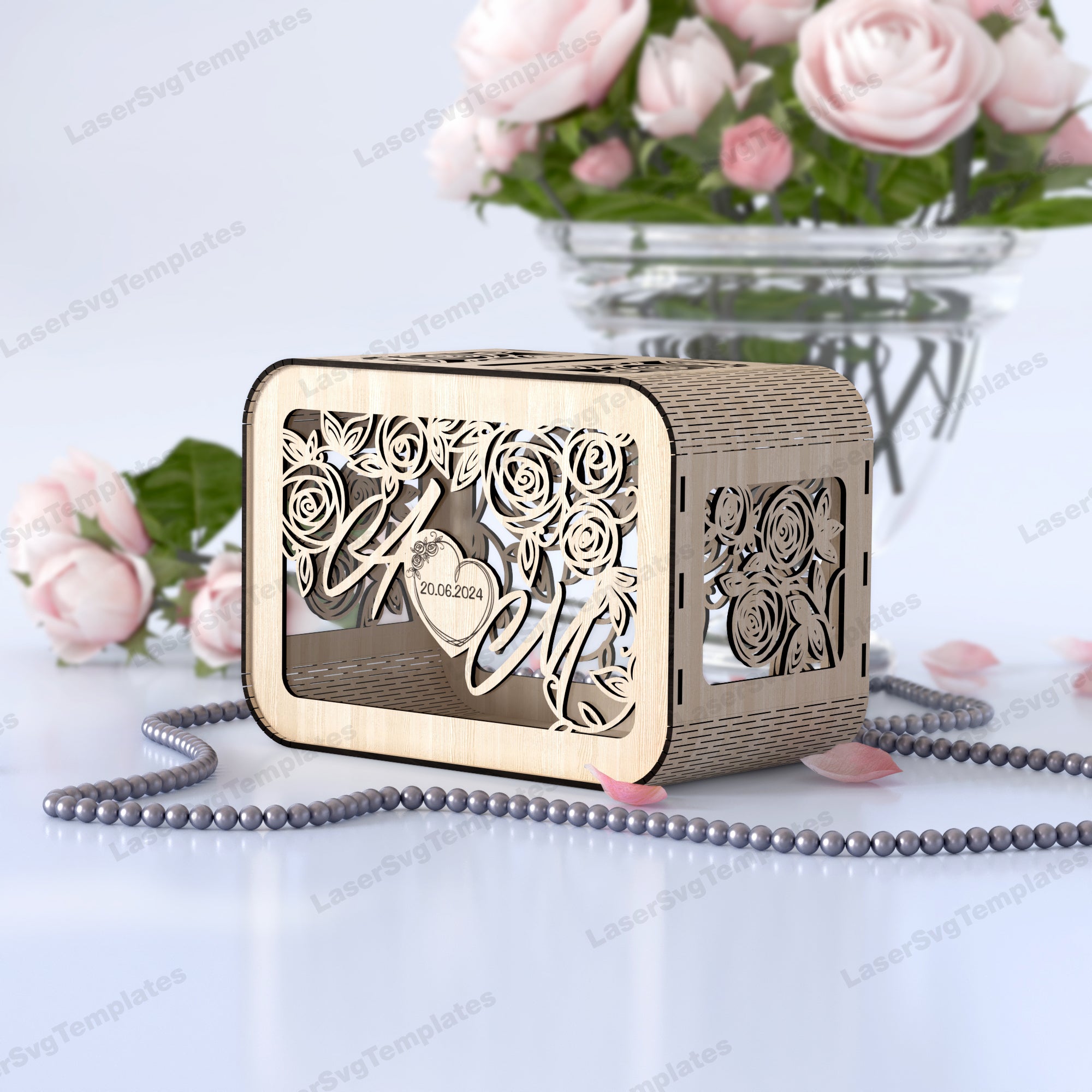 Boîte de cartes de mariage en rose rectangulaire en bois Fichier SVG coupé au laser