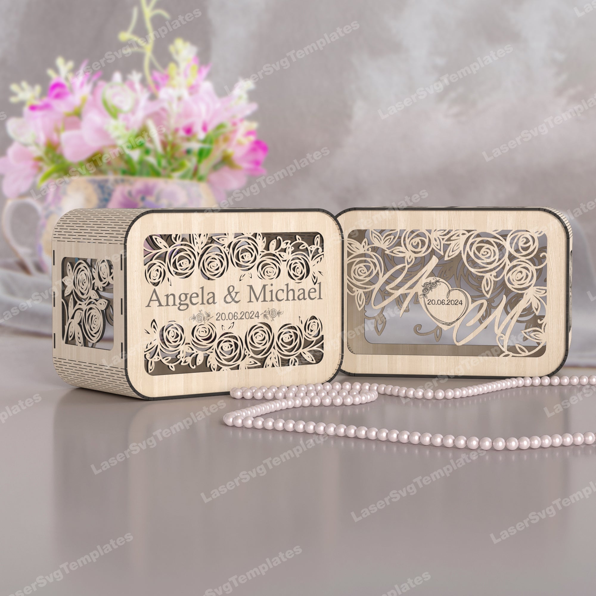 - Boîte de cartes de mariage en rose rectangulaire en bois Fichier SVG coupé au laser