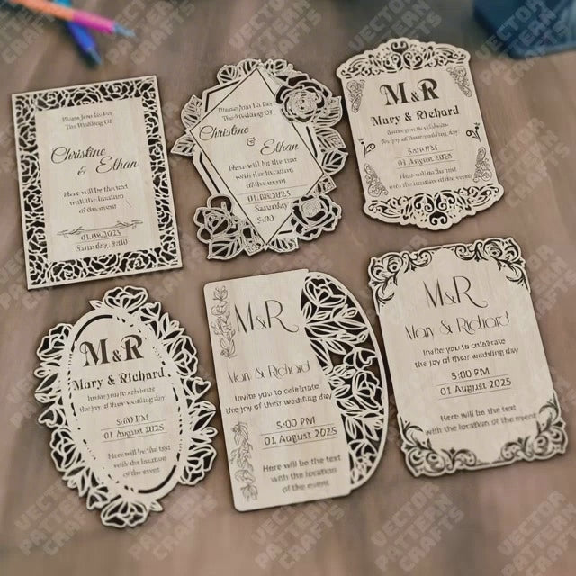 Cartes d’invitation de mariage découpées au laser 6 fichiers de découpe svg