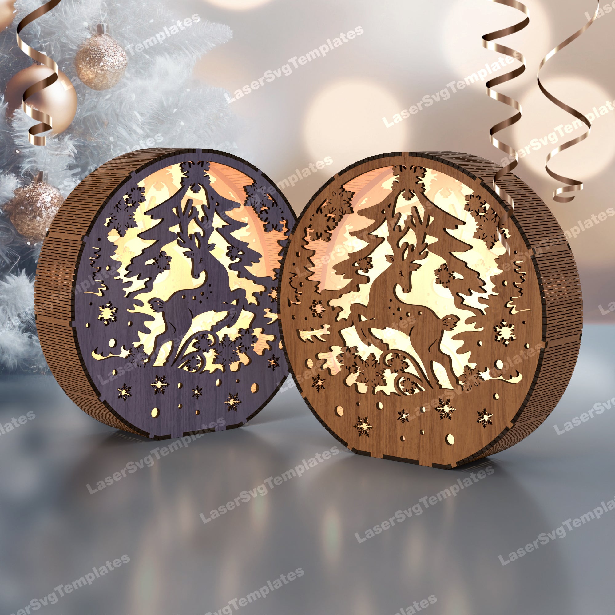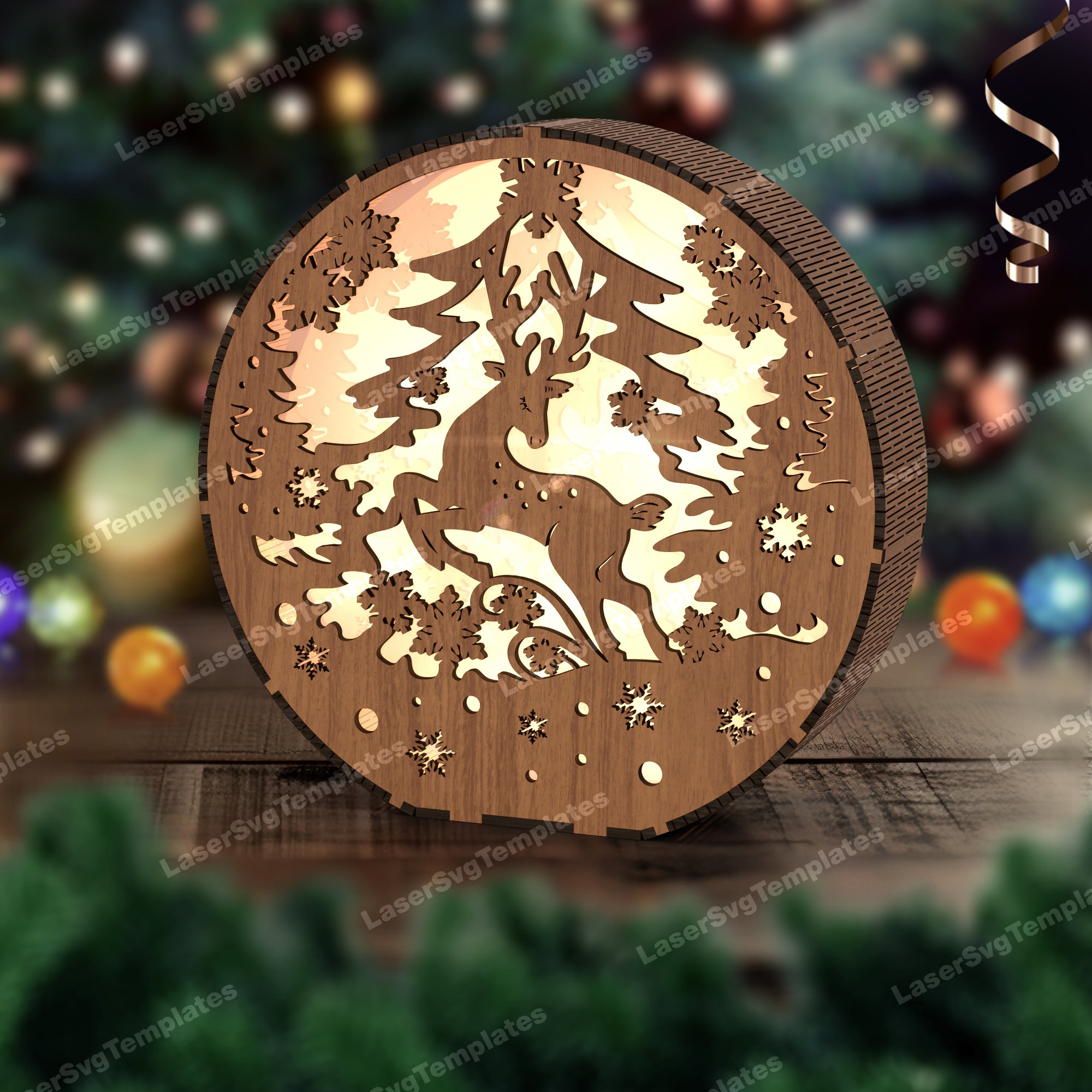 Christmas Rendeer Table Night Lamp Laser Cut SVG Fichier