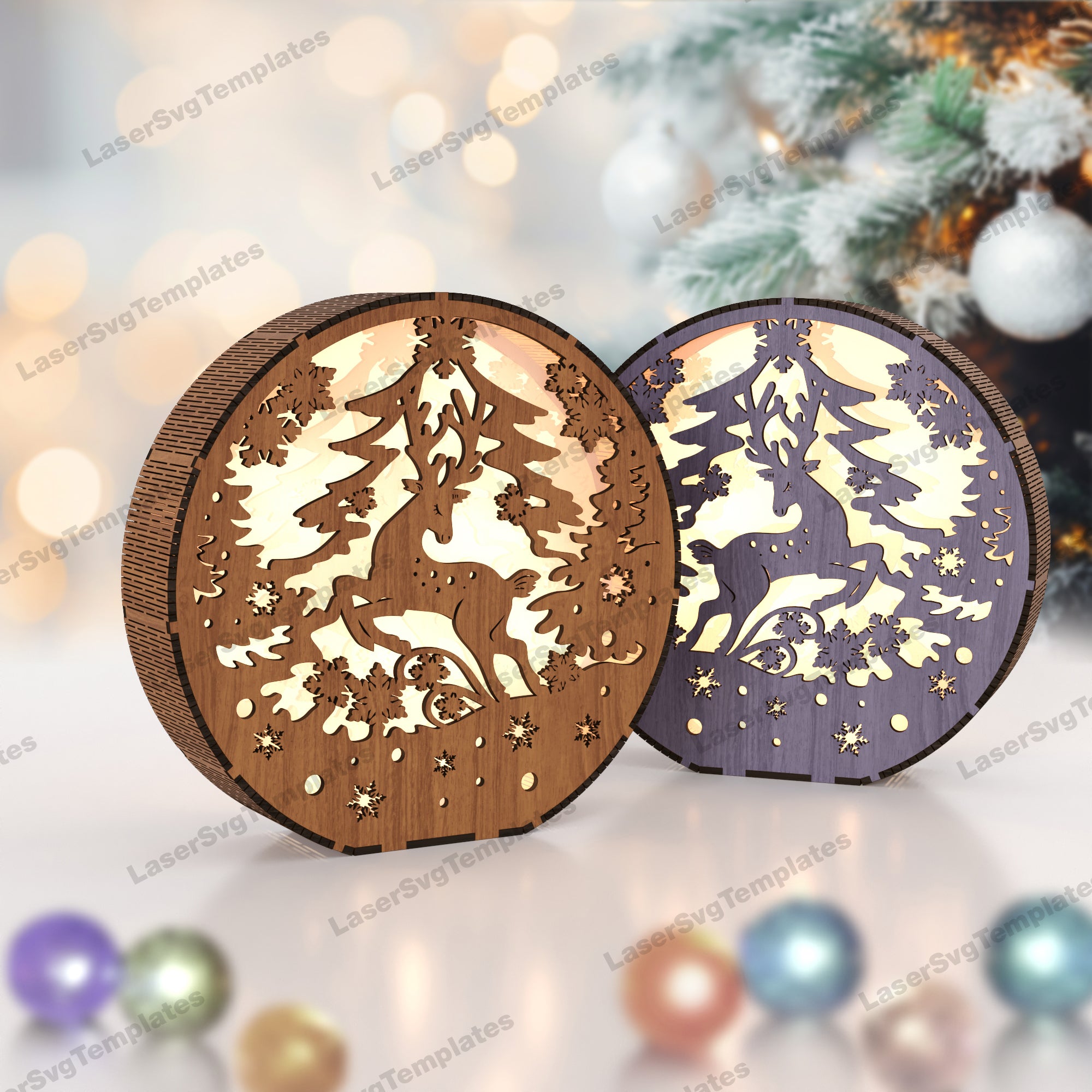 - Christmas Reindeer Table Night Lamp Laser Cut SVG Fichier