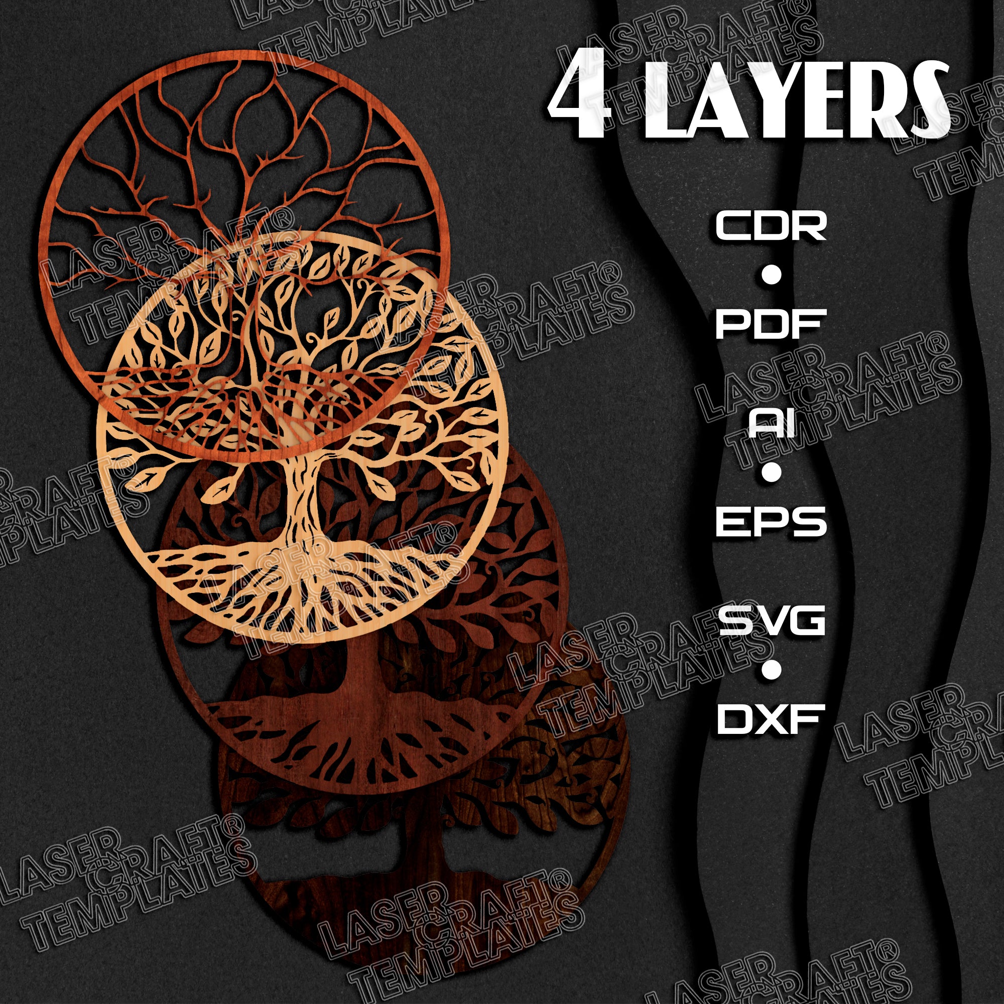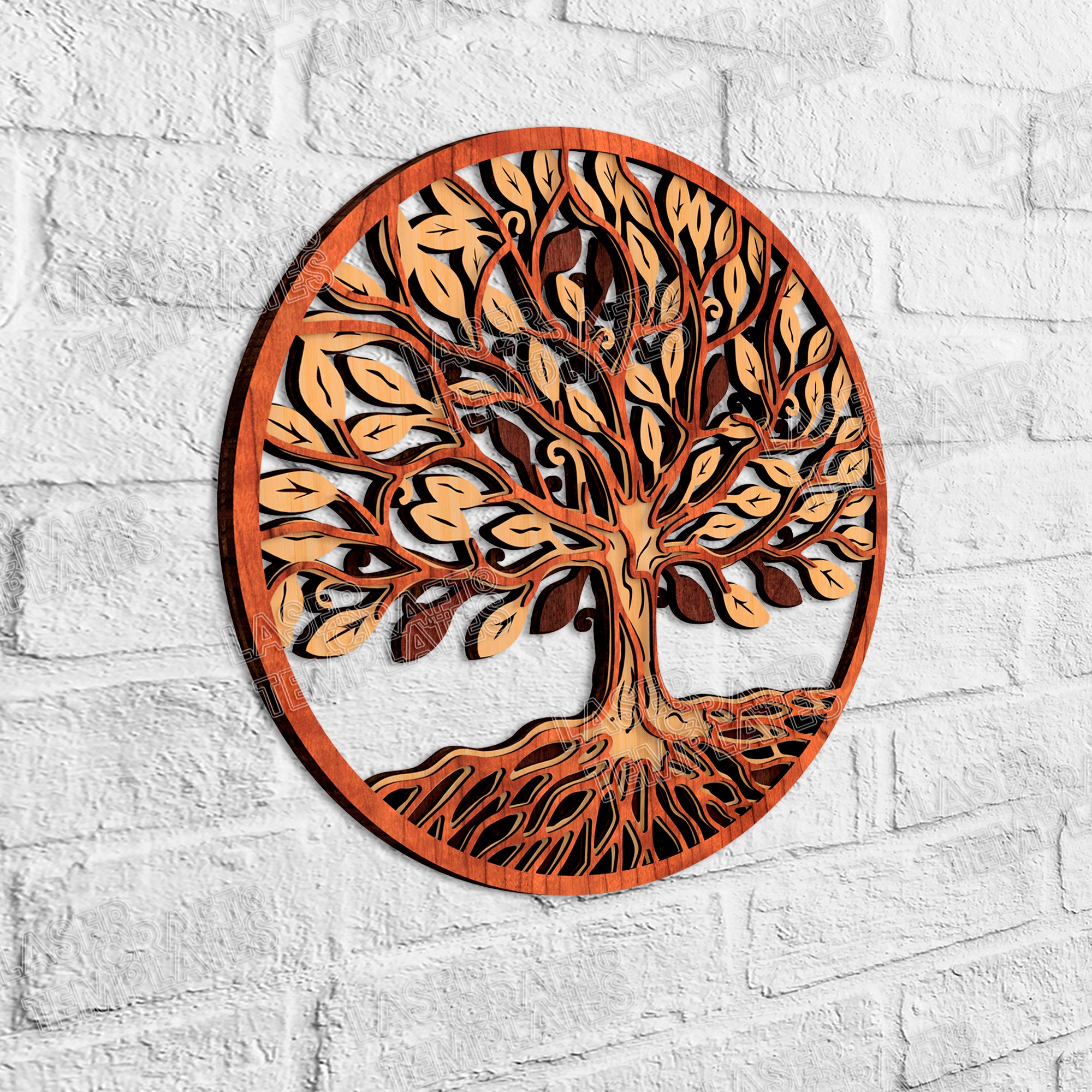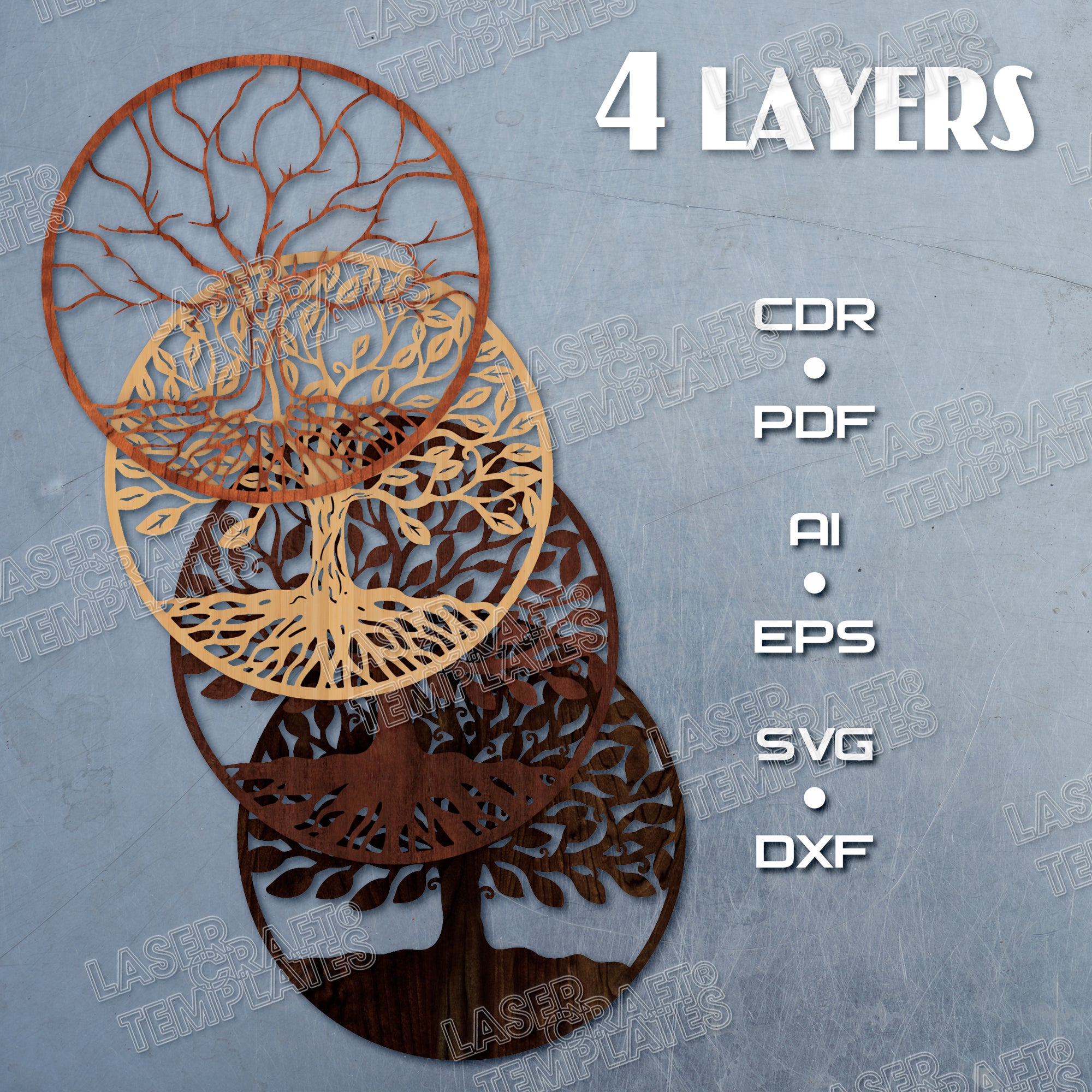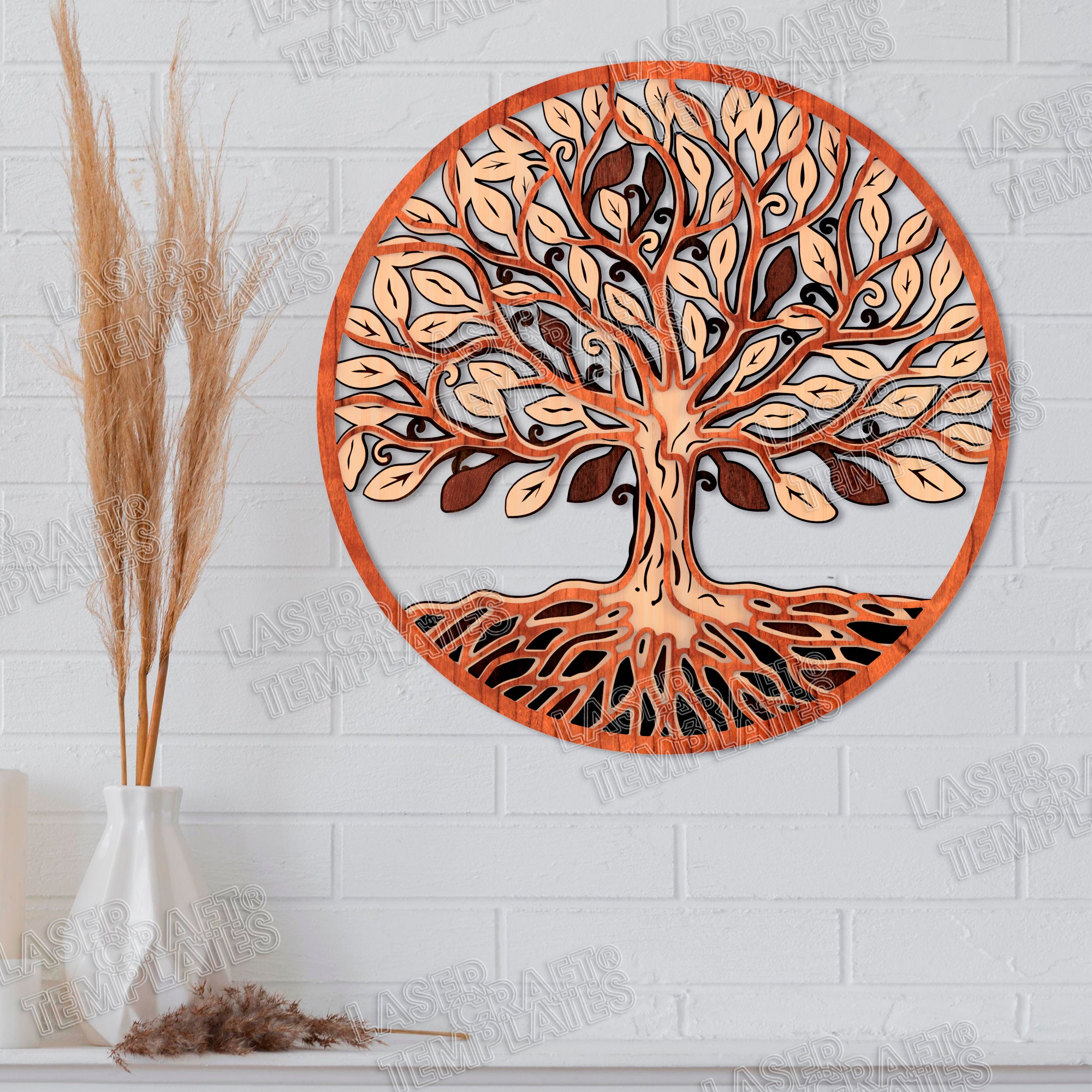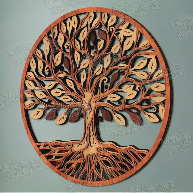Fichier svg d’art mural d’arbre de vie en couches découpé au laser