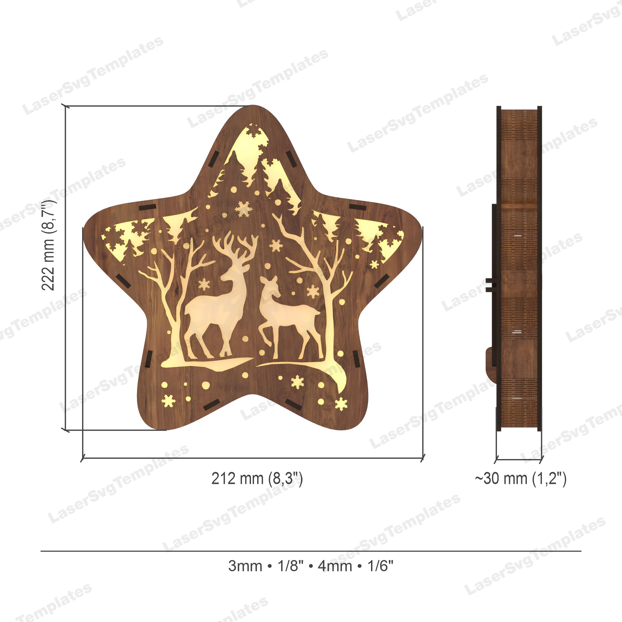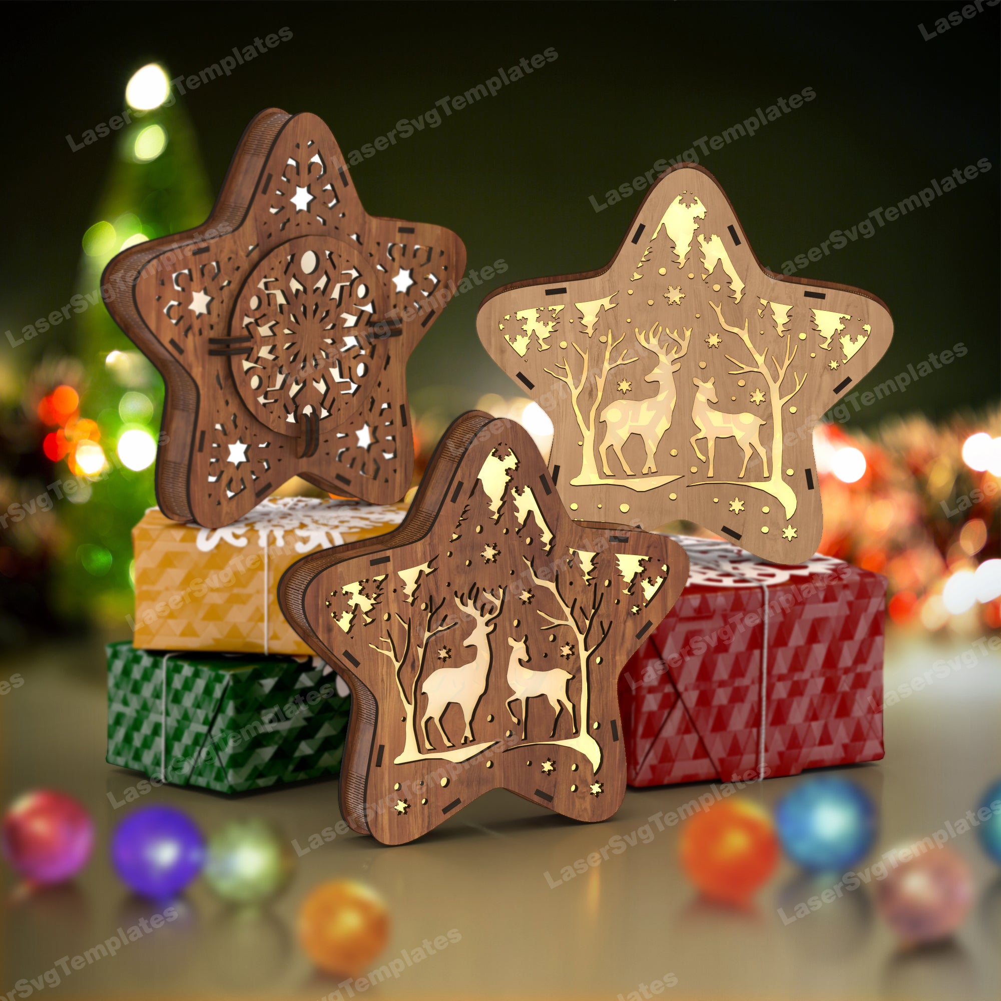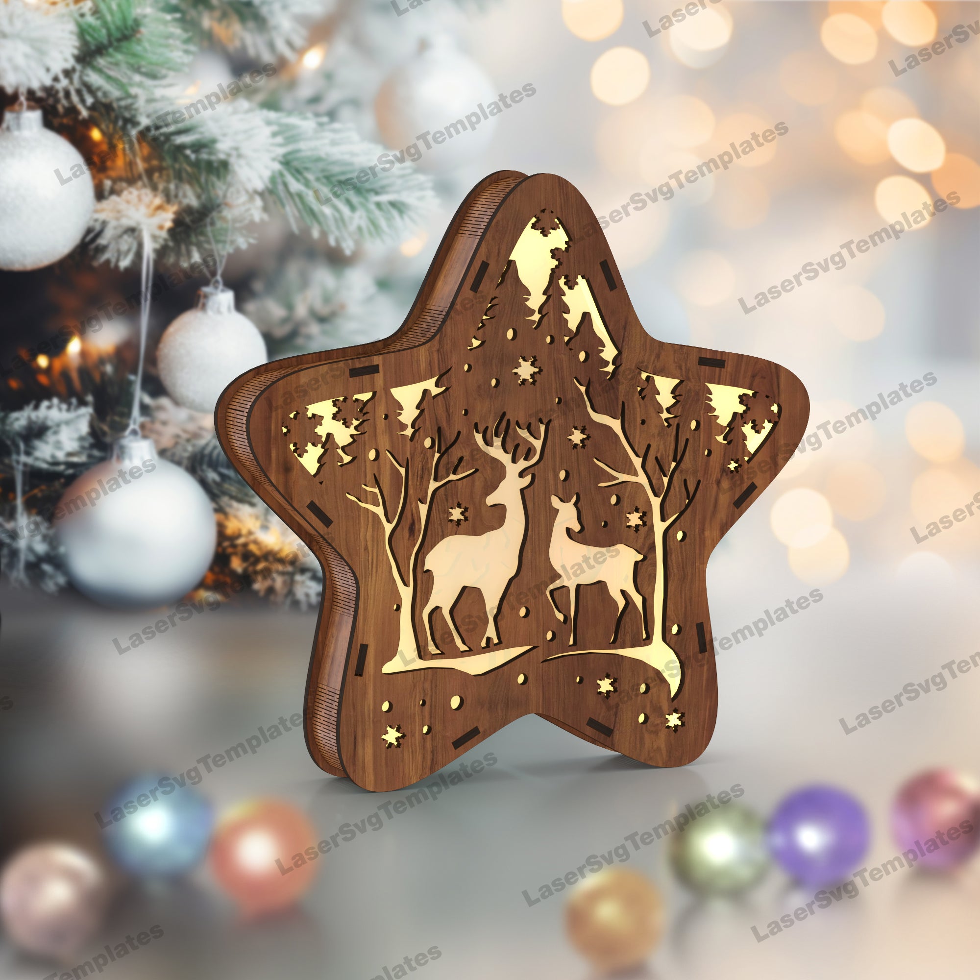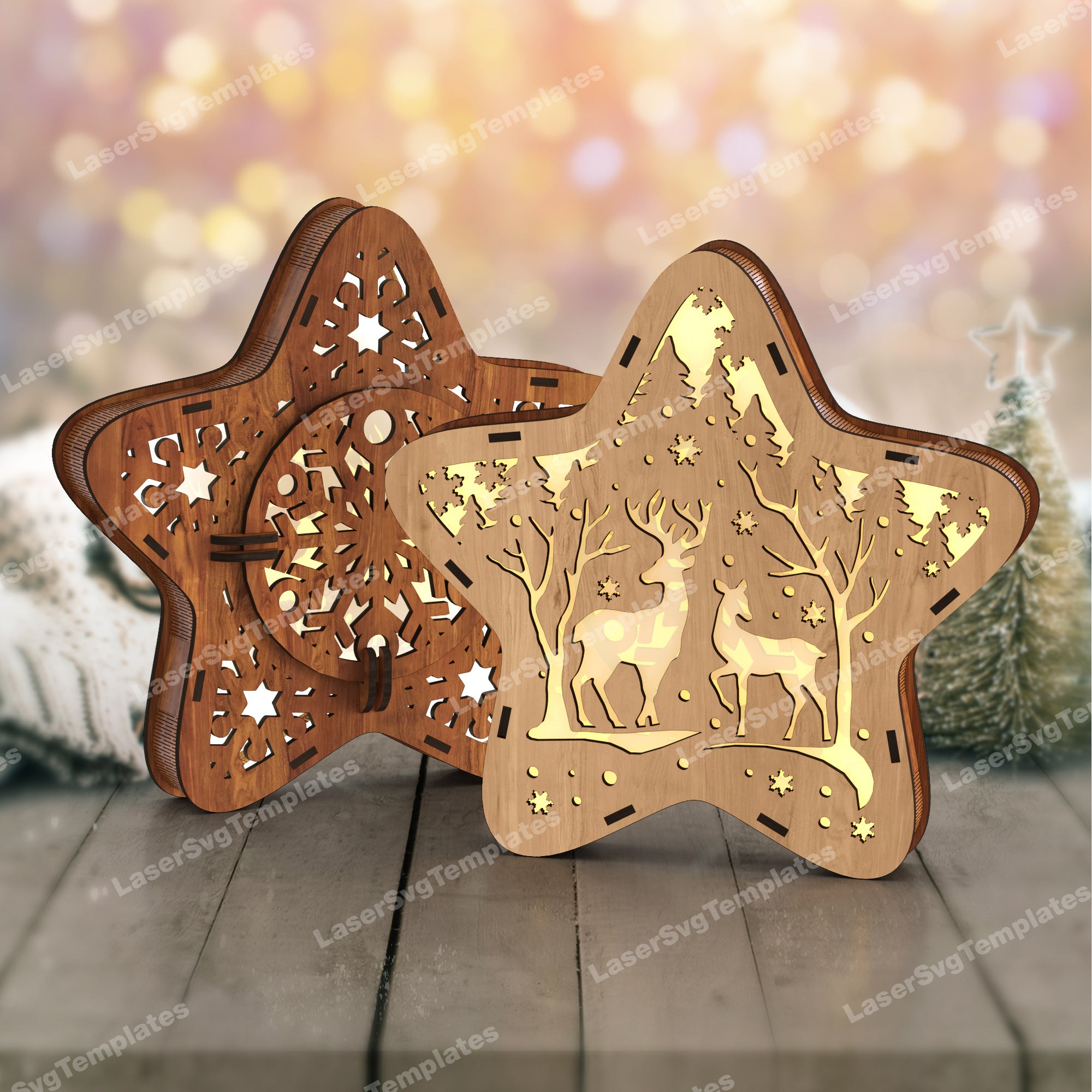 Laser Cut Christmas Rendeer Star Table Table Lampe SVG