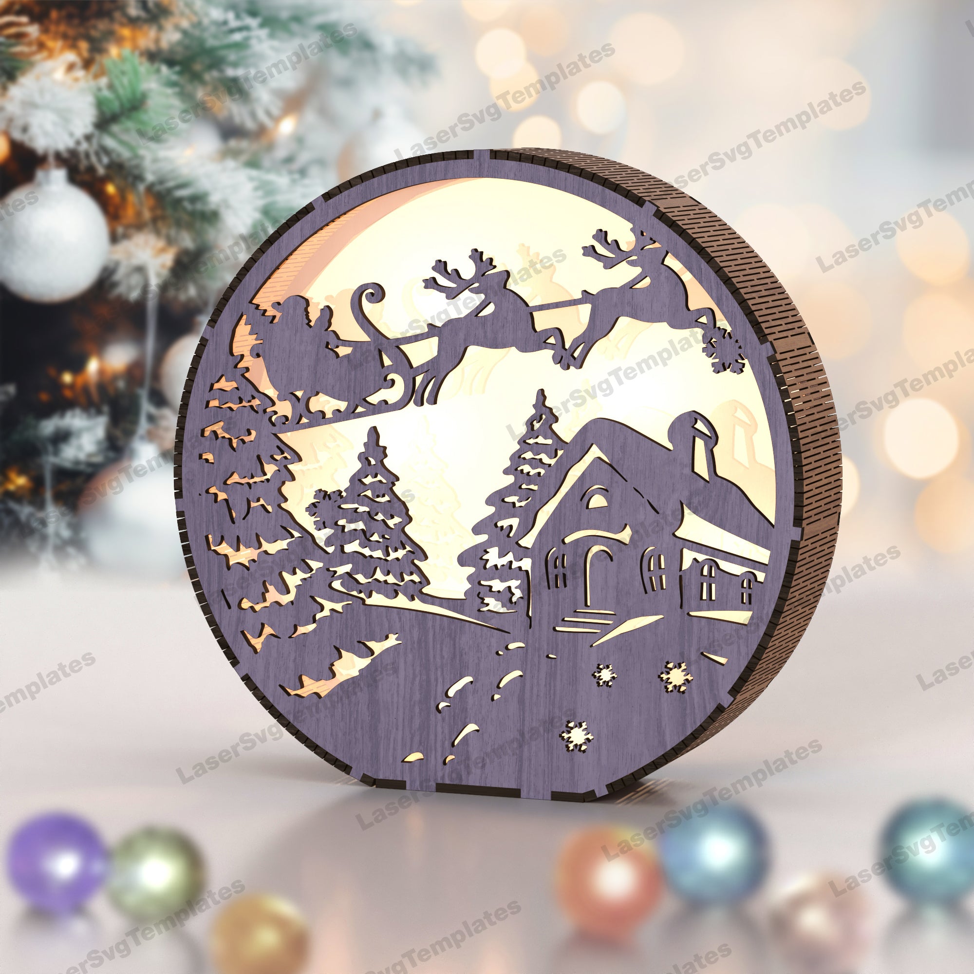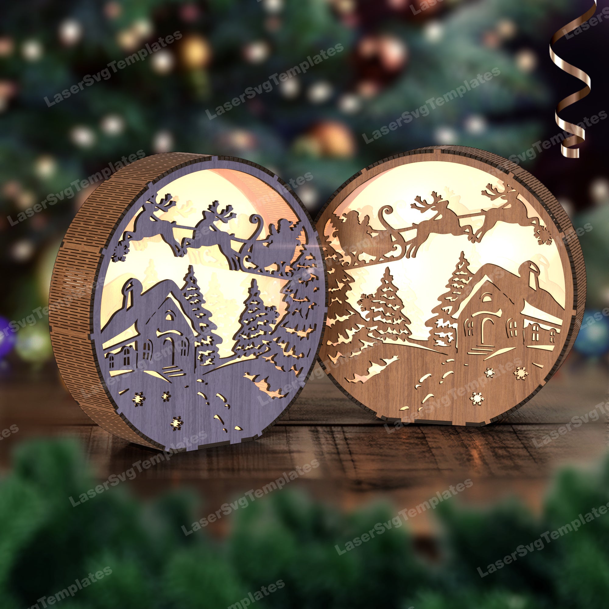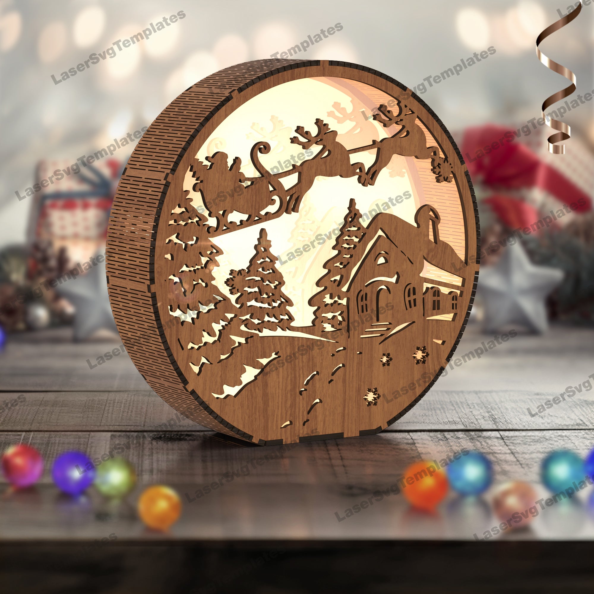 - Laser Cut Christmas Santa Rendeer Table Table Lamp SVG Fichier