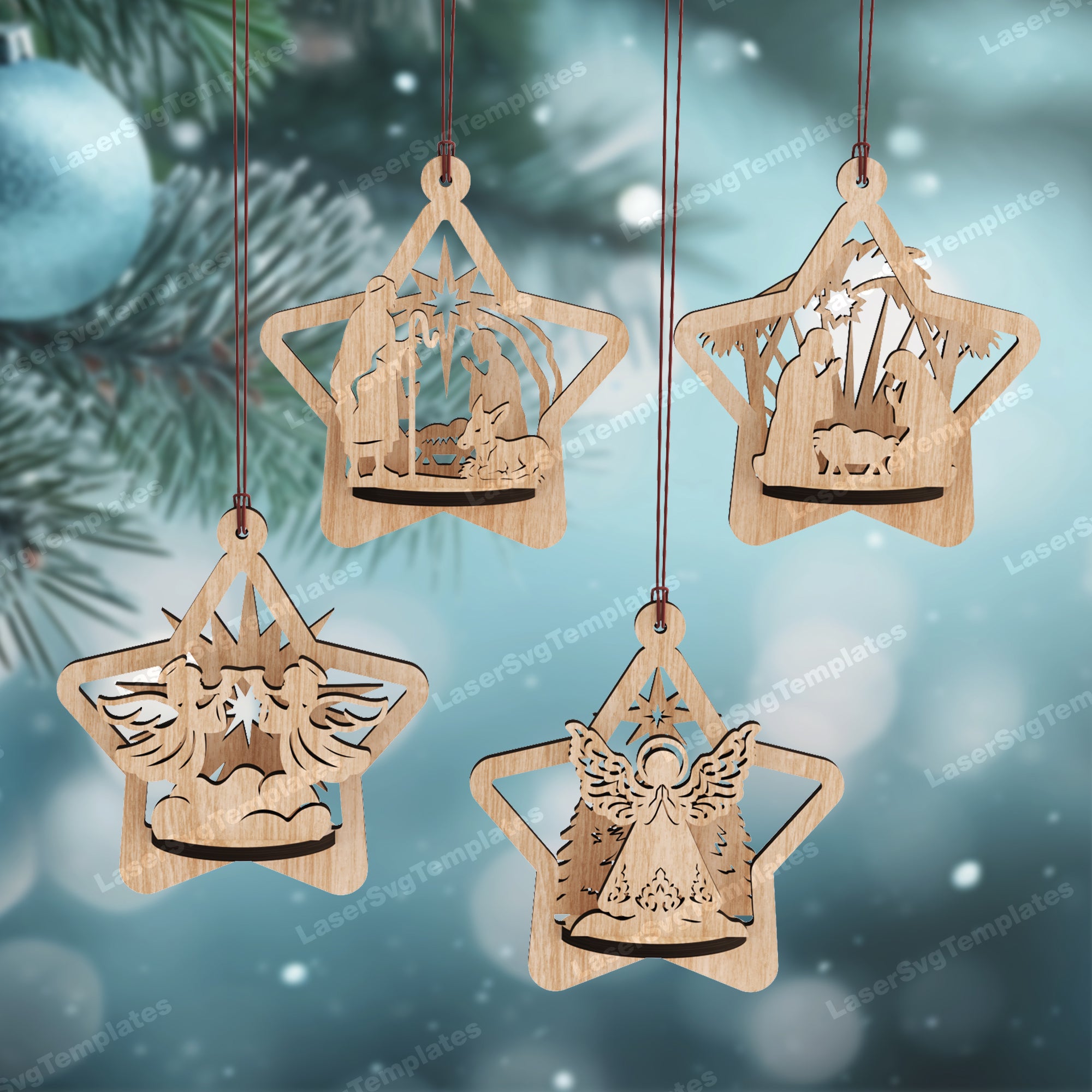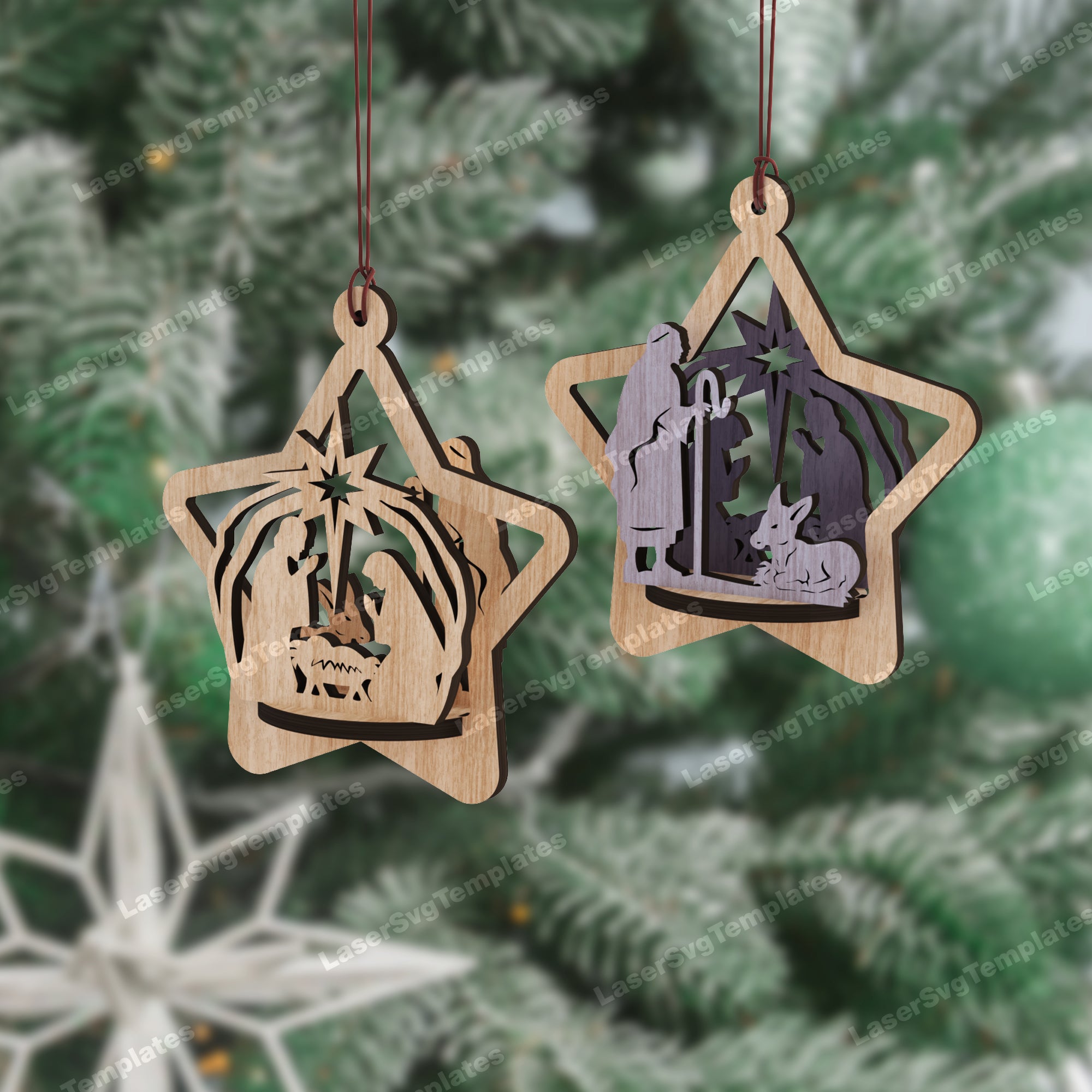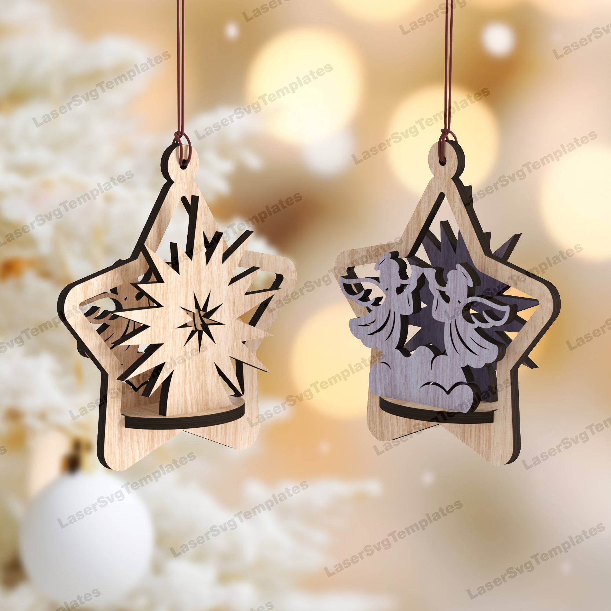 - Nativité Star Ornaments Bundle Laser Cut SVG Fichier