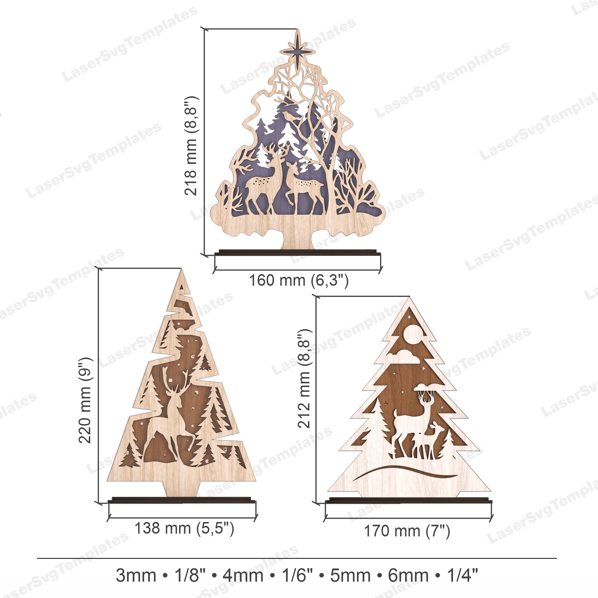 - Ces fichiers sont créés pour 3 mm, 1/8 ", 4 mm, 1/6", 5 mm, 6 mm et 1/4 "
