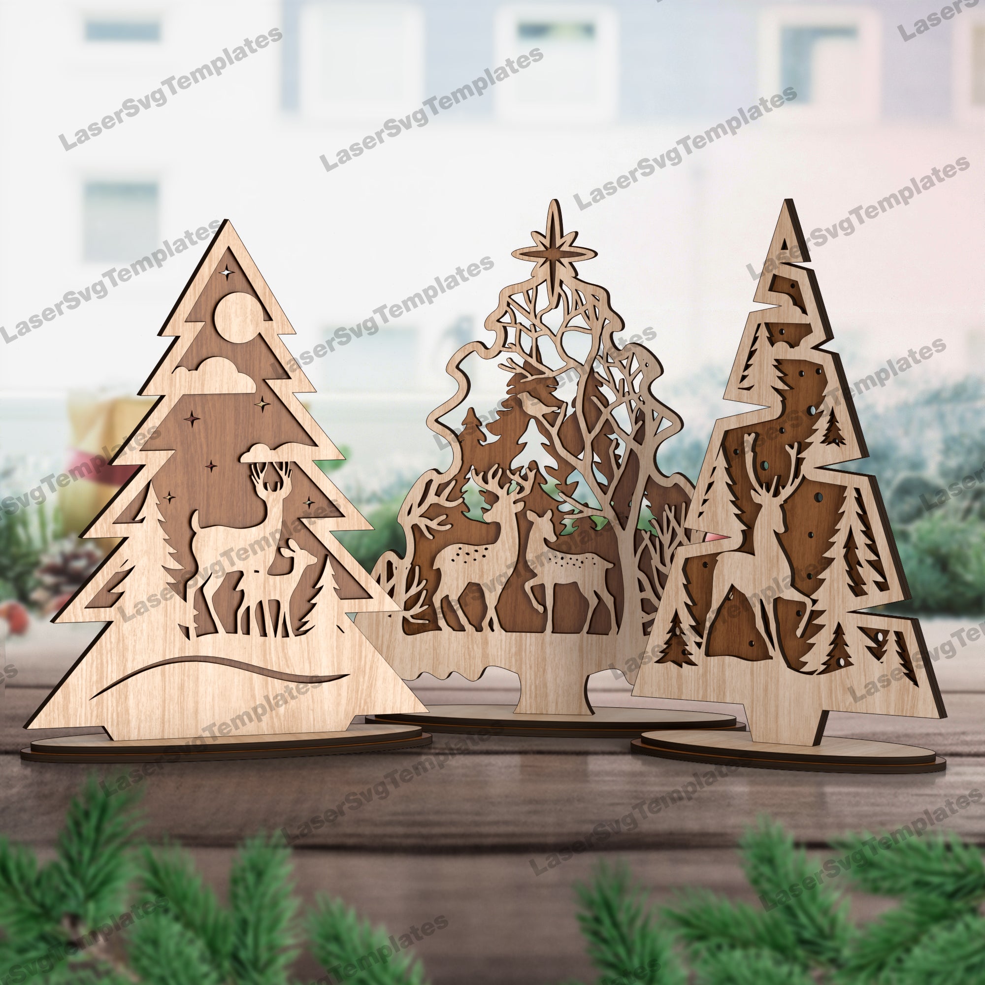 - Le fichier comprend 4 motifs de décoration d'arbres différents