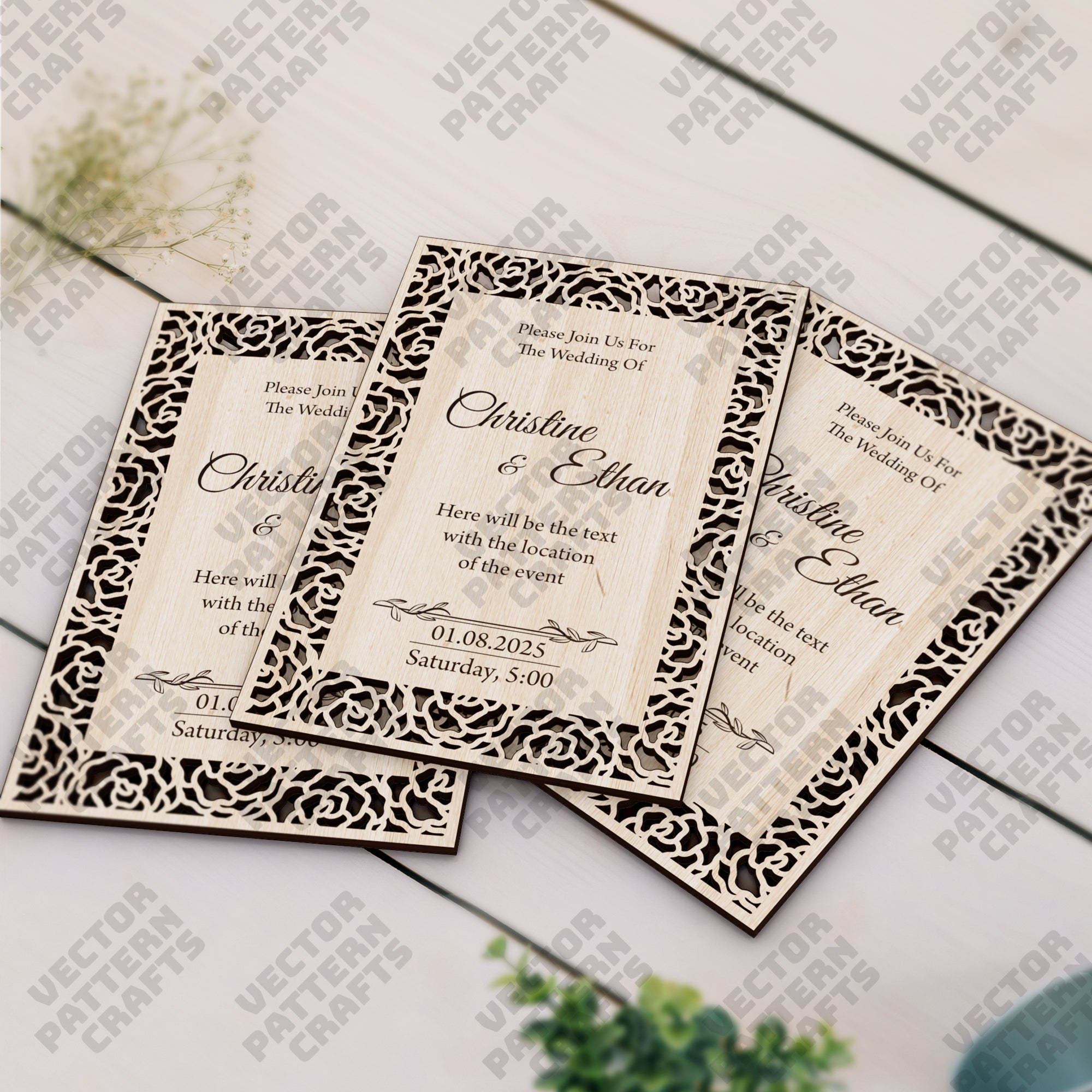 Numéros de table de mariage en bois 5 bundle fichier svg découpé au laser